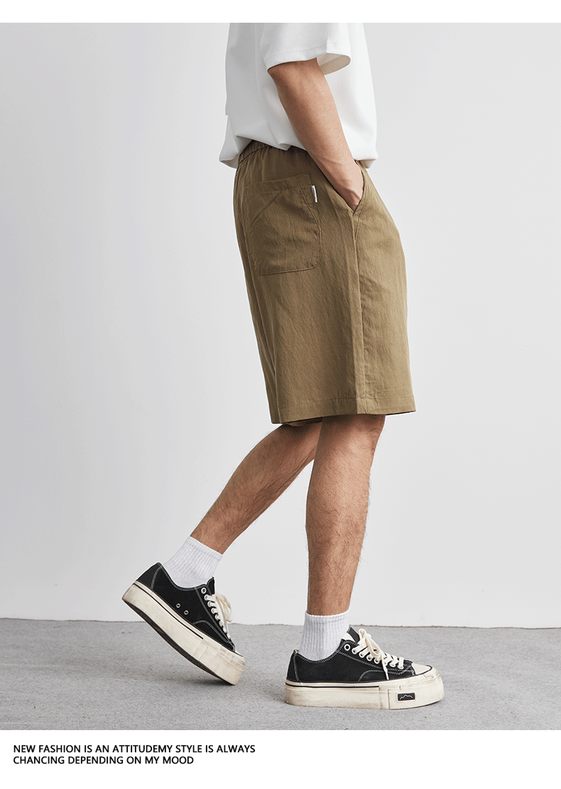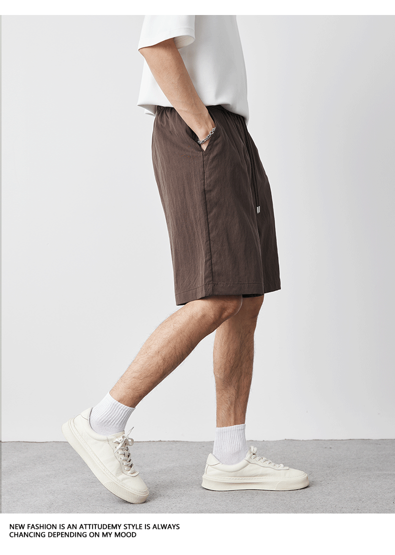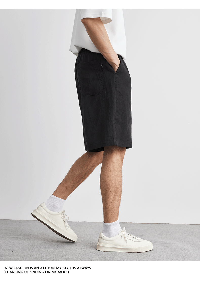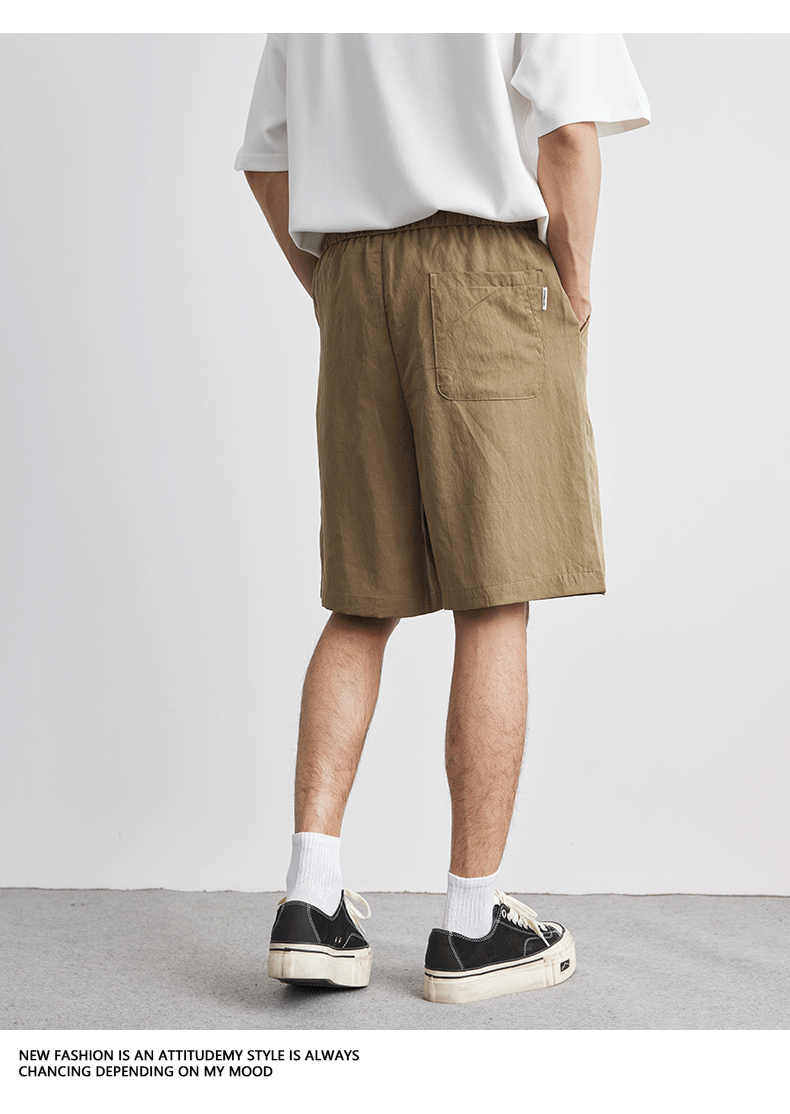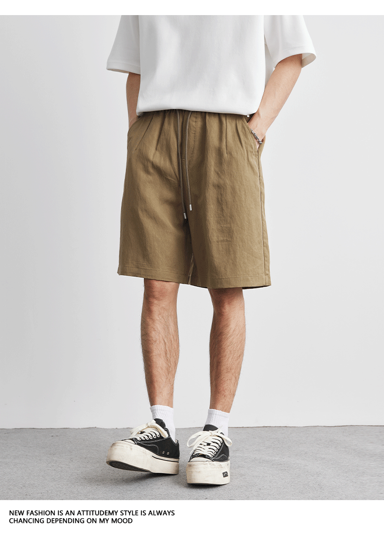 아메리칸 스타일 레트로 라이트 쿨 텐셀 반바지 남성 여름 얇은 느슨한 단색 와이드 레그 아이스 실크 비치 바지