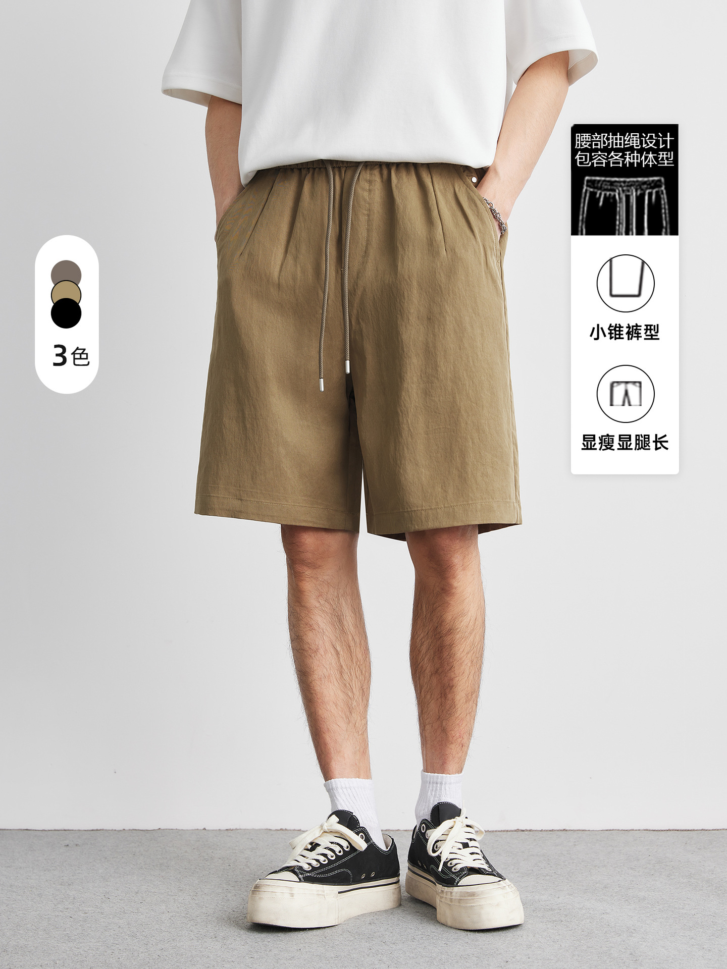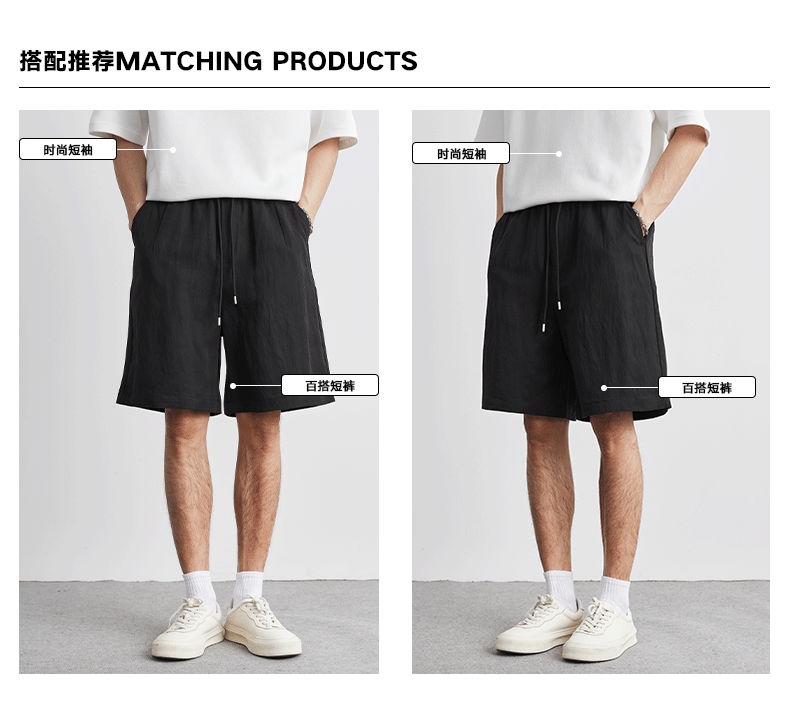 아메리칸 스타일 레트로 라이트 쿨 텐셀 반바지 남성 여름 얇은 느슨한 단색 와이드 레그 아이스 실크 비치 바지스토어 가기
