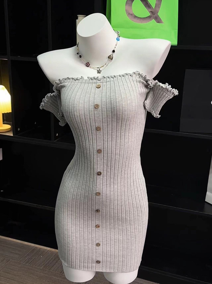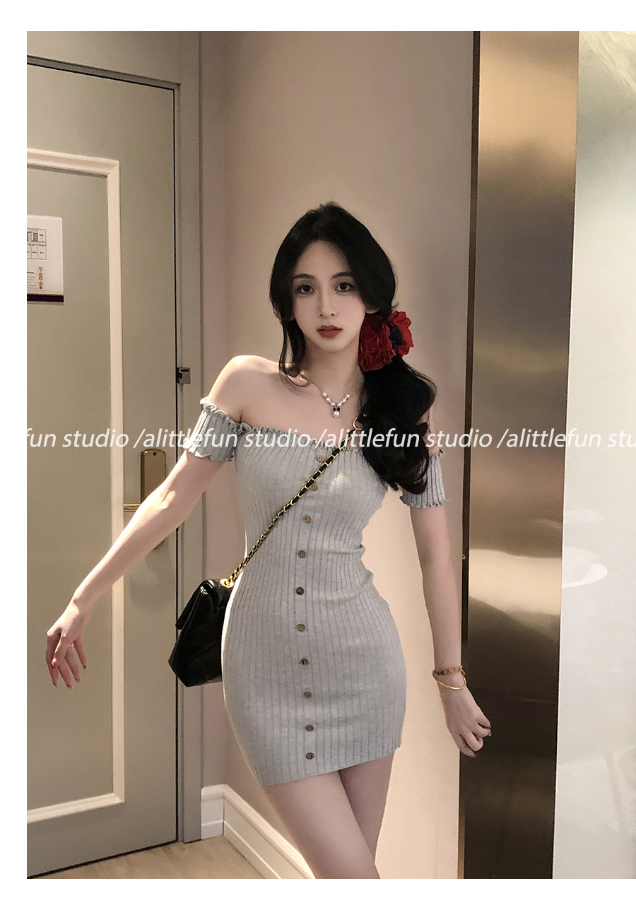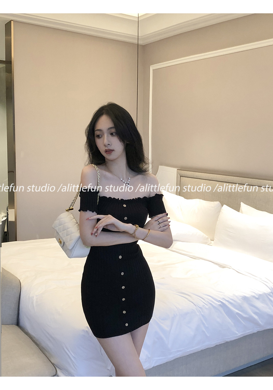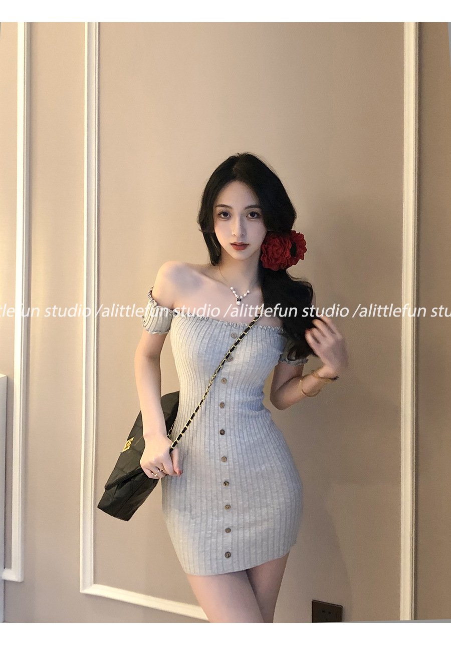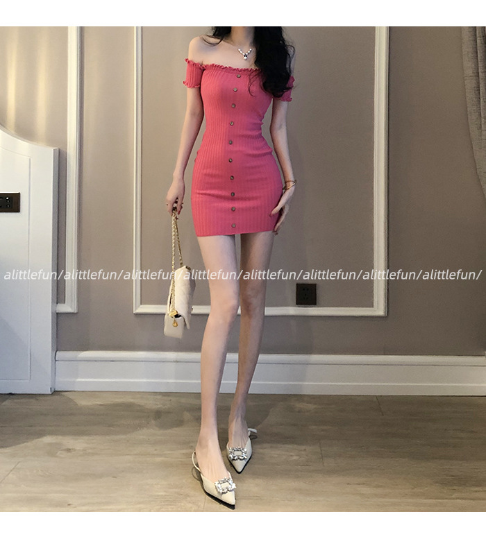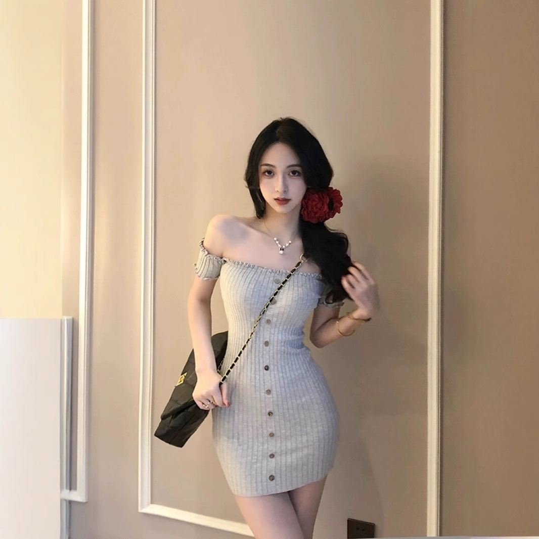 한국 스타일의 분위기 원피스 작은 여름 원피스 착용 여성 새로운 니트 반팔 웨이스트 라인 슬림 핏 힙합 스커트스토어 가기