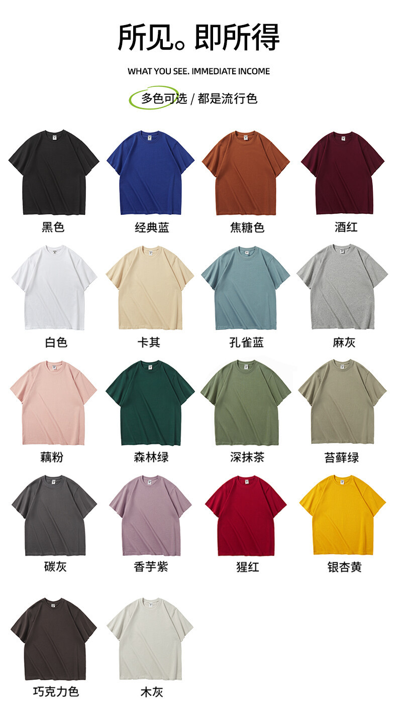300g 헤비 티셔츠 남녀 쇼트 슬리브 코튼 탑 티셔츠 크루 넥 루즈 솔리드 컬러 남성 T-베이스 셔츠 1/2스토어 가기