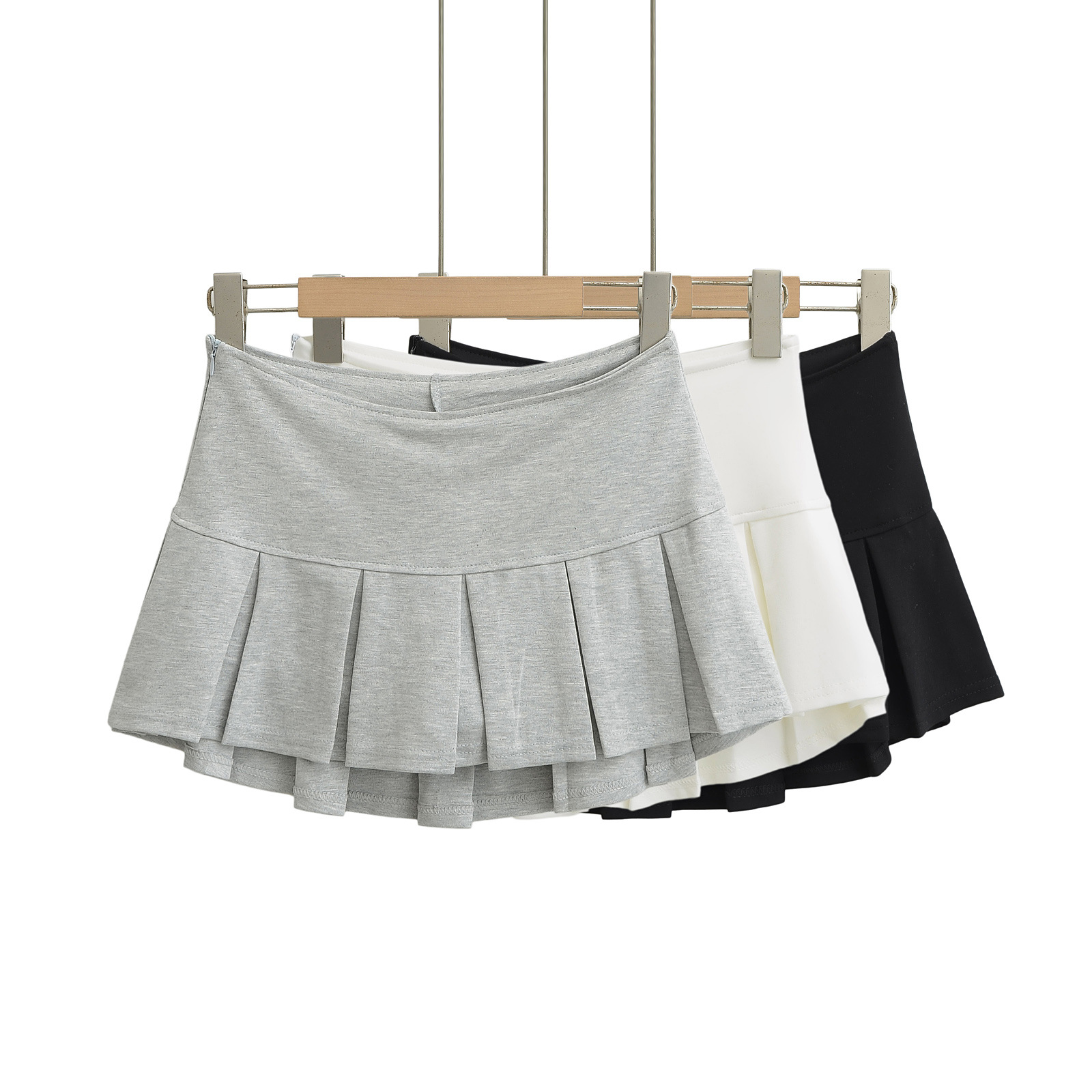 여름 여성용 그레이 플리츠 스커트 2025 새로운 하이 웨이스트 슬림 스커트 a 라인 스포츠 짧은 스커트