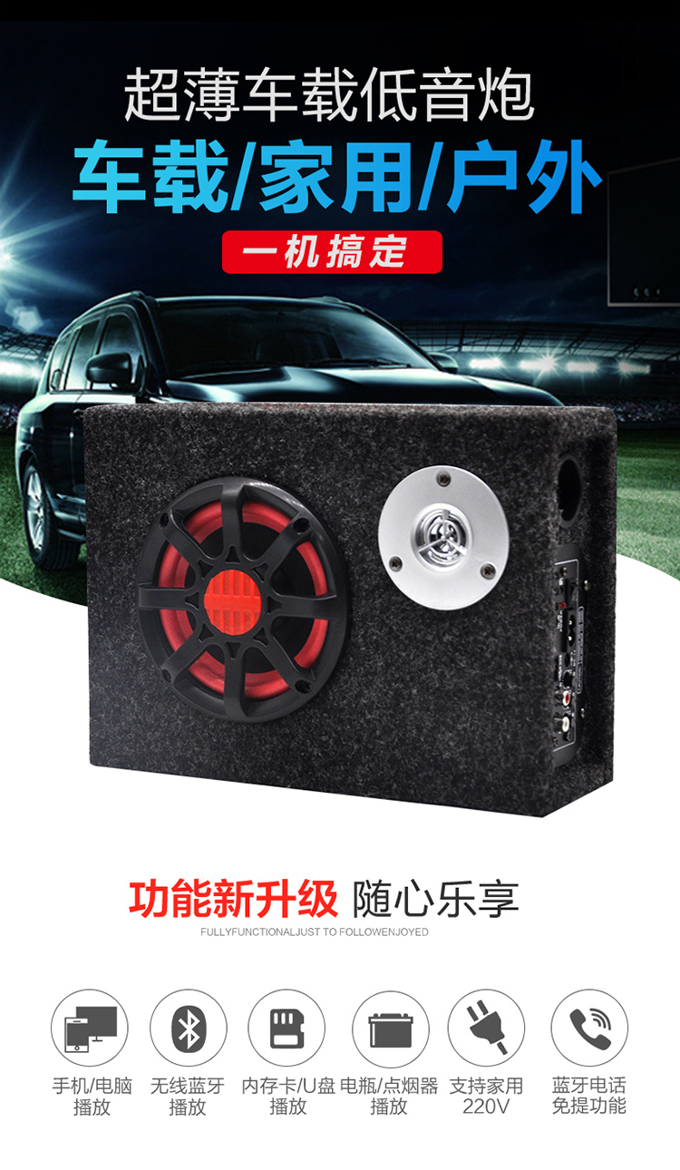 무료 배송 휴대 전화 무선 블루투스 자동차 서브 우퍼 12V 오토바이 자동차 오디오 수정 24V 트럭 홈 소형스토어 가기