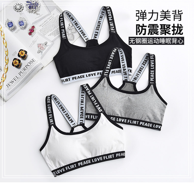 심리스 아름다운 등, 가슴 감싸는 튜브탑, 영문자 여성용 스포츠 브라, 푸쉬업, 충격 방지, 처짐 방지, 와이어 프리 브라