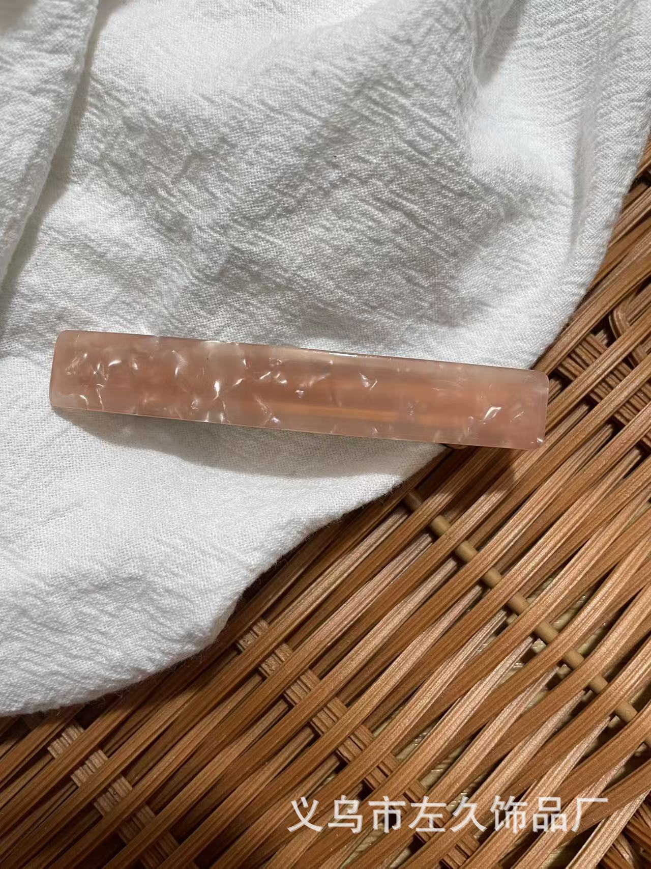 • 일자 스프링 클립 가죽 핑크 (약 7.5cm)