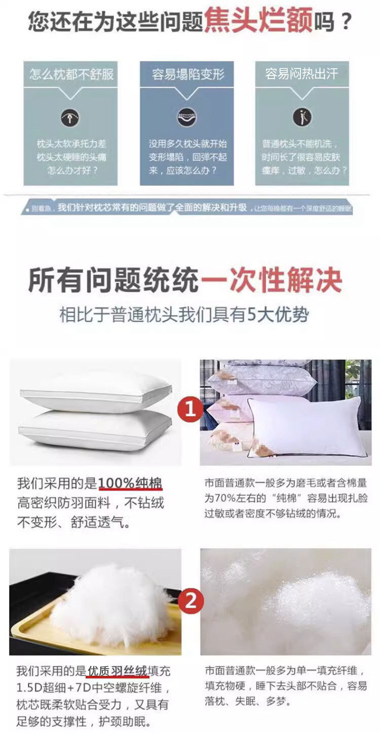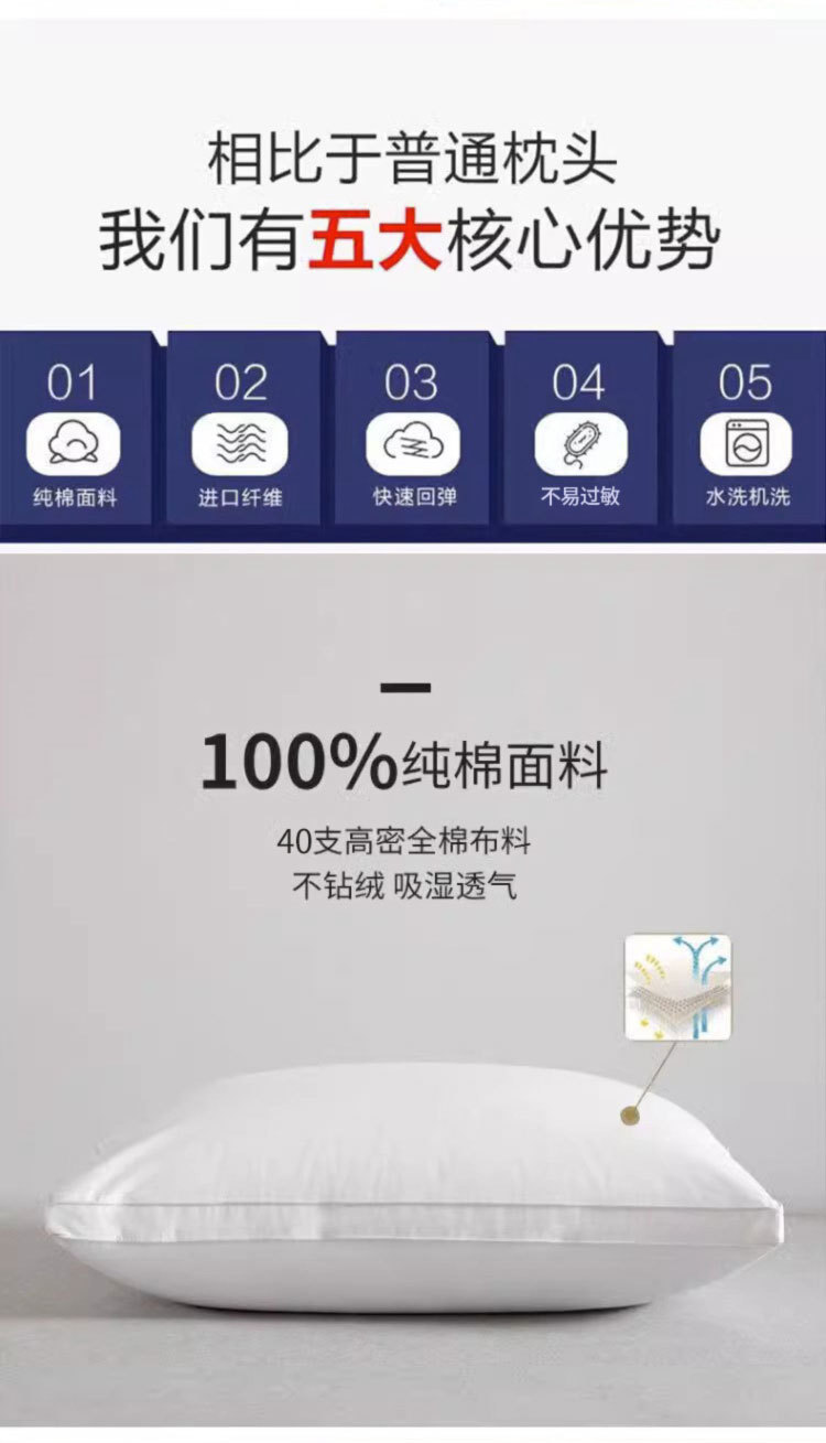 면 100%의 매우 부드러운 베개 코어, 한 쌍, 경추 보호, 수면 보조, 남학생 기숙사, 낮은 수면 특수스토어 가기