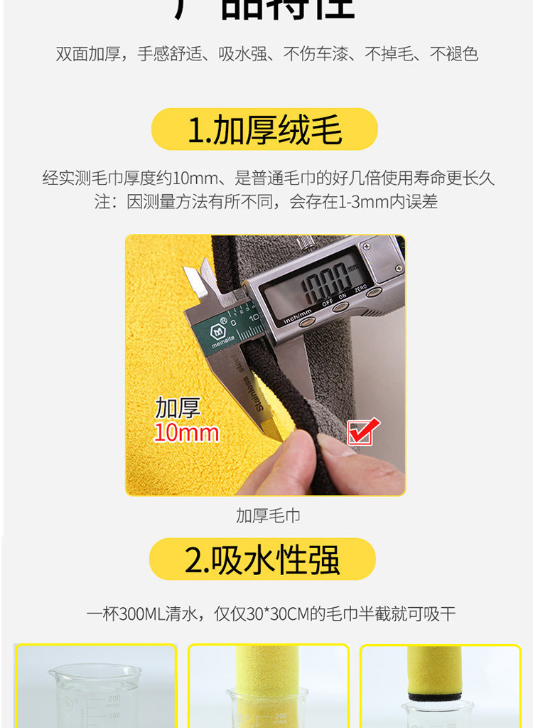 자동차 닦는 수건은 물을 흡수하고 보푸라기를 흘리지 않으며 청소 가사 청소 걸레 양면 산호 벨벳 세차 작은 수건 도매