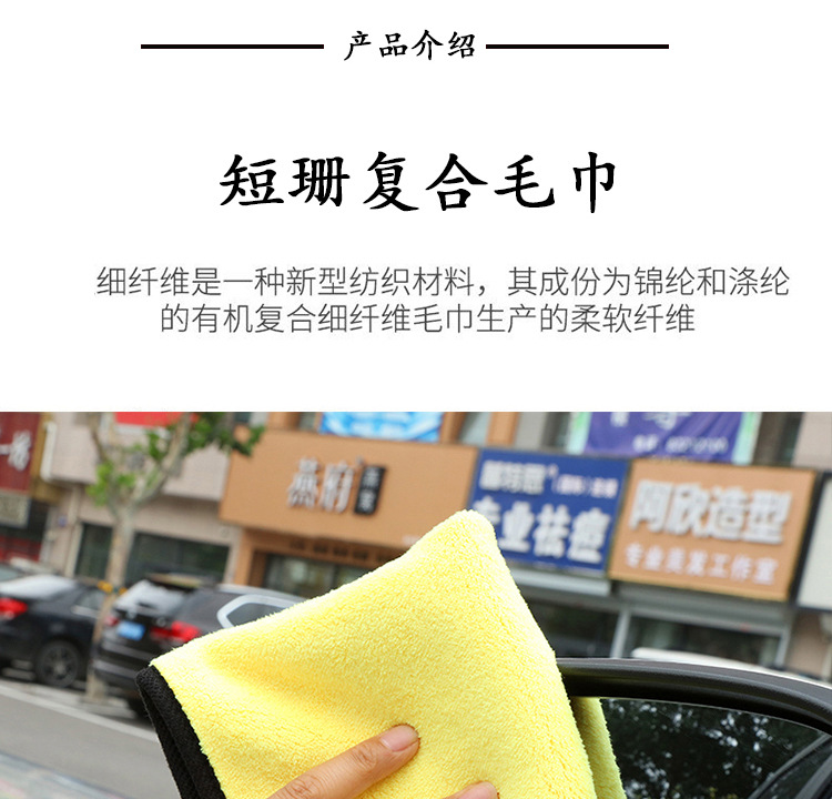 자동차 닦는 수건은 물을 흡수하고 보푸라기를 흘리지 않으며 청소 가사 청소 걸레 양면 산호 벨벳 세차 작은 수건 도매스토어 가기