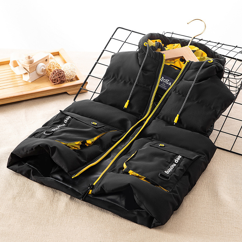남아용 두꺼운 다운 재킷, 아동용 작업복, 입체 가방, 면 재킷, 중대형 아동용 한국식 남녀 아기 조끼 재킷