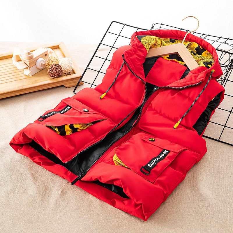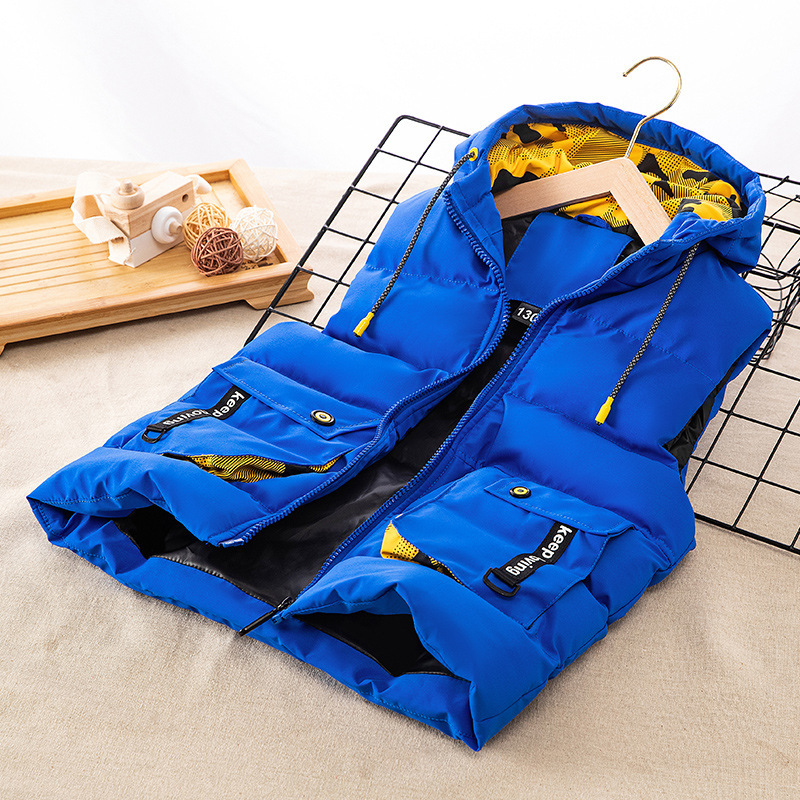 남아용 두꺼운 다운 재킷, 아동용 작업복, 입체 가방, 면 재킷, 중대형 아동용 한국식 남녀 아기 조끼 재킷스토어 가기
