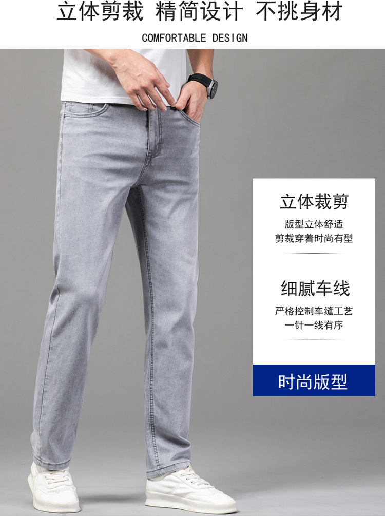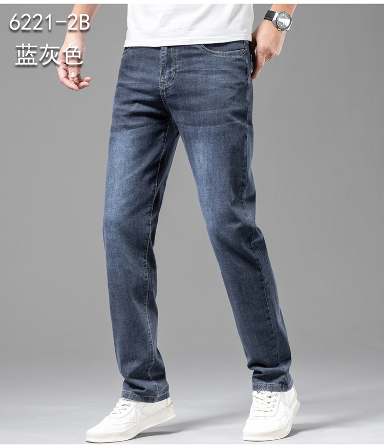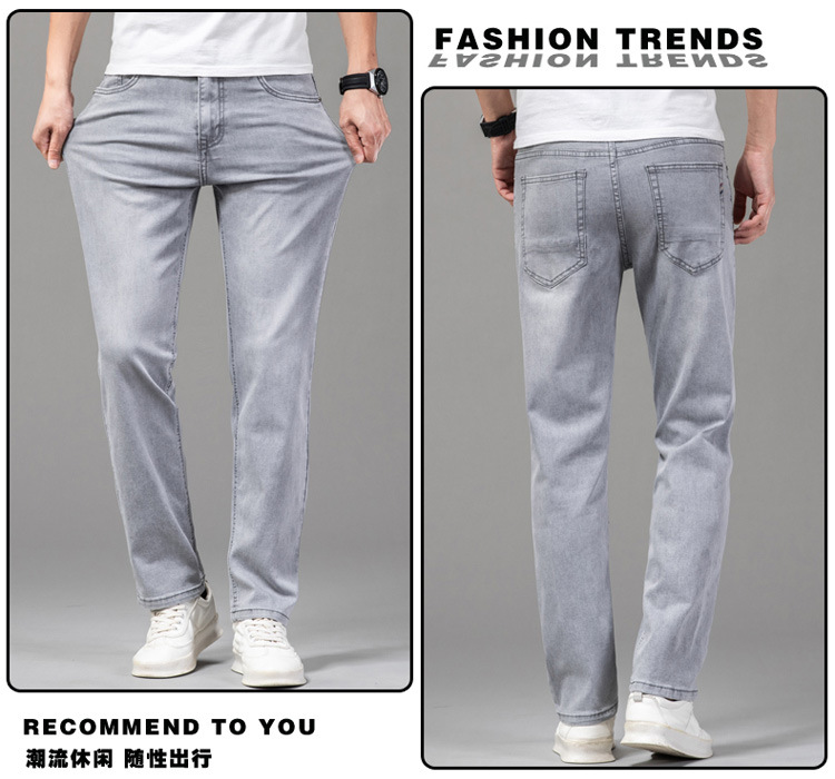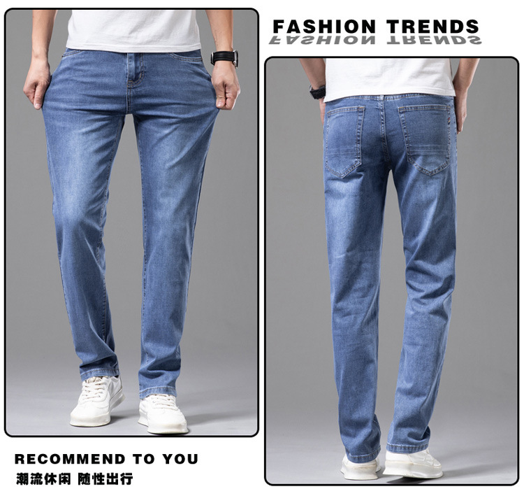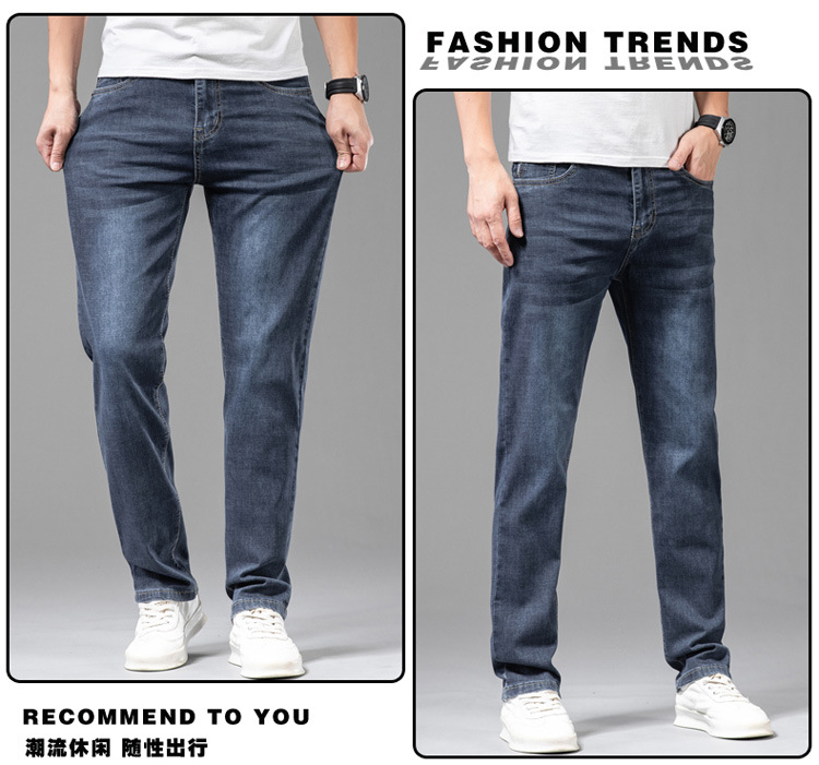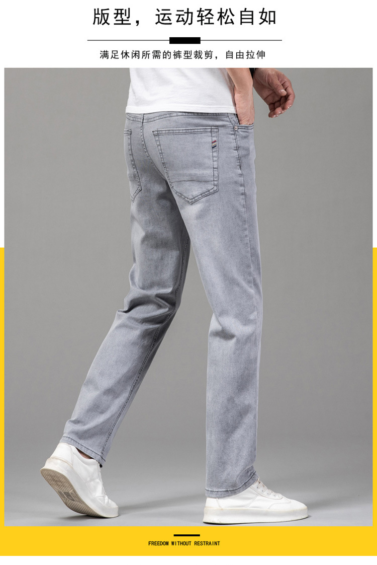 남성용 여름 얇은 청바지, 스트레이트 루즈, 봄, 가을 신축성 있는 캐주얼 긴 바지(드롭 배송 지원)스토어 가기