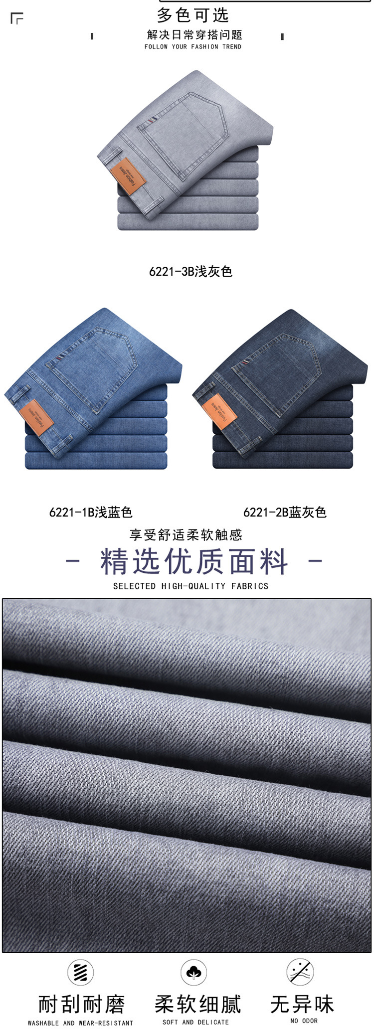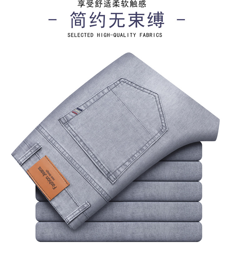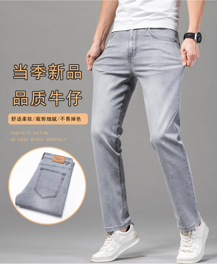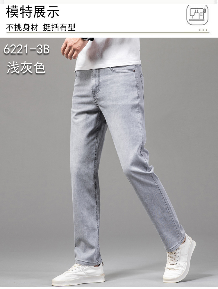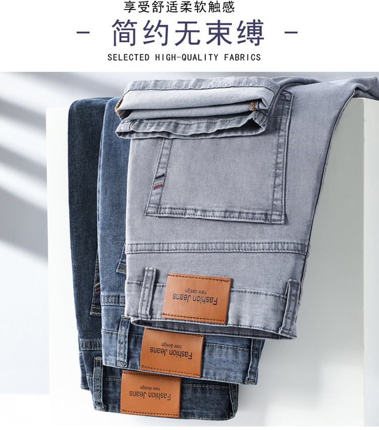 남성용 여름 얇은 청바지, 스트레이트 루즈, 봄, 가을 신축성 있는 캐주얼 긴 바지(드롭 배송 지원)스토어 가기