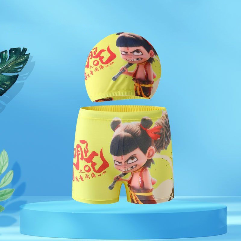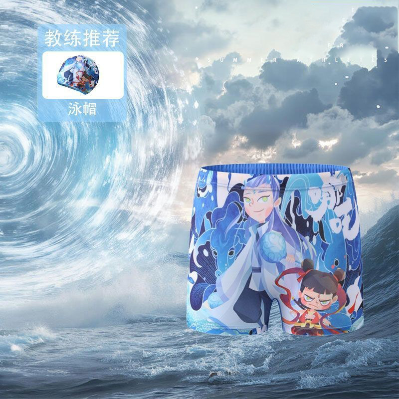 새로운 Nezha 어린이 수영 트렁크 소년 수영 트렁크 귀여운 만화 빠른 건조 수영장 반바지 여름 훈련 수영 트렁크