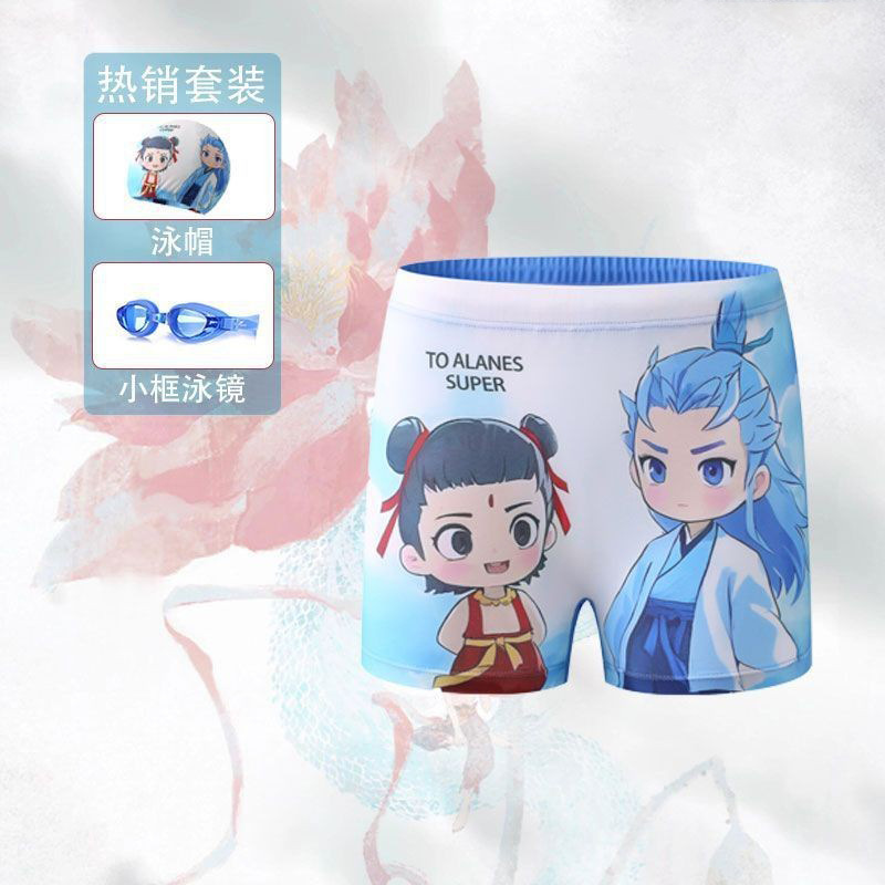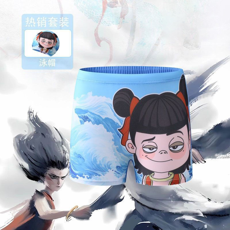새로운 Nezha 어린이 수영 트렁크 소년 수영 트렁크 귀여운 만화 빠른 건조 수영장 반바지 여름 훈련 수영 트렁크스토어 가기