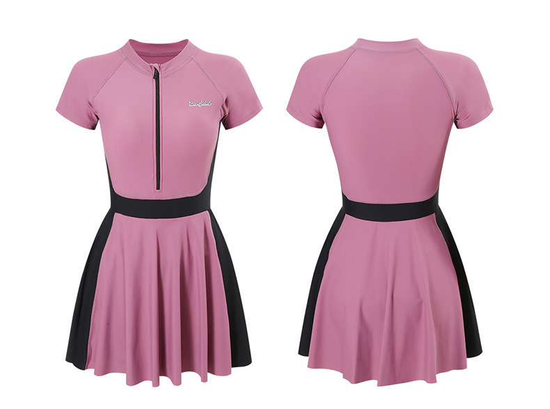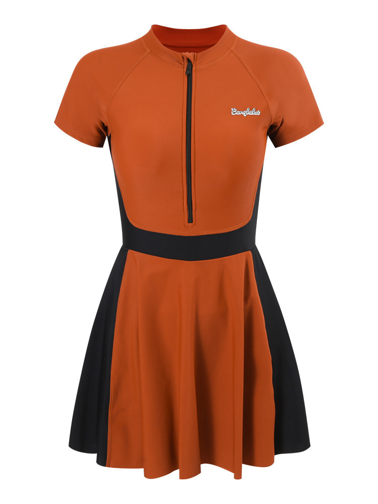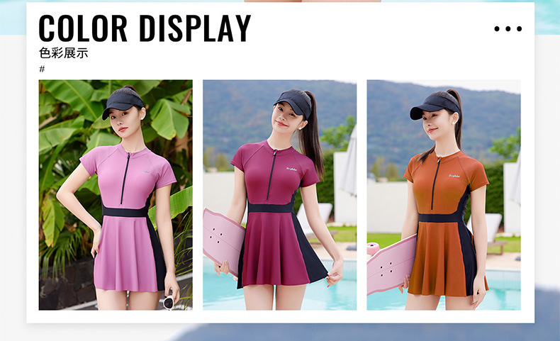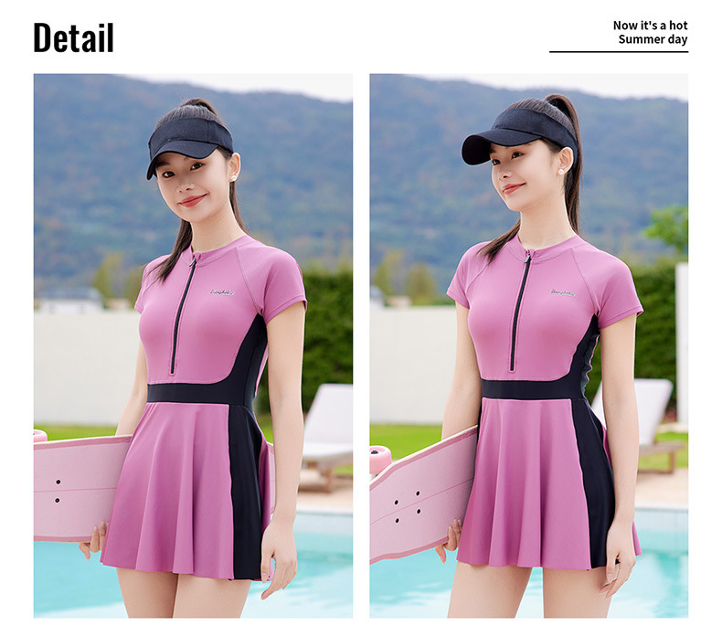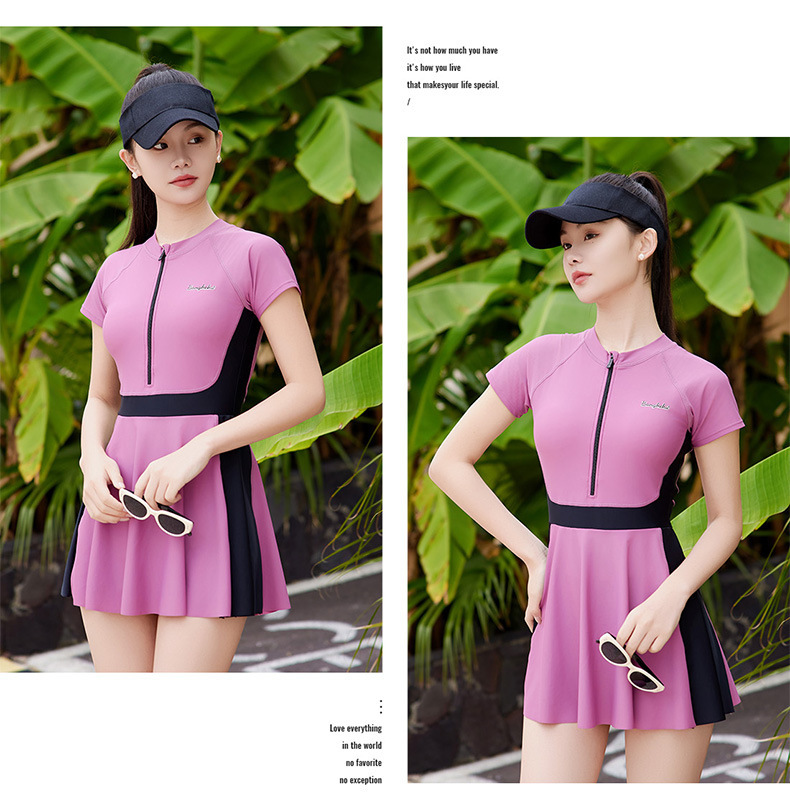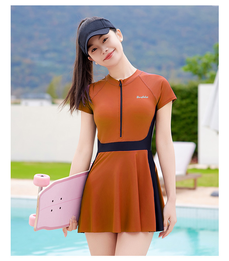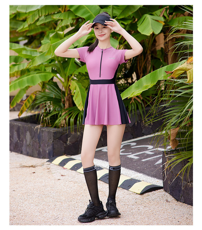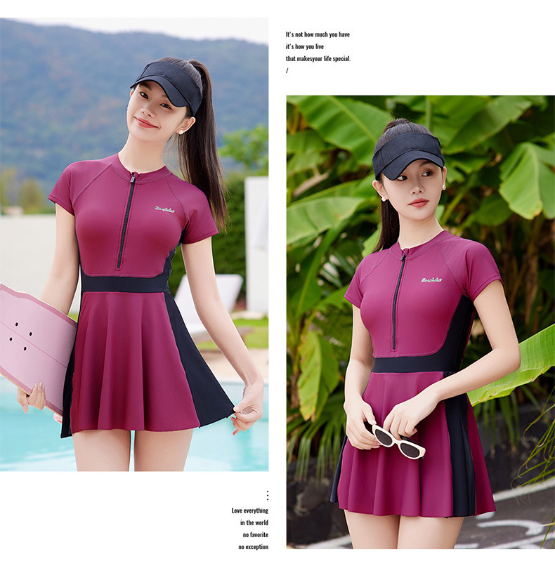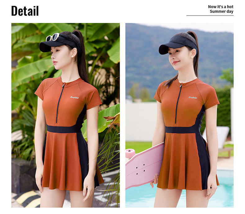 여성용 스포츠 대비색 수영복, 배를 커버하고 날씬해 보이는 여름 보수적인 수영복, 2025년 신형 해변 자외선 차단 원피스 수영복스토어 가기