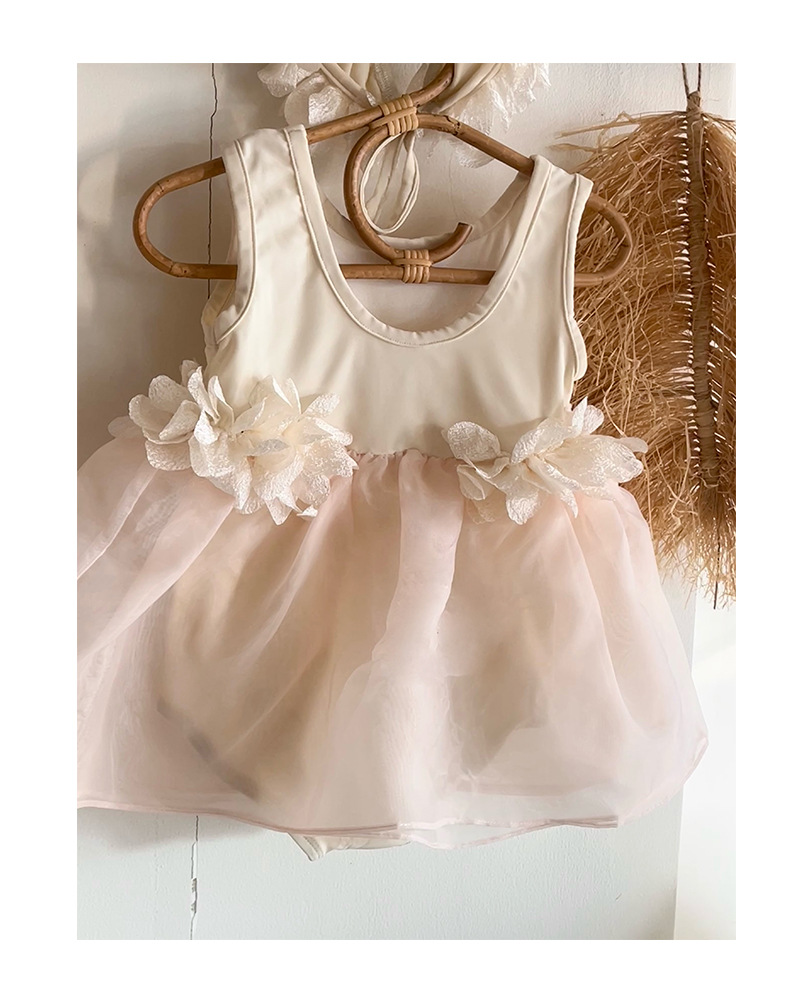 2025 새로운 스타일의 여자 아기 중국 스타일 흰색 레이스 원피스 수영복 여자 여름 휴가 스타일 수영복