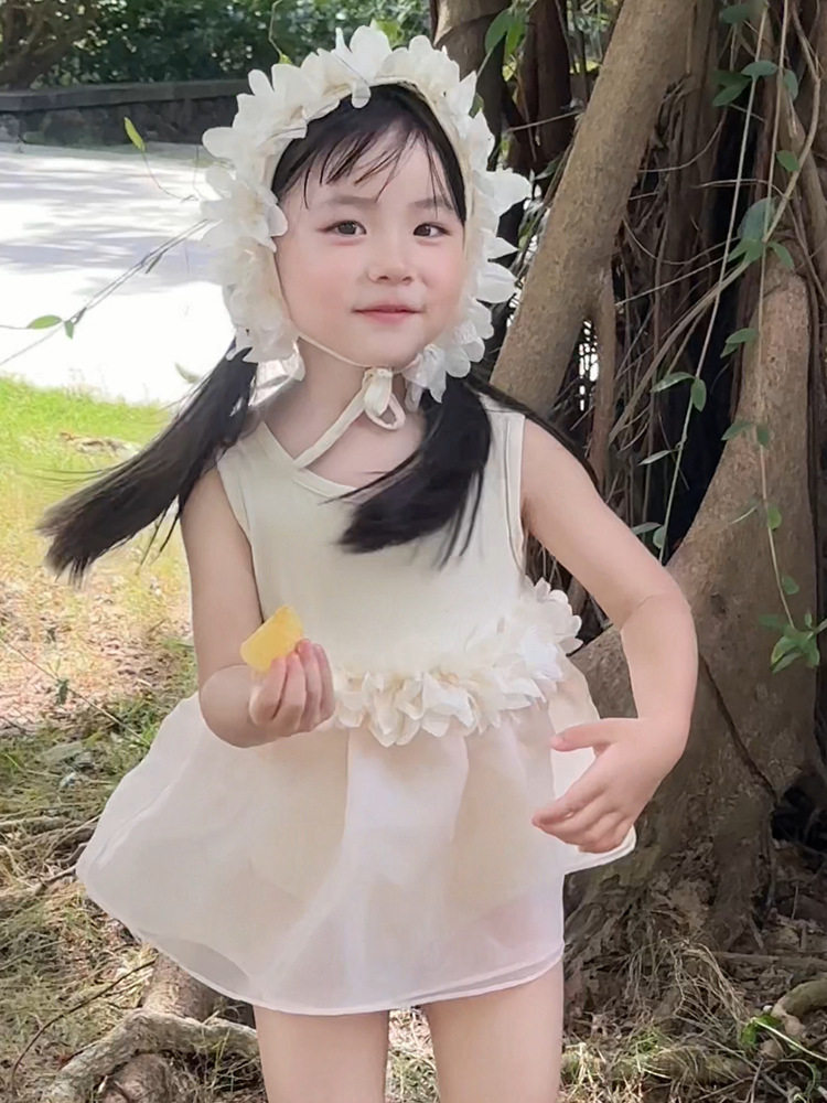 2025 새로운 스타일의 여자 아기 중국 스타일 흰색 레이스 원피스 수영복 여자 여름 휴가 스타일 수영복스토어 가기