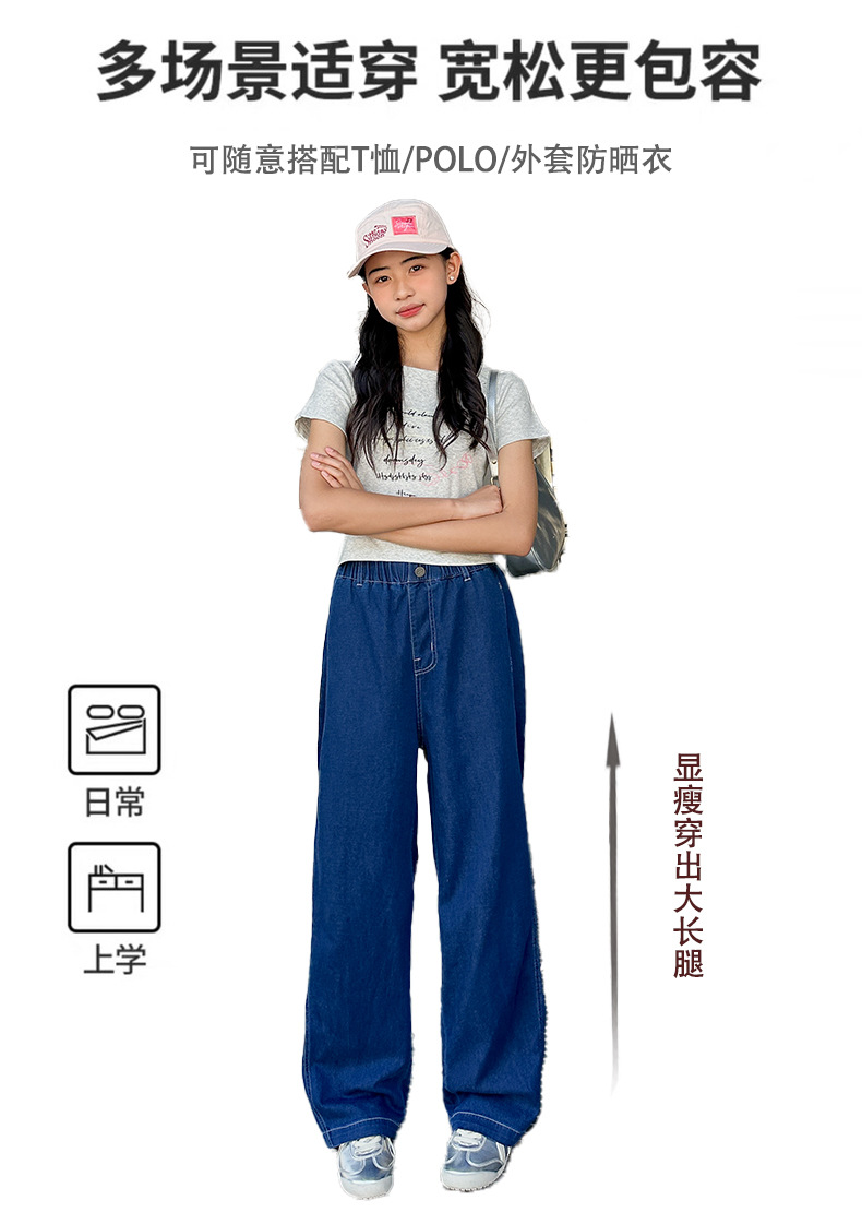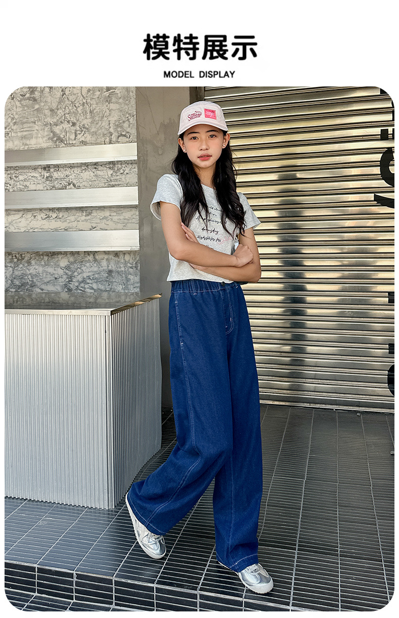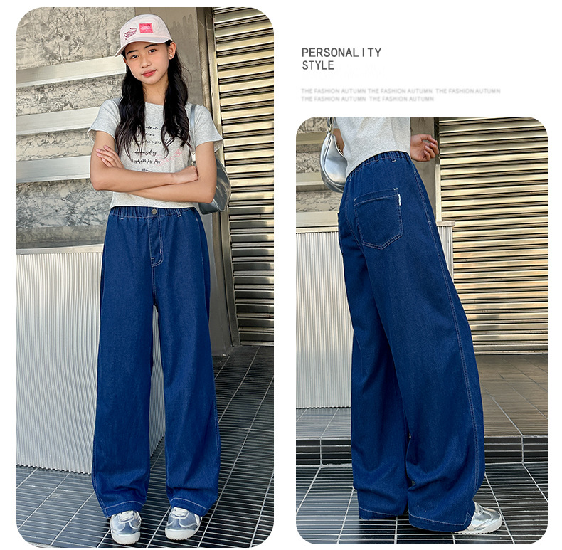 2025 년 여름 새 소녀 바지 한국 캐주얼 바지 소녀 청바지 학생 스트레이트 와이드 다리 트렌디 바지스토어 가기