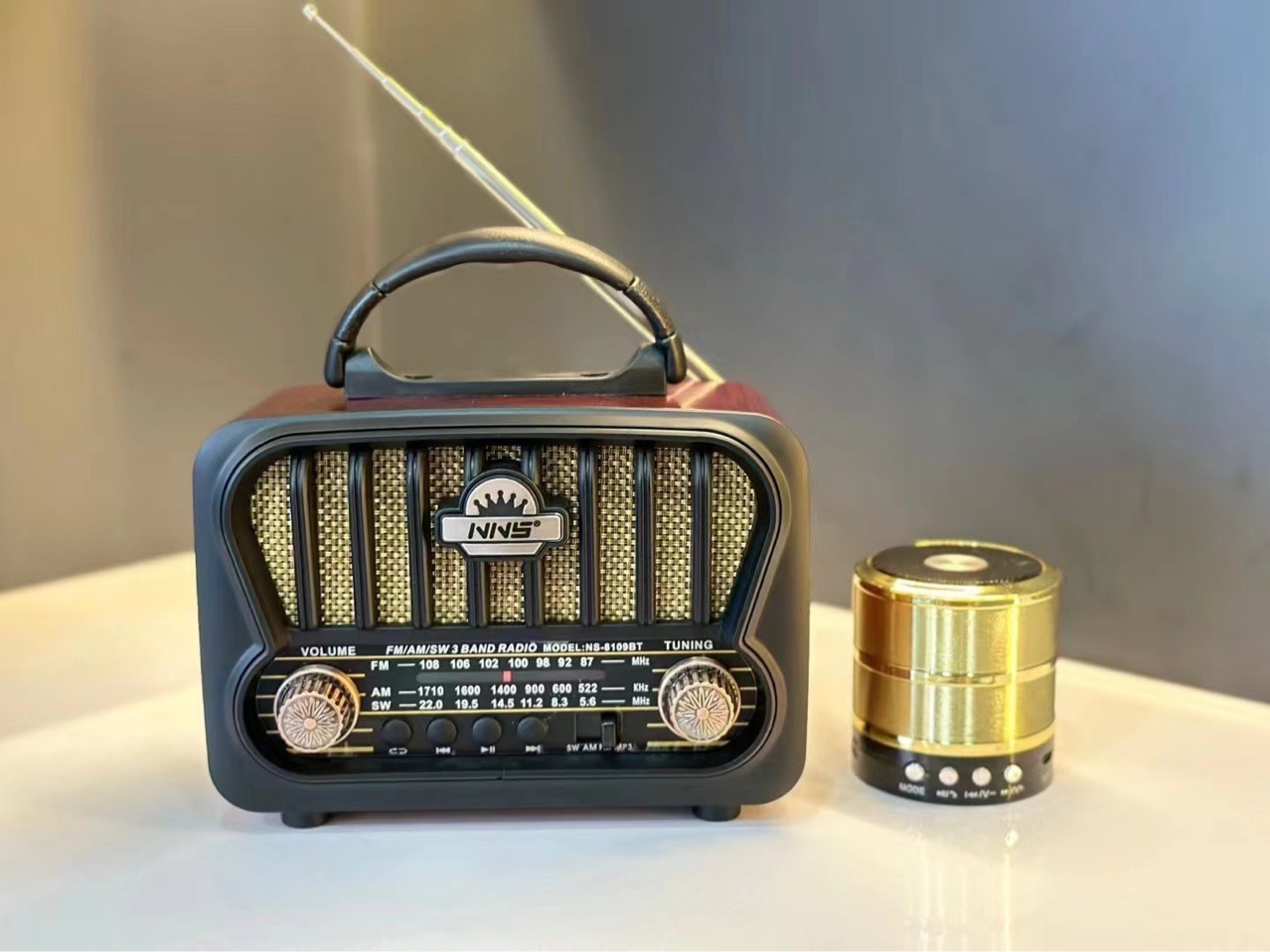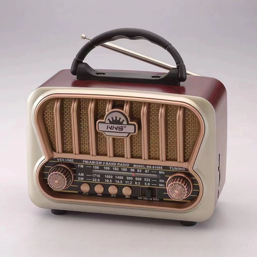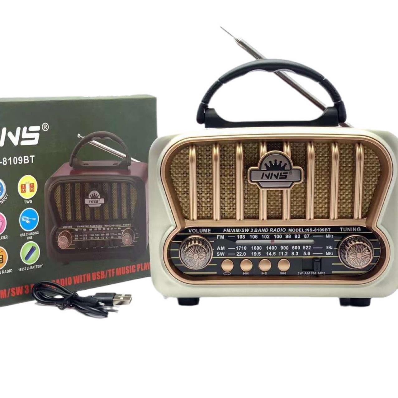 새로운 NS8109BT 무선 블루투스 스피커 휴대용 카드 오디오 나뭇결 복고풍 홈 라디오스토어 가기