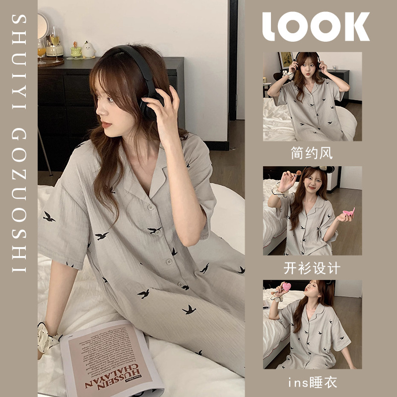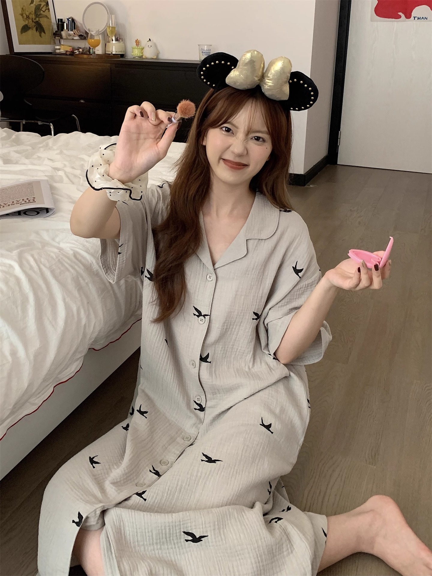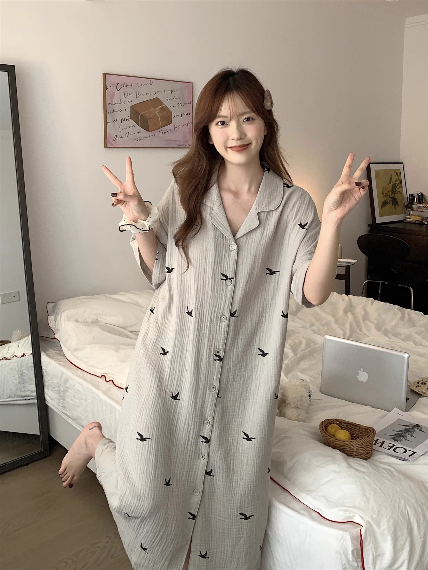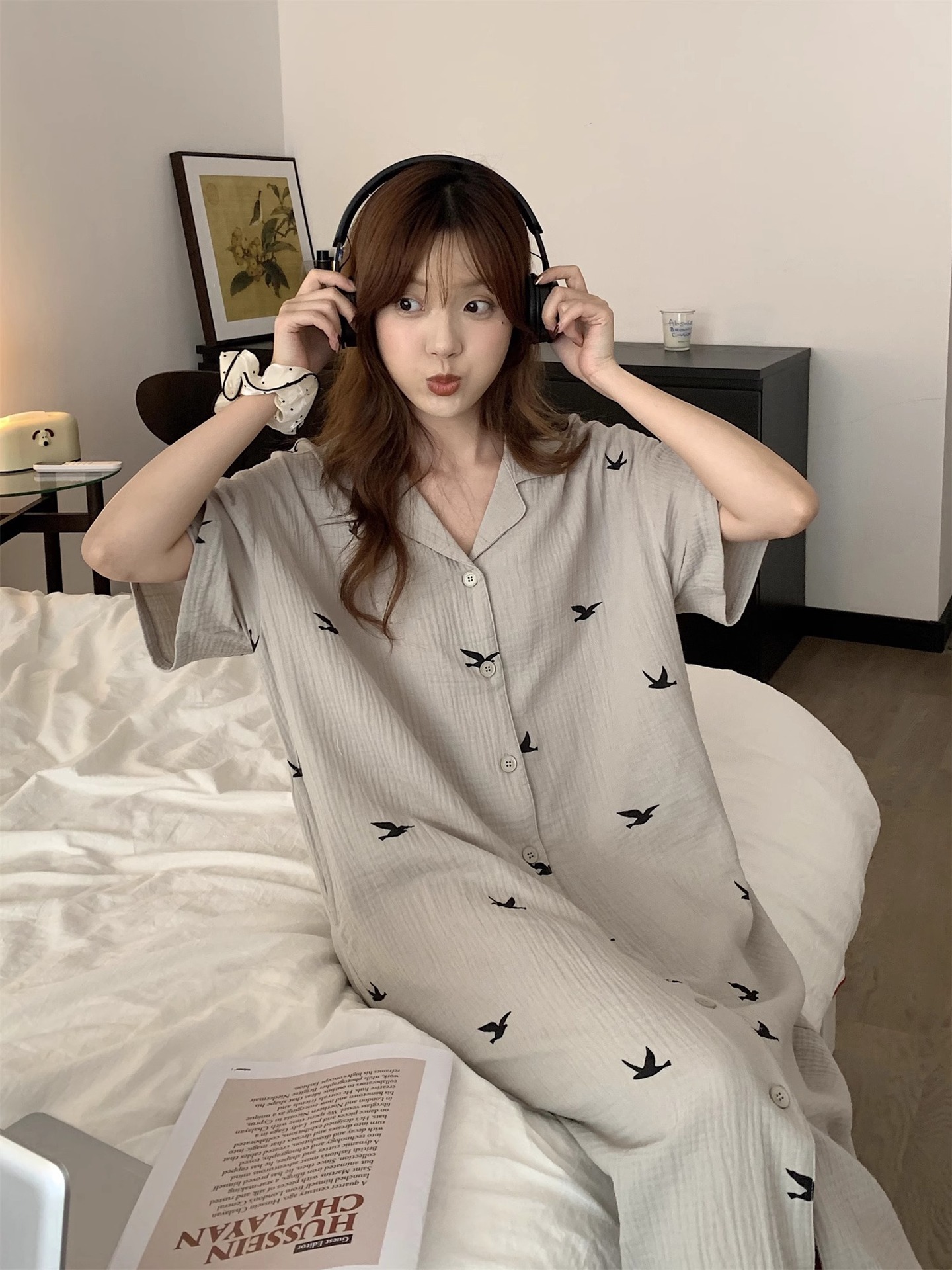 간단한 반팔 나이트가운 여성의 여름 2025 새로운 도착 셔츠 옷깃 디자인 파자마스토어 가기