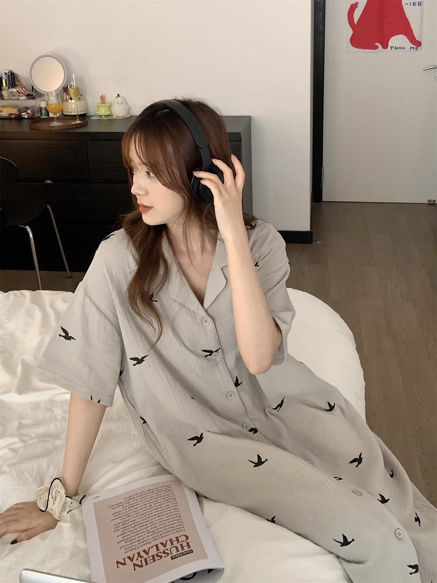 간단한 반팔 나이트가운 여성의 여름 2025 새로운 도착 셔츠 옷깃 디자인 파자마