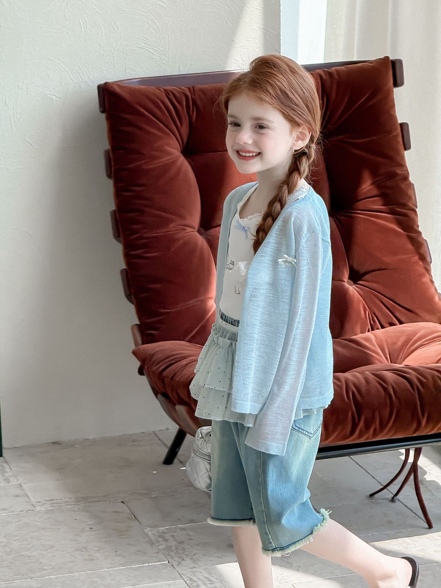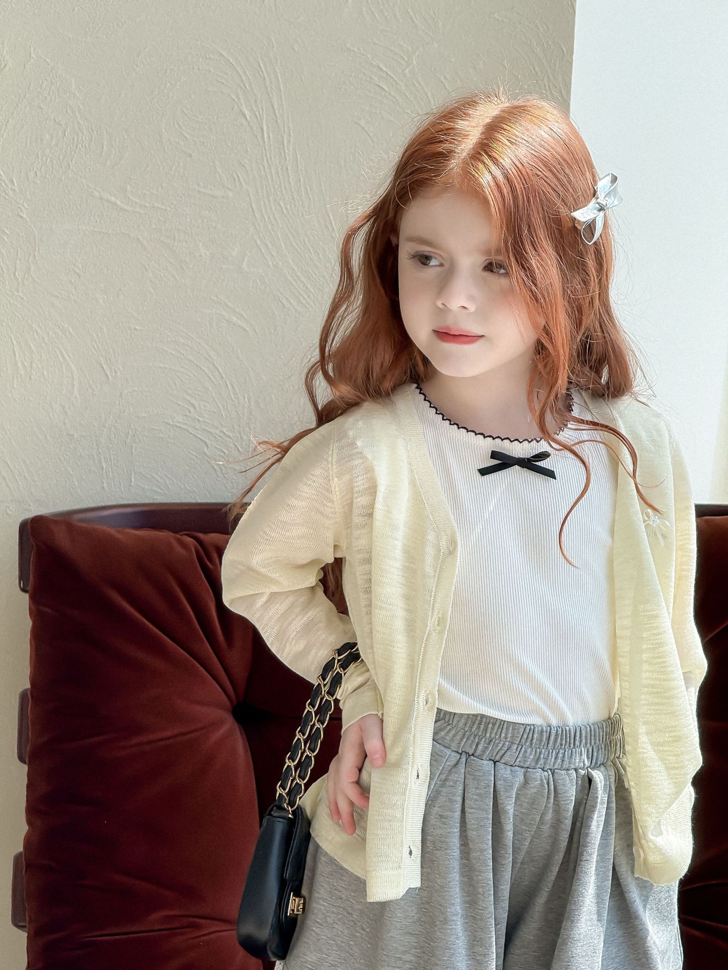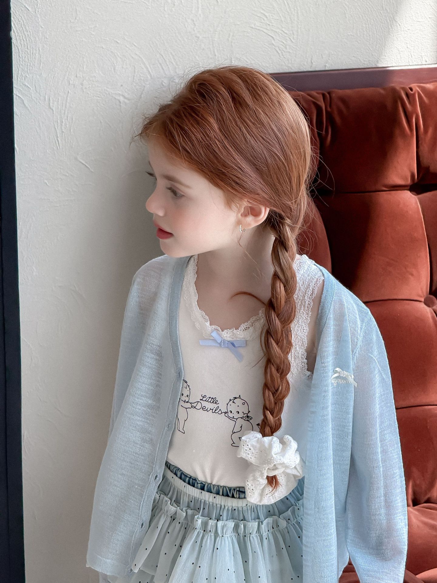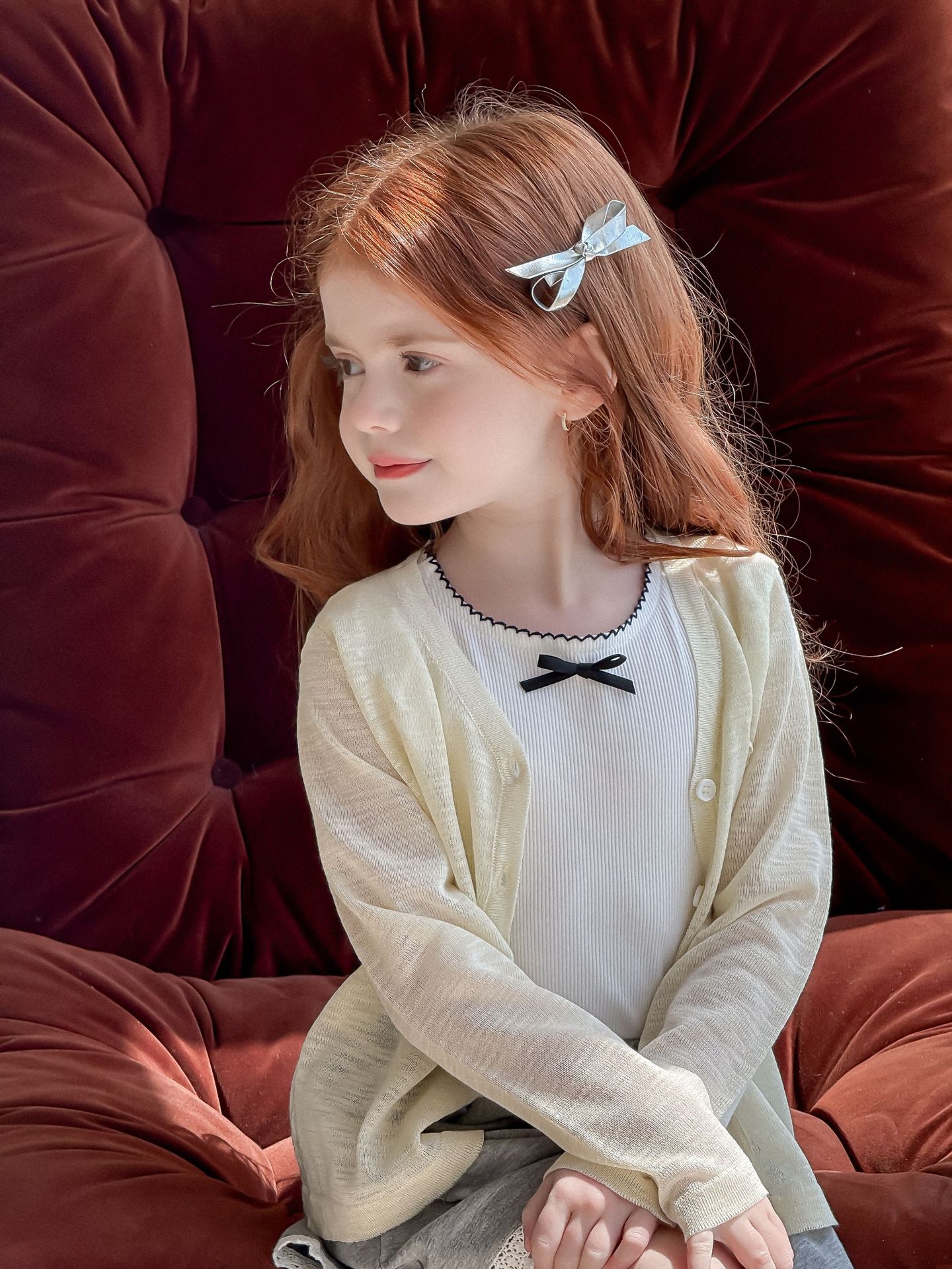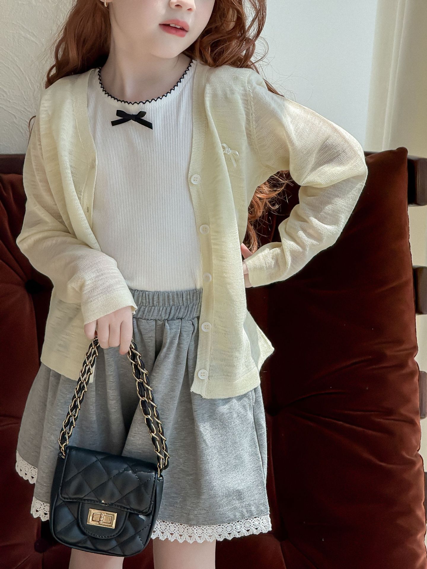 소녀 카디건 2025 여름 새로운 올매치 3 차원 활 자수 슬럽 니트웨어 어린이 선스크린 카디건스토어 가기