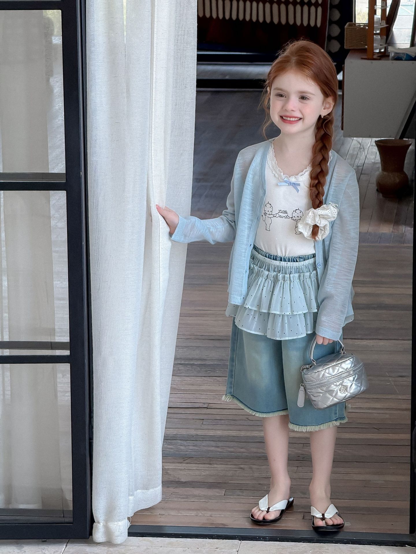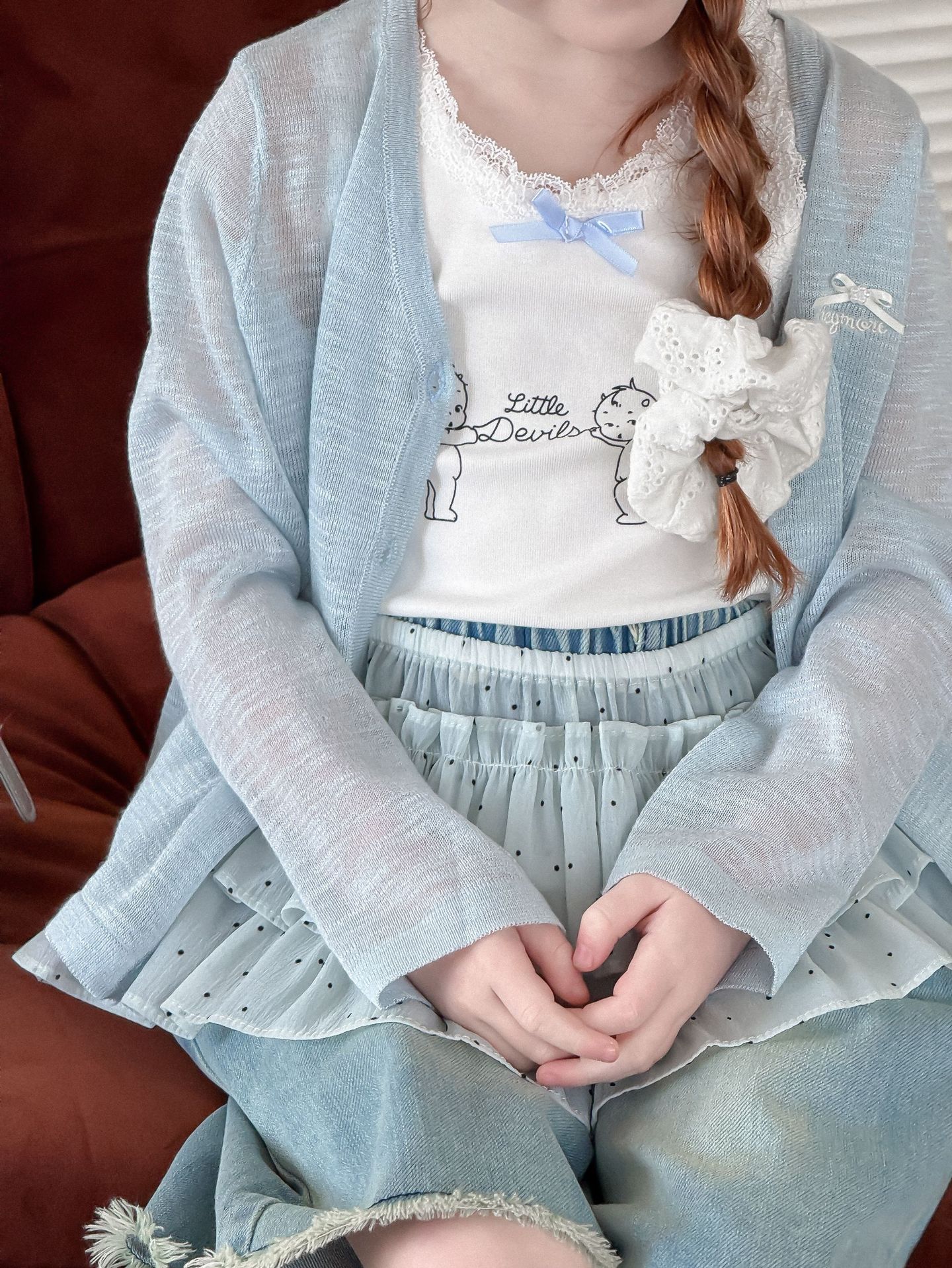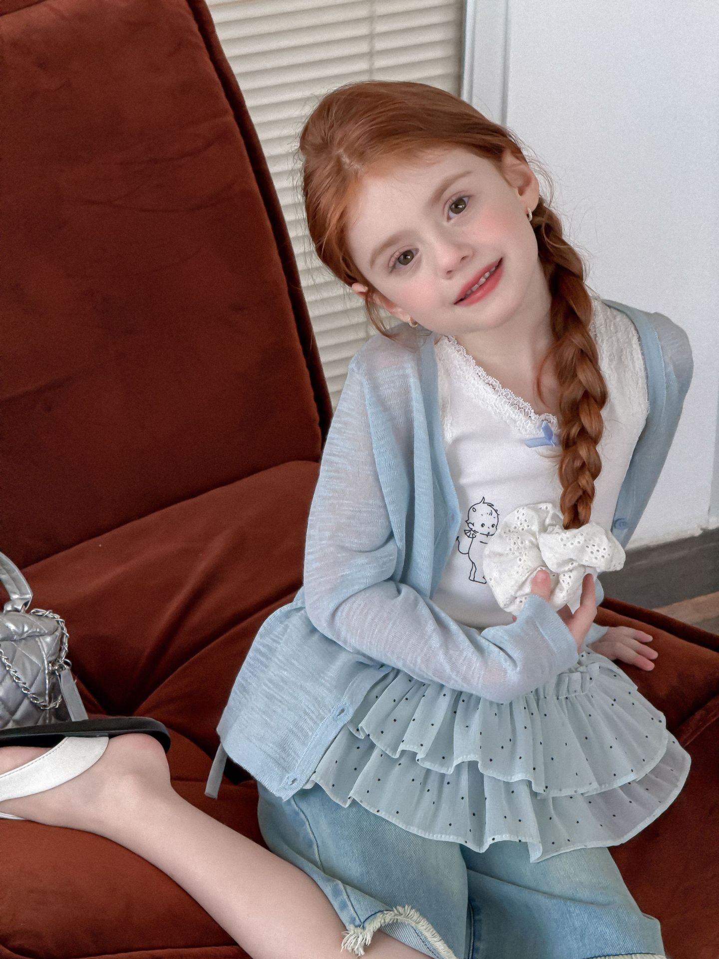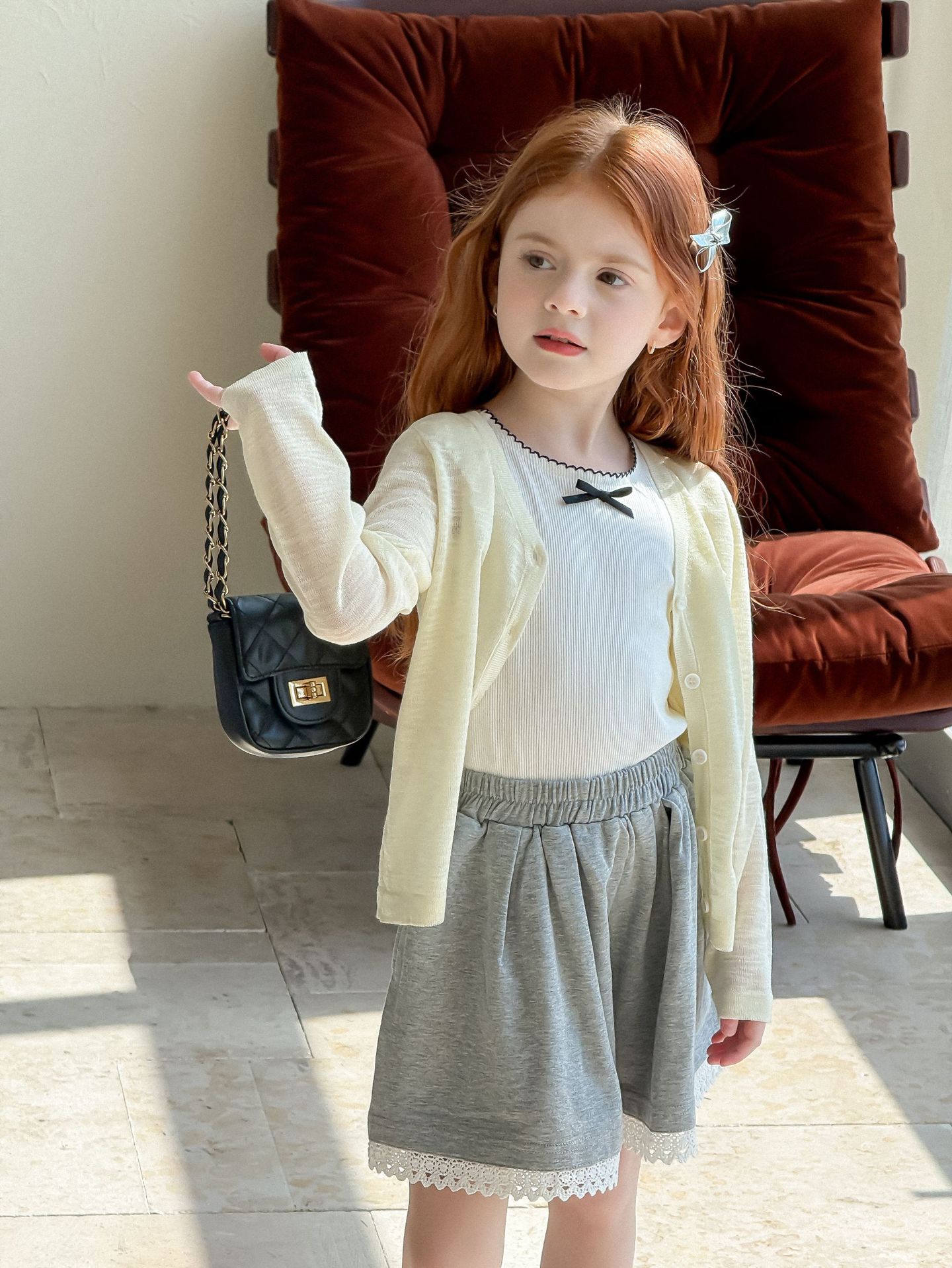 소녀 카디건 2025 여름 새로운 올매치 3 차원 활 자수 슬럽 니트웨어 어린이 선스크린 카디건스토어 가기