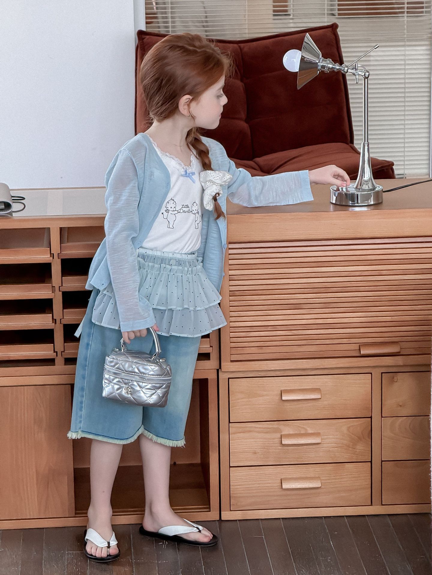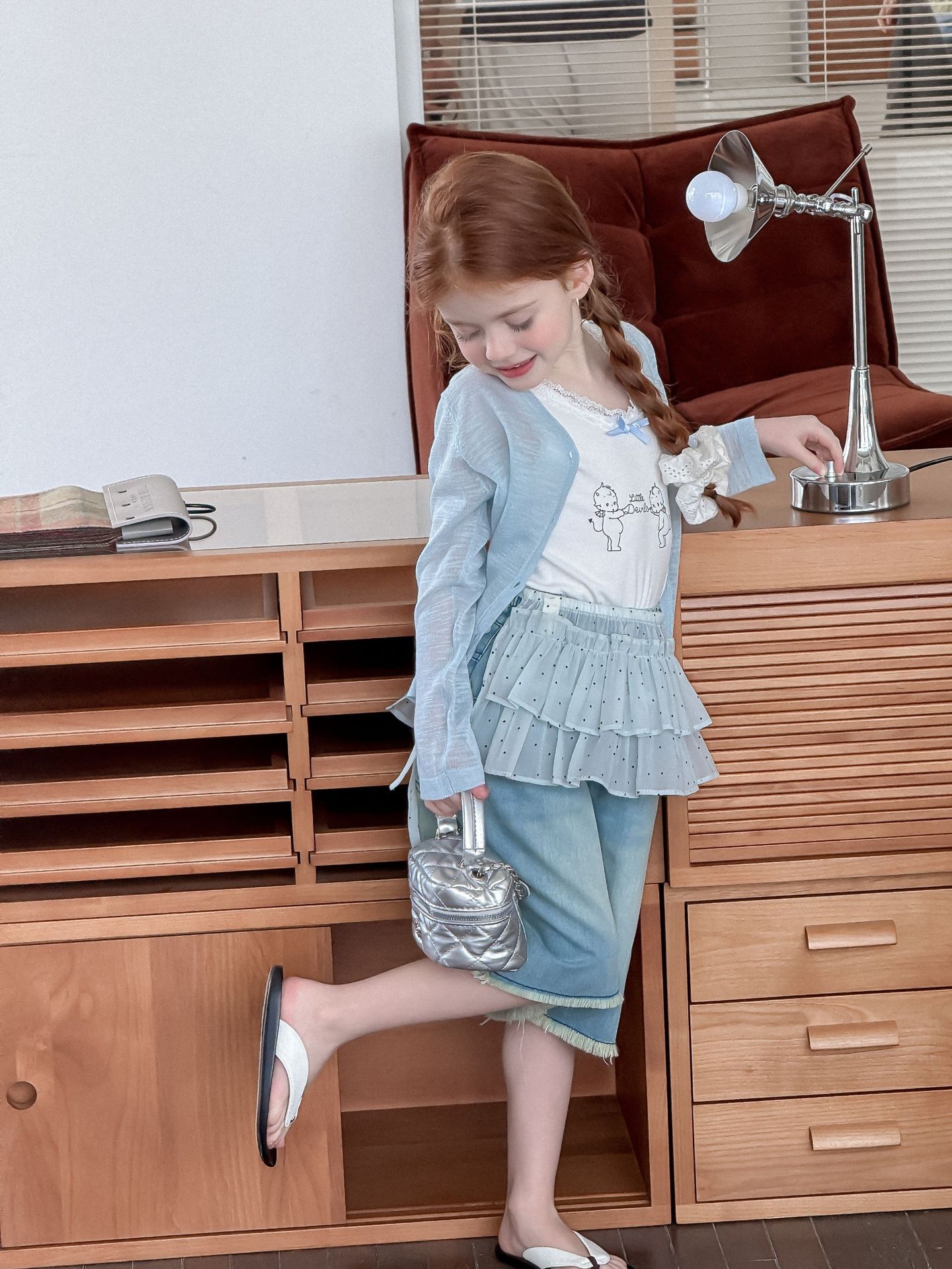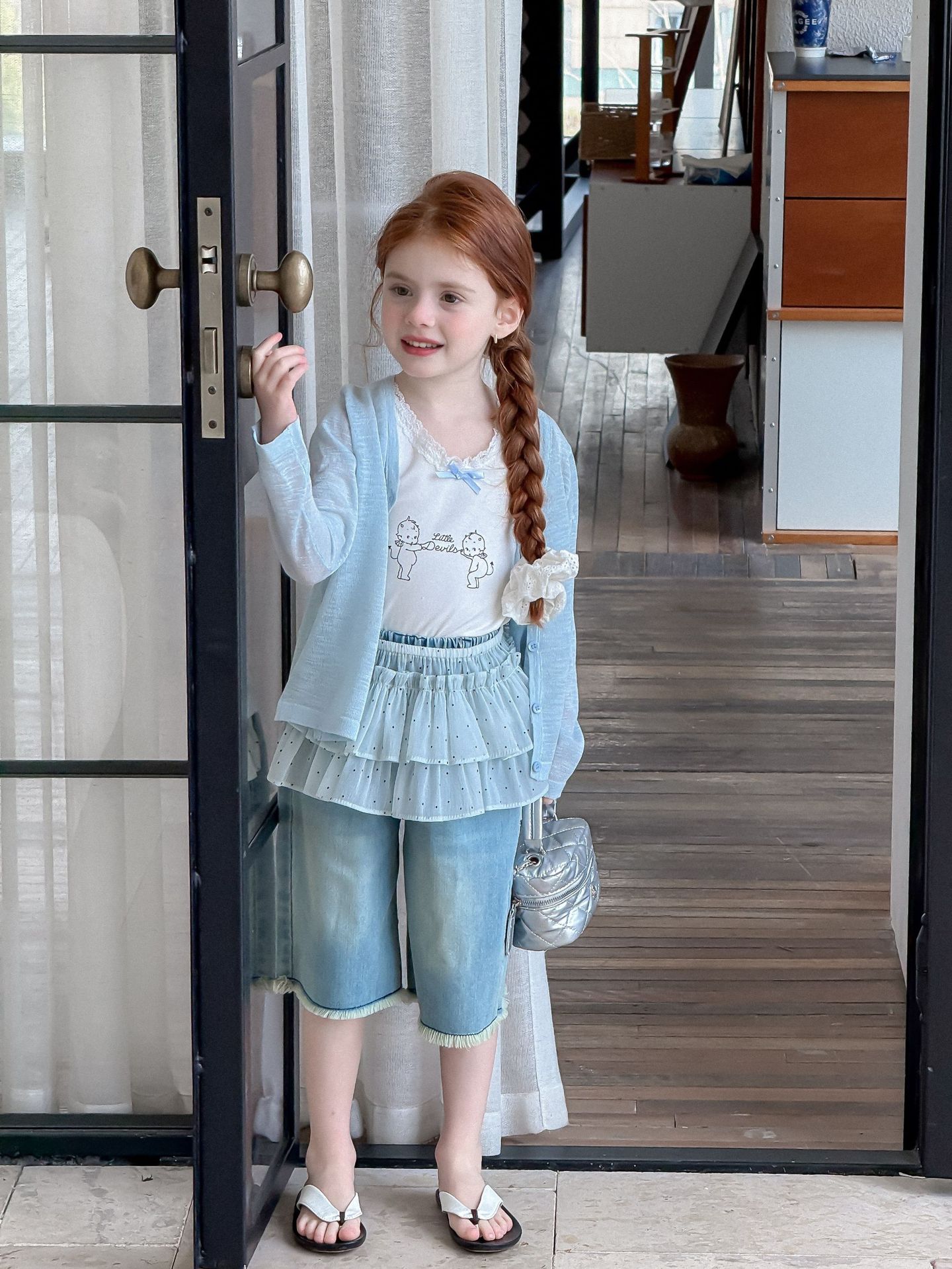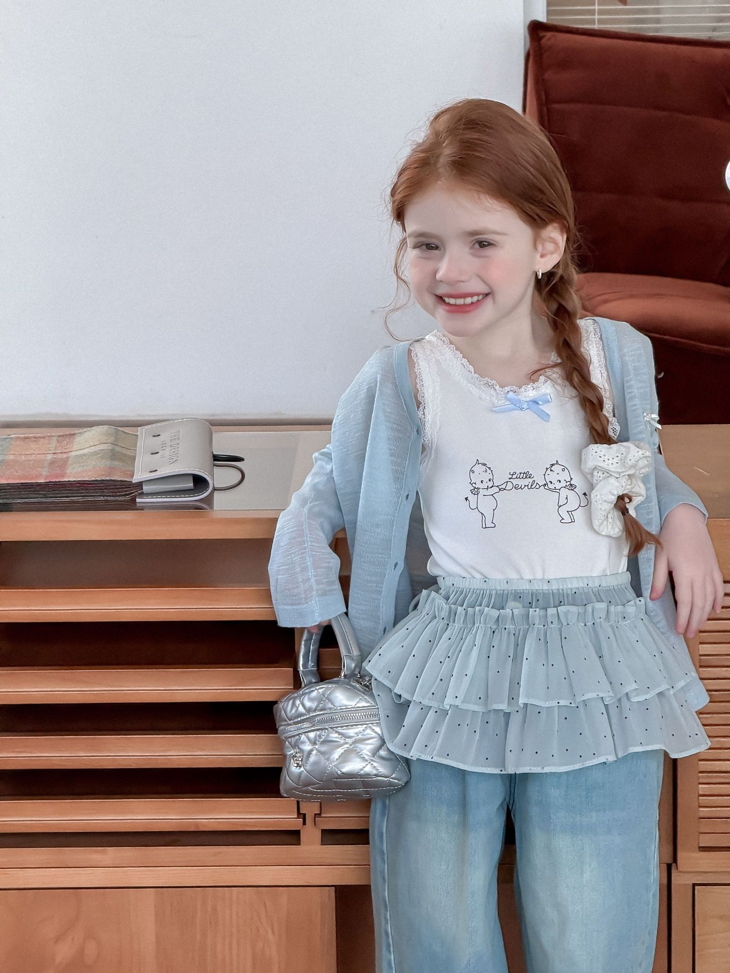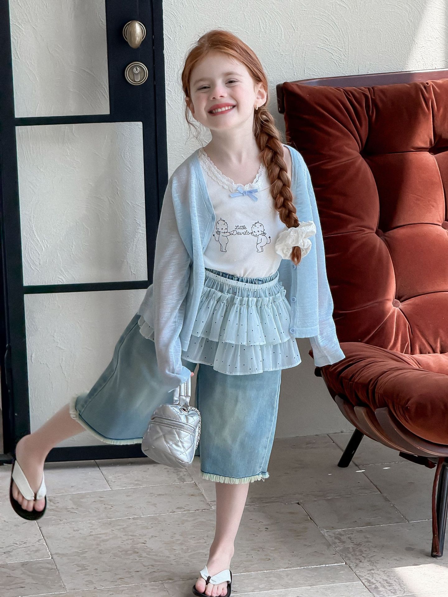 소녀 카디건 2025 여름 새로운 올매치 3 차원 활 자수 슬럽 니트웨어 어린이 선스크린 카디건스토어 가기