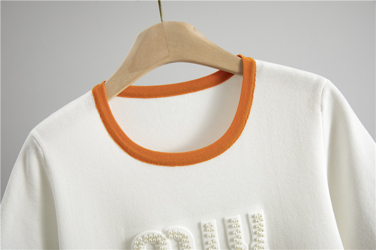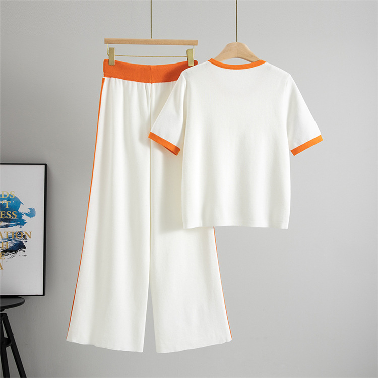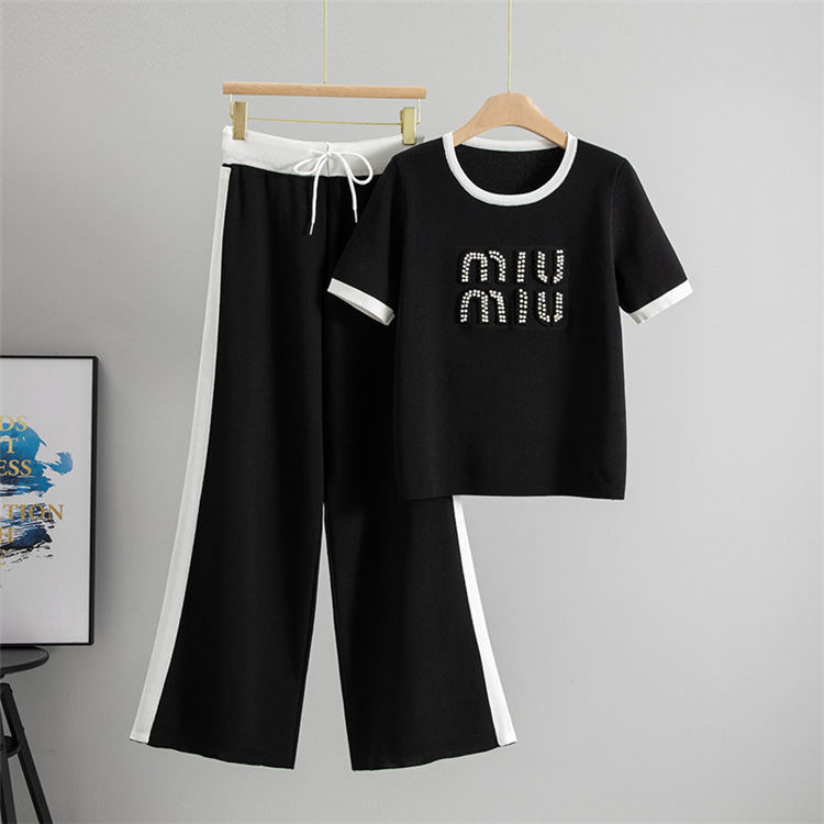 2026년 여름 신상 여성복 세트, 우아한 분위기의 반팔 패션 비즈 니트 상의 + 하이웨이스트 캐주얼 롱 팬츠