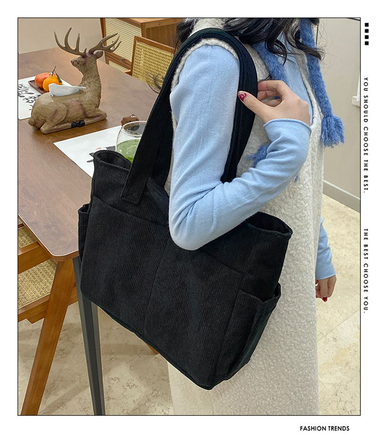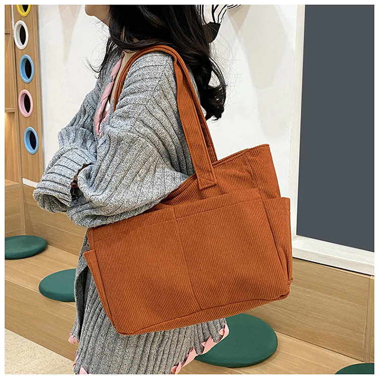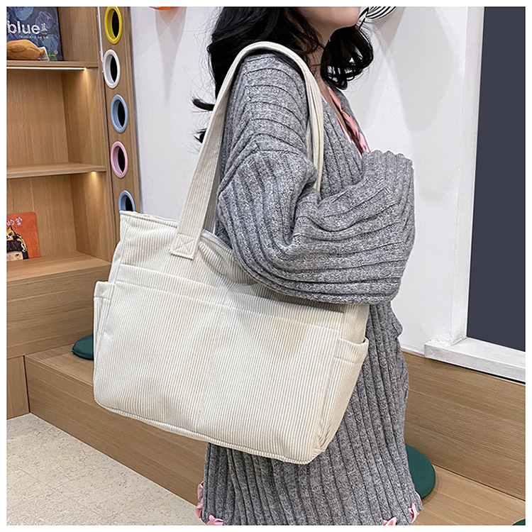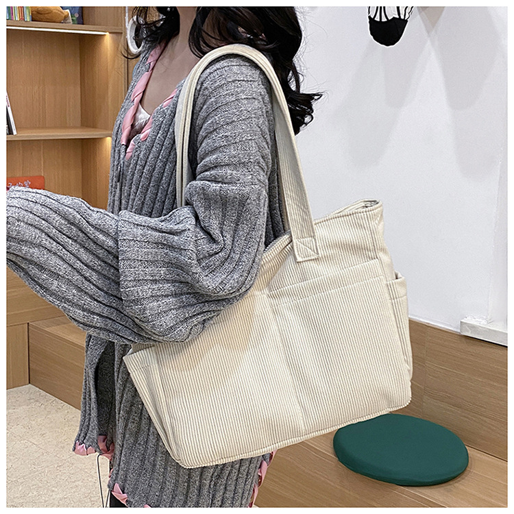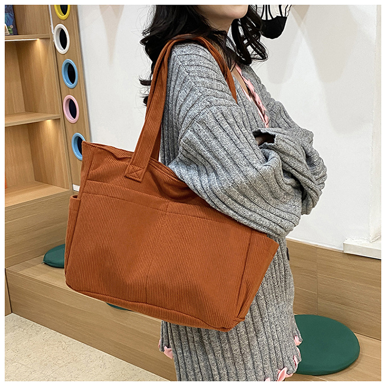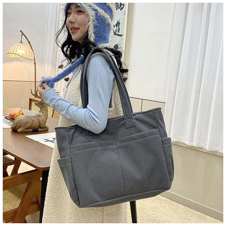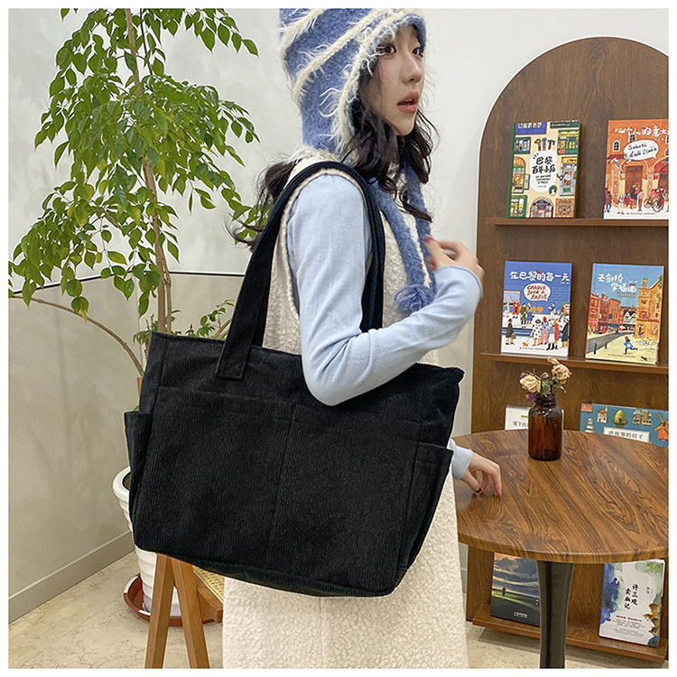 대외 무역 학생 토트 백 코듀로이 2025 트렌디 다용도 대용량 숄더백 인 캐주얼 휴대용 캔버스 가방스토어 가기