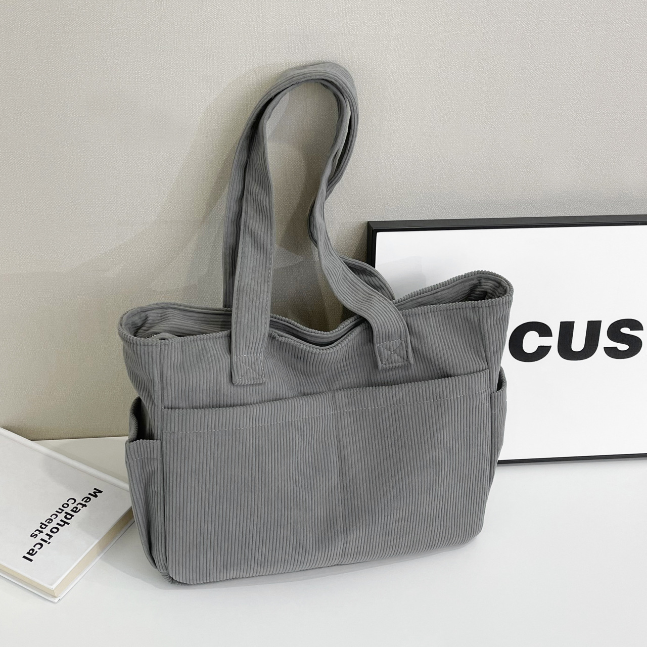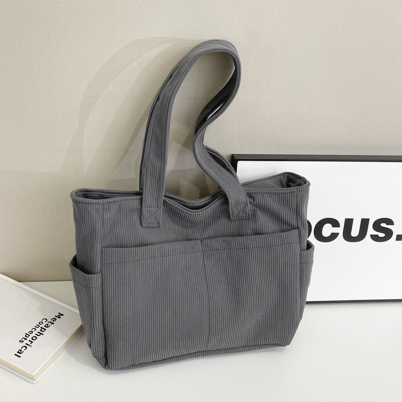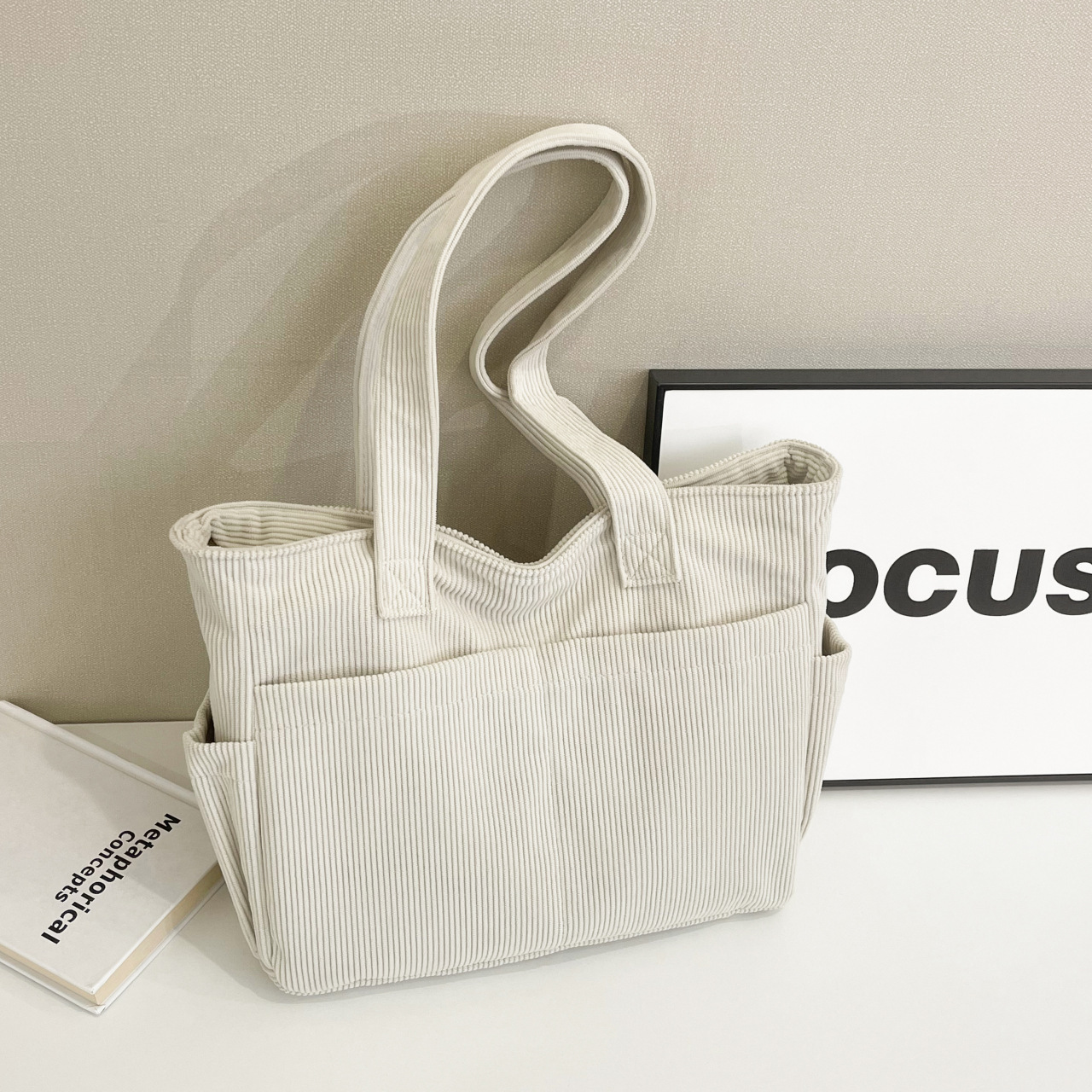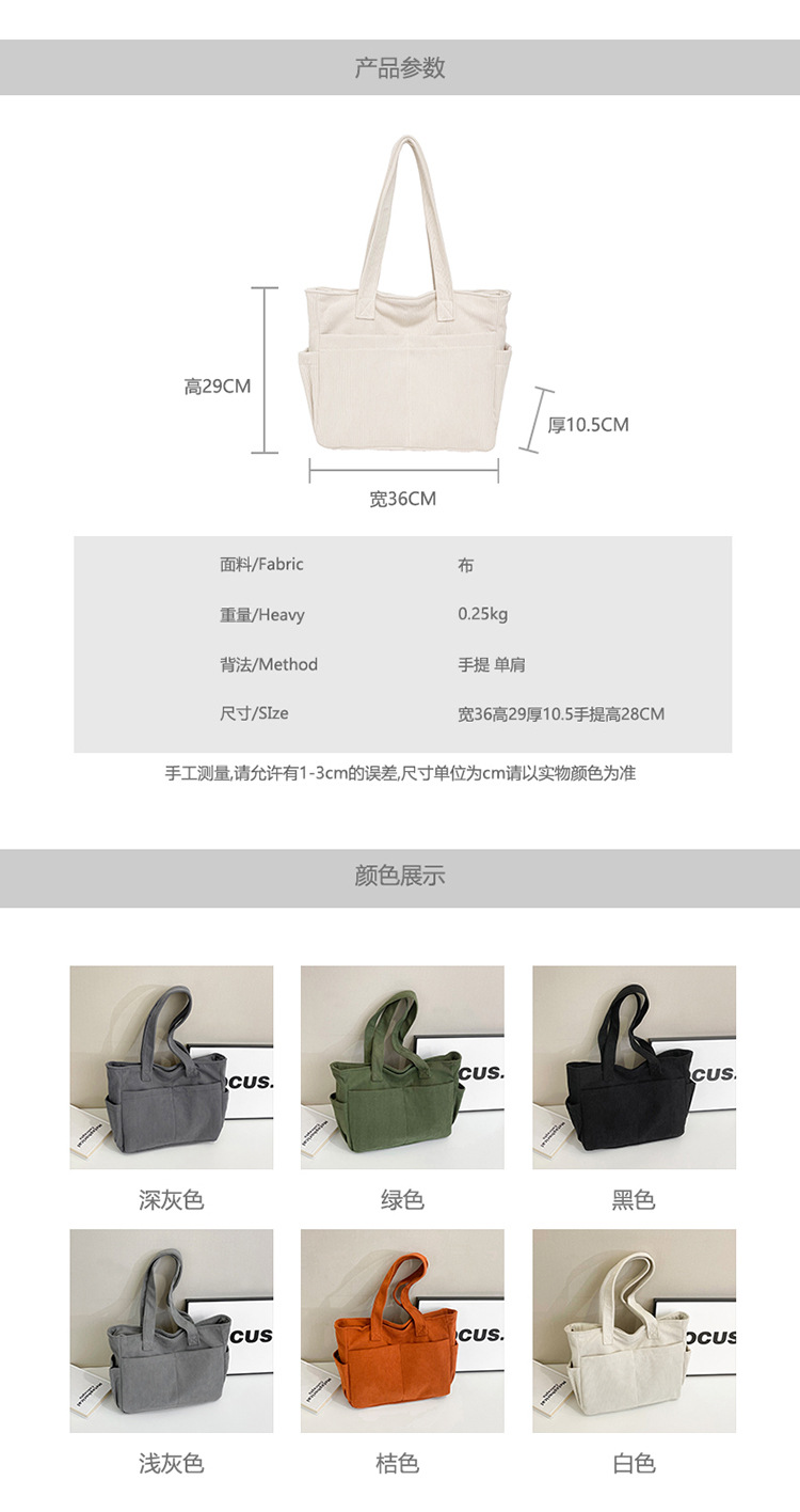 대외 무역 학생 토트 백 코듀로이 2025 트렌디 다용도 대용량 숄더백 인 캐주얼 휴대용 캔버스 가방스토어 가기
