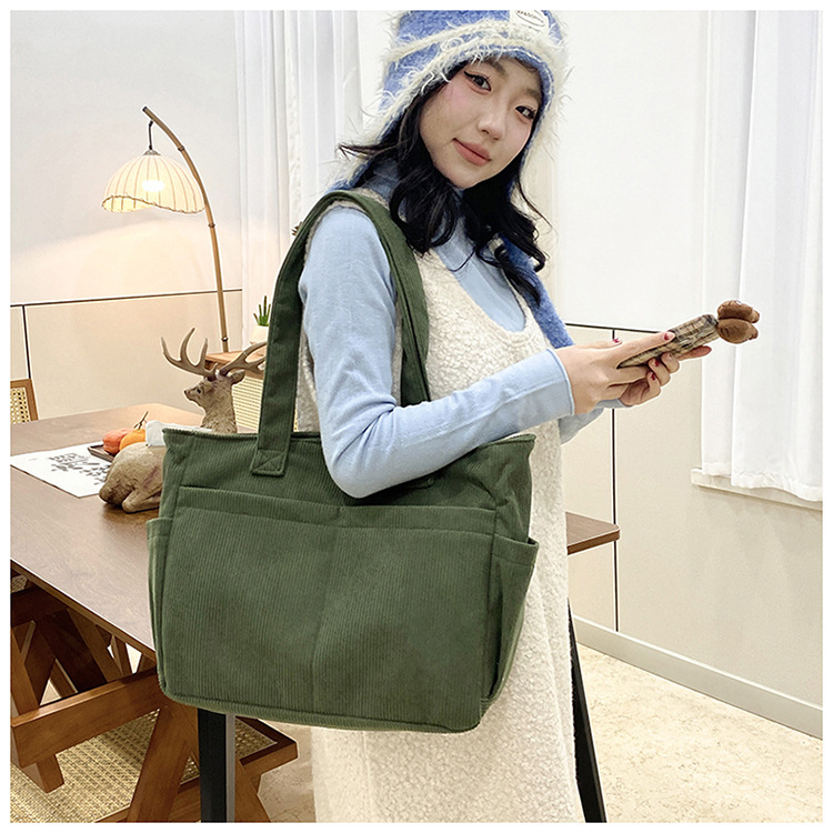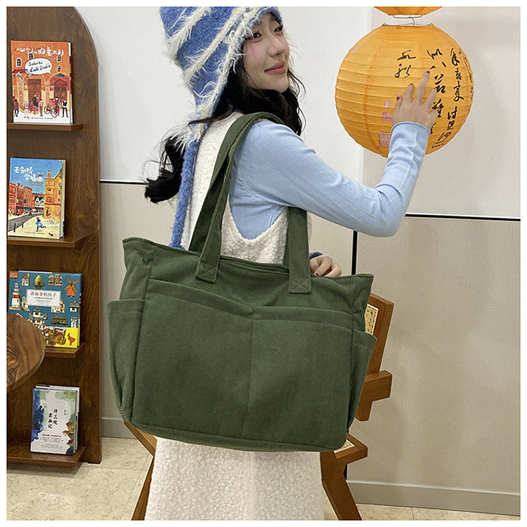 대외 무역 학생 토트 백 코듀로이 2025 트렌디 다용도 대용량 숄더백 인 캐주얼 휴대용 캔버스 가방