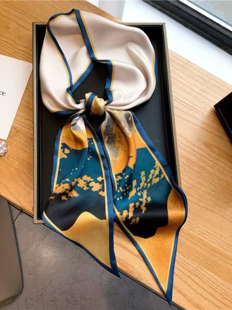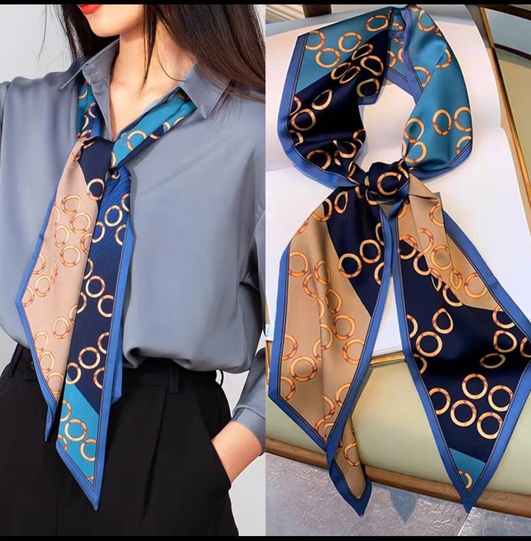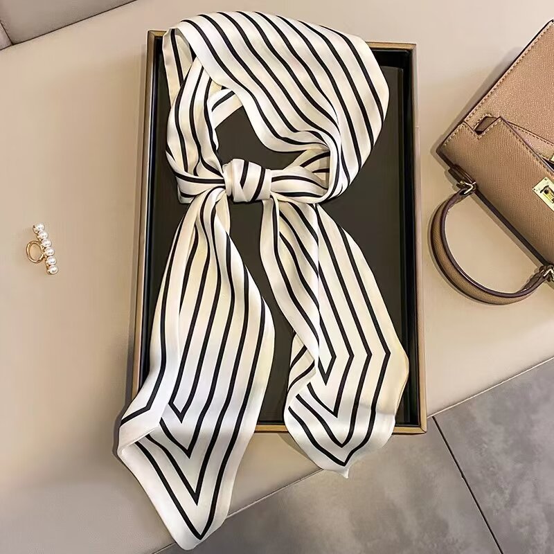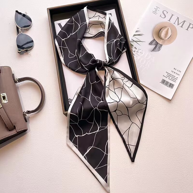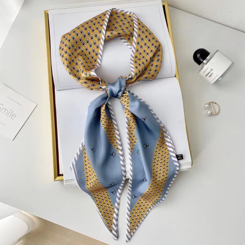 2025 여성용 긴 작은 실크 스카프 한국 스타일 다용도 셔츠 머리 묶기 스트랩 봄, 가을 패션 작은 스카프 스카프