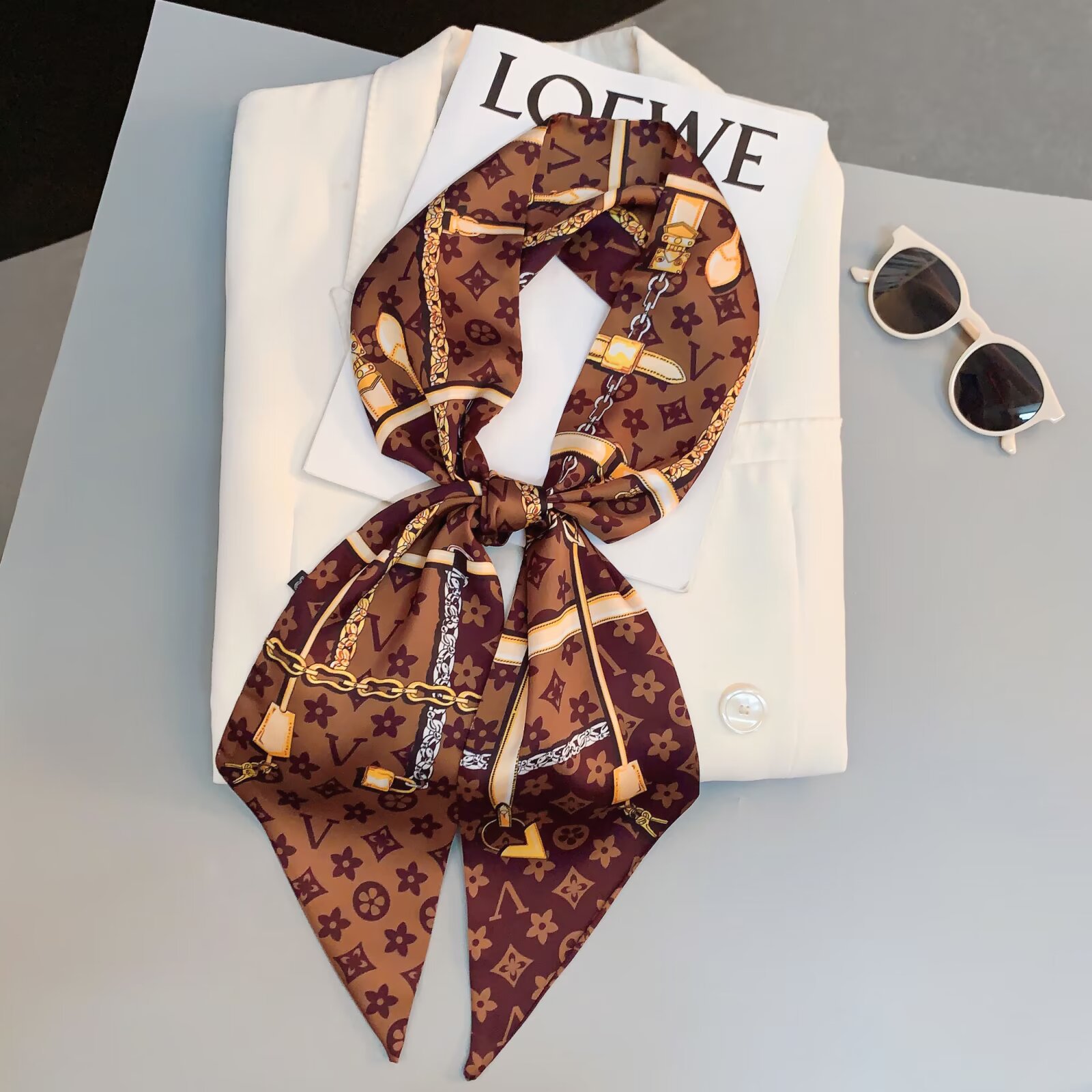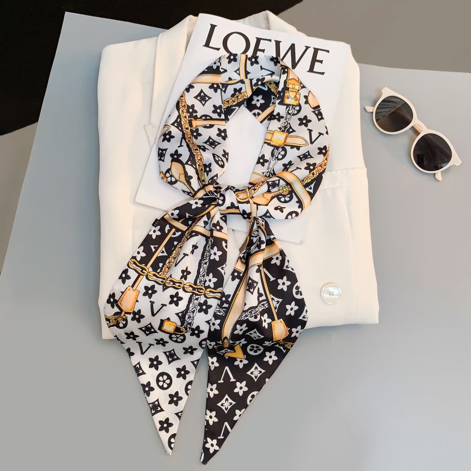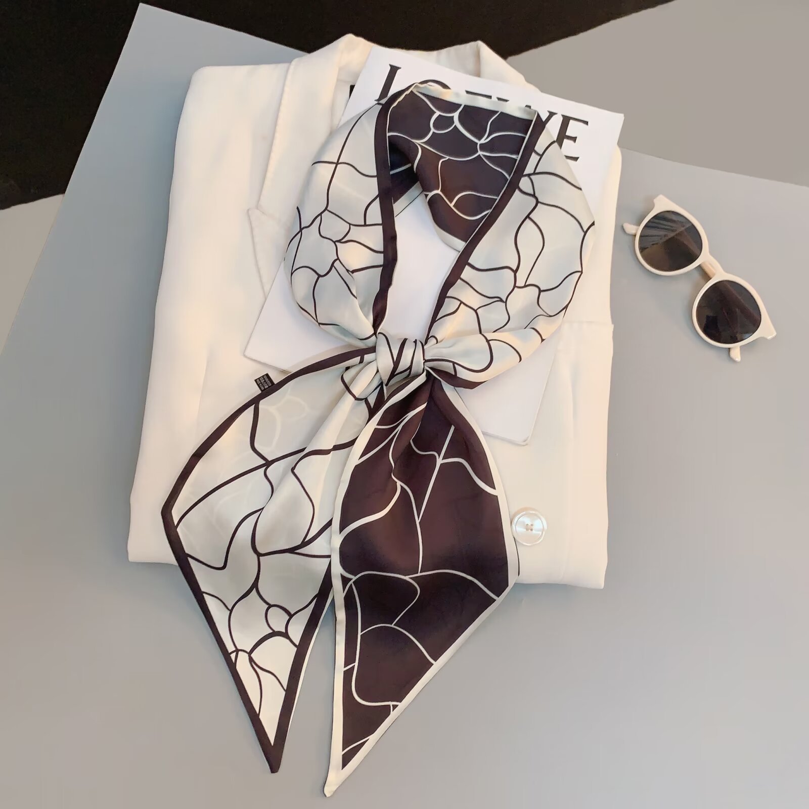 2025 여성용 긴 작은 실크 스카프 한국 스타일 다용도 셔츠 머리 묶기 스트랩 봄, 가을 패션 작은 스카프 스카프