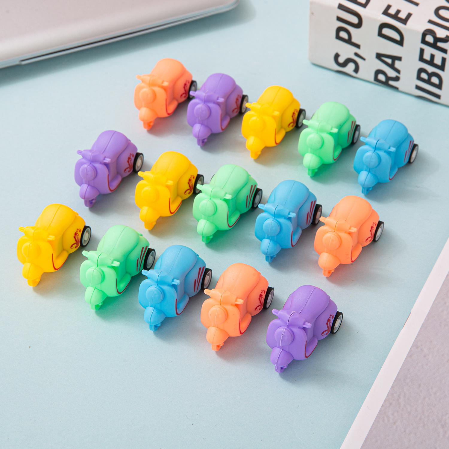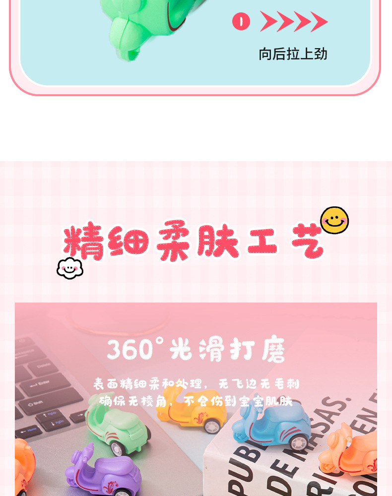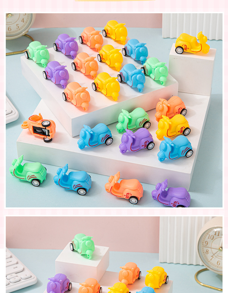 어린이 장난감 자동차 미니 Macaron Huili 만화 오토바이 세발 자전거 유치원 작은 장난감 마구간 도매