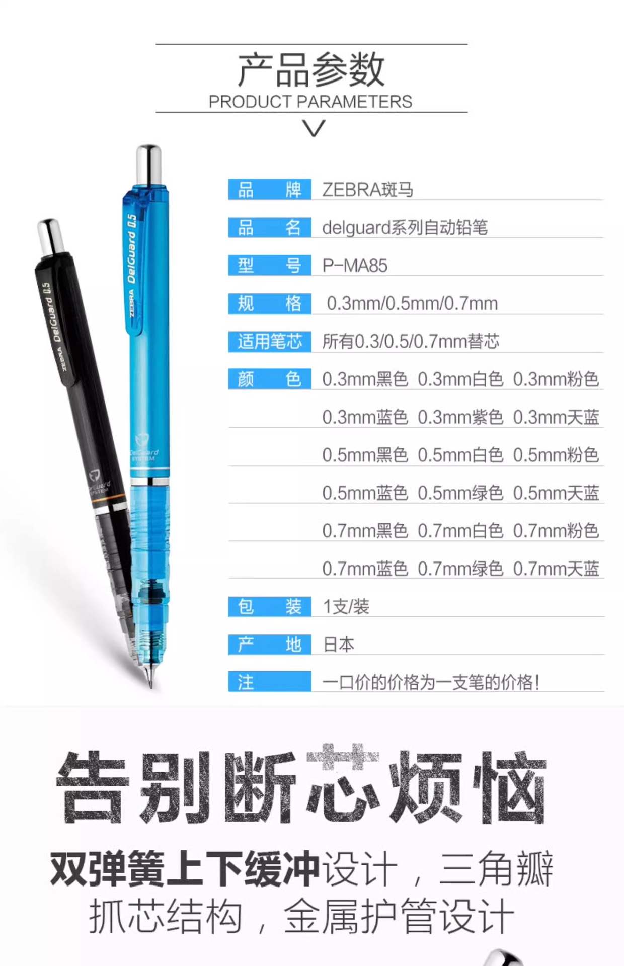 일본 ZEBRA 얼룩말 깨지기 쉽지 않은 코어 자동 연필 드로잉 스케치 연필 샤프 펜슬 MA85 한정판스토어 가기
