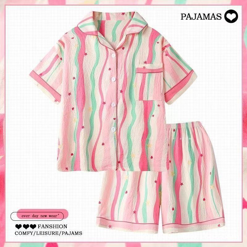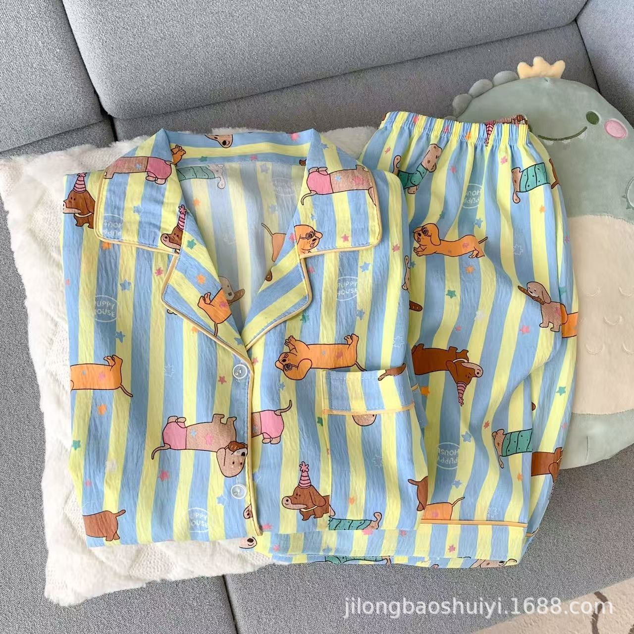 아마존 공장 AliExpress 국경 간 Taobao 얇은 구름 면 봄과 여름 잠옷 여성 반팔 반바지 홈 옷