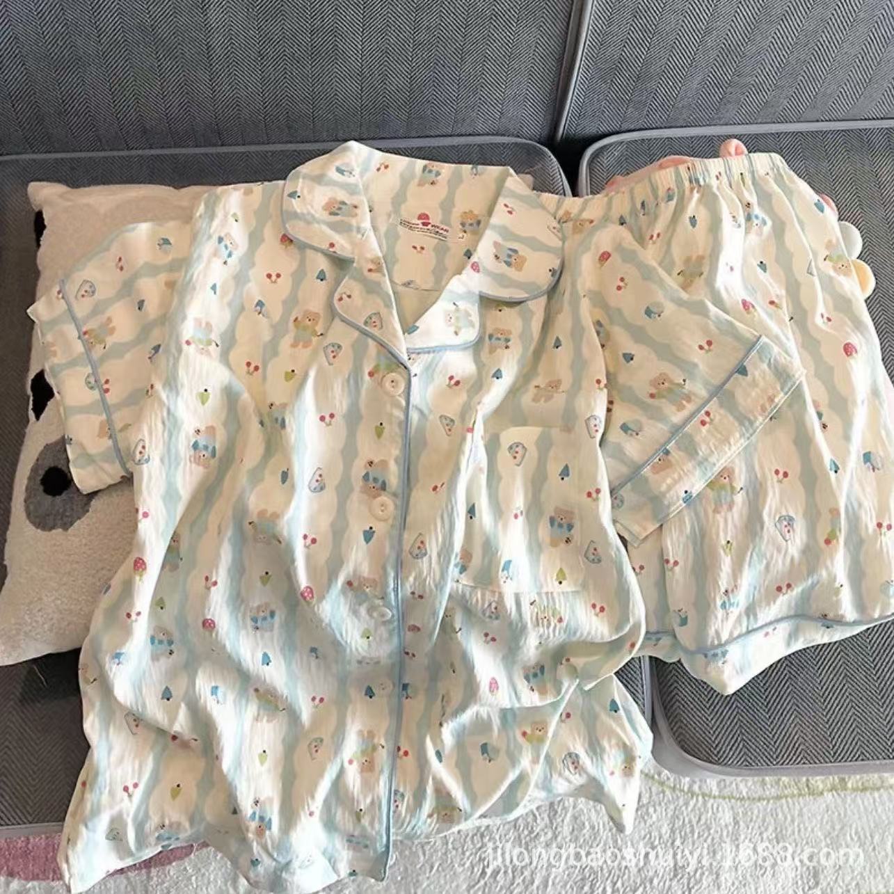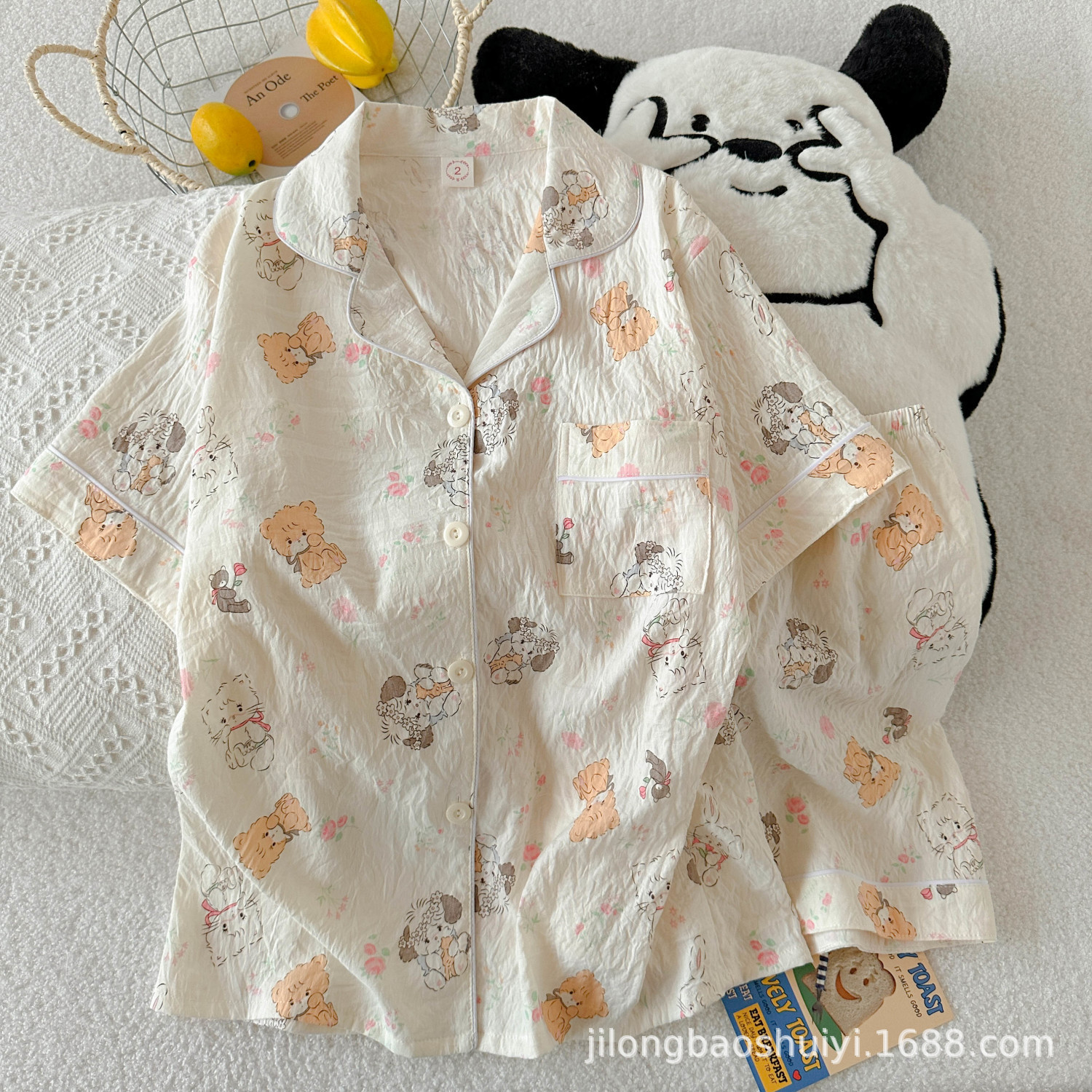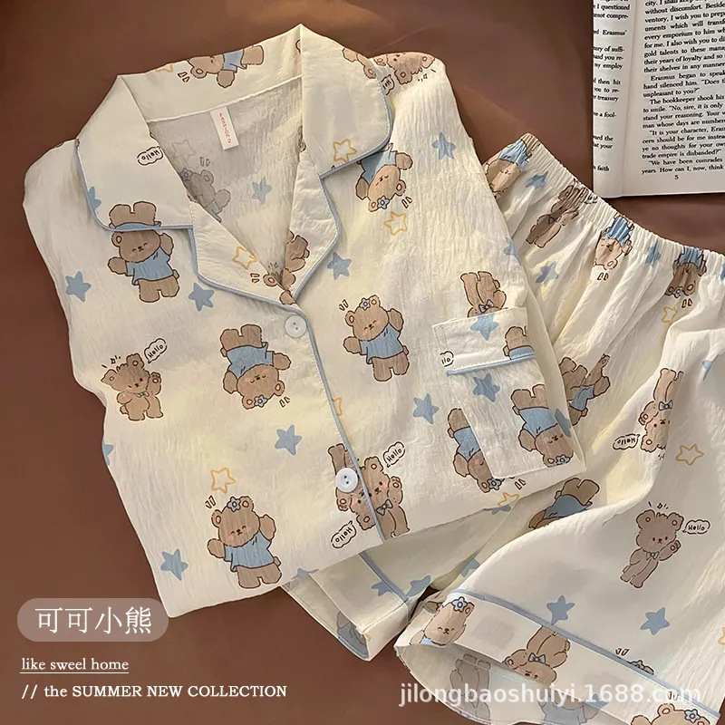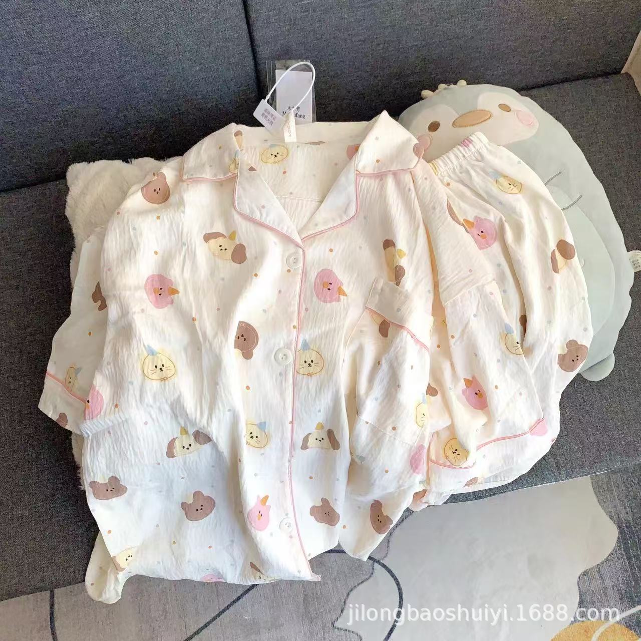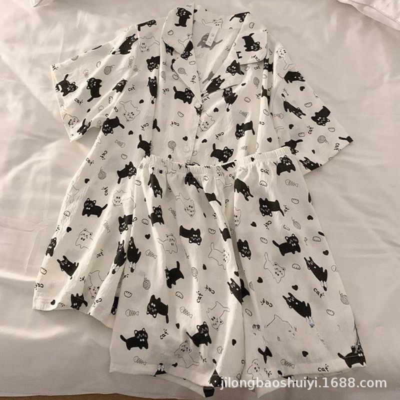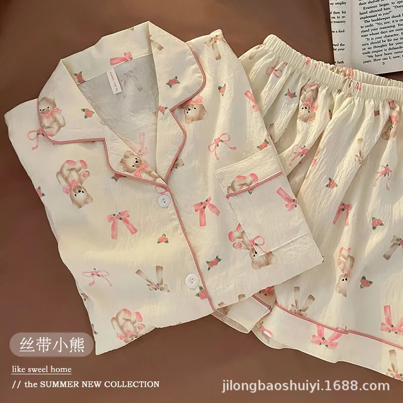 아마존 공장 AliExpress 국경 간 Taobao 얇은 구름 면 봄과 여름 잠옷 여성 반팔 반바지 홈 옷스토어 가기