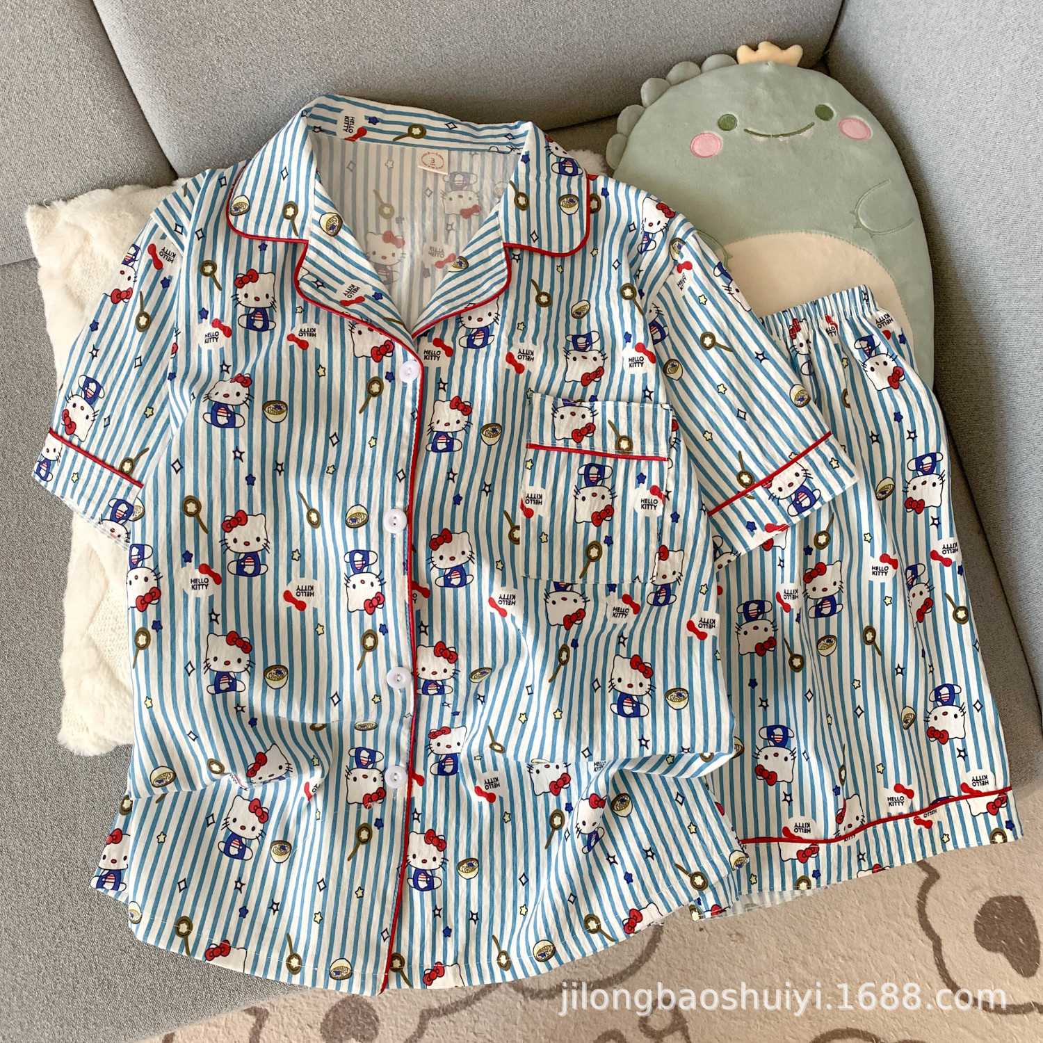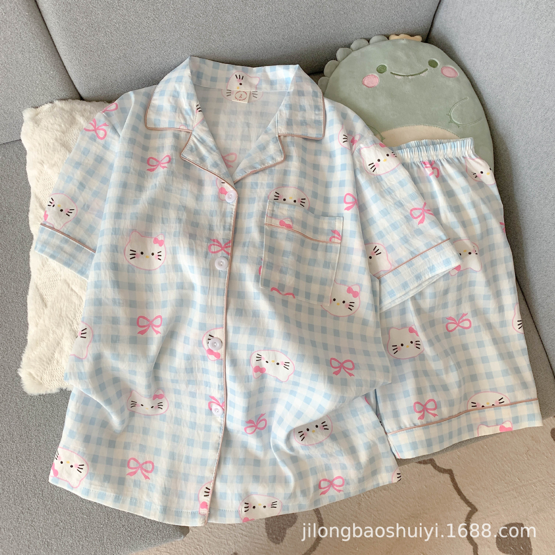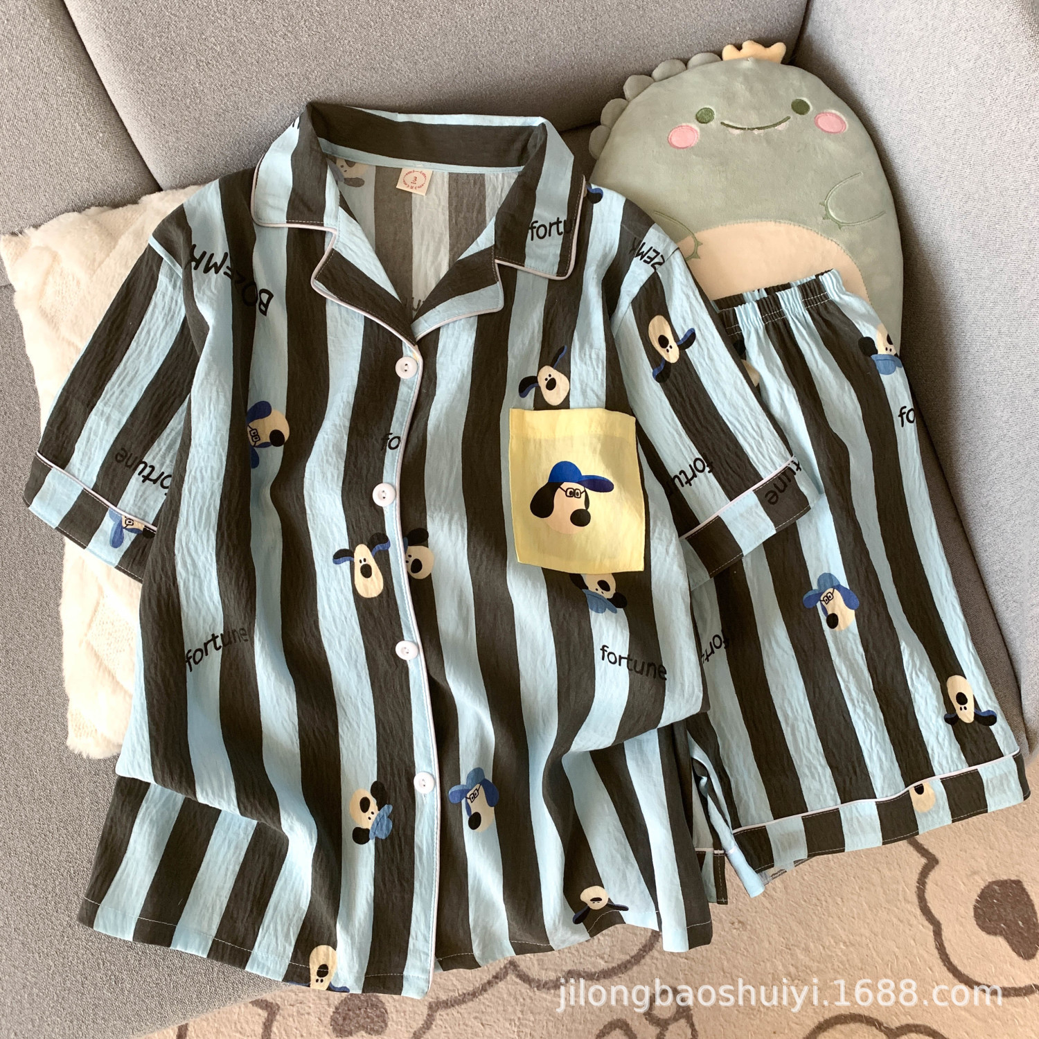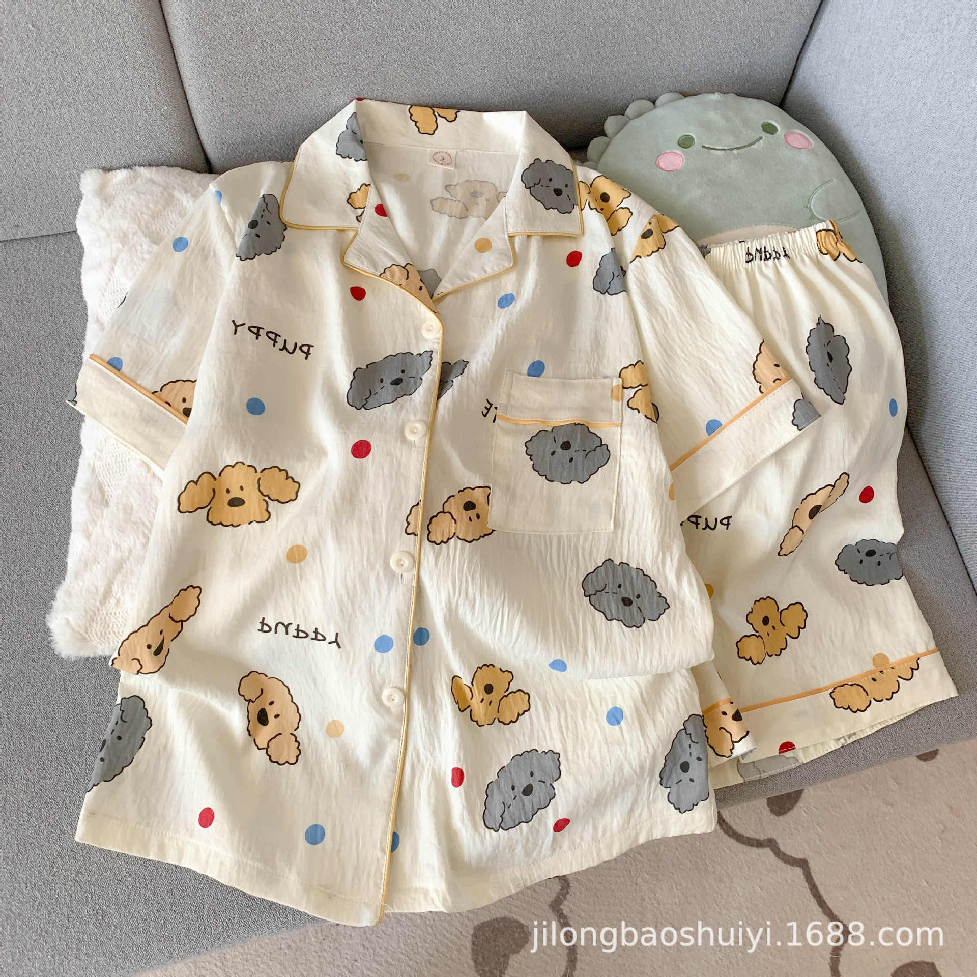 아마존 공장 AliExpress 국경 간 Taobao 얇은 구름 면 봄과 여름 잠옷 여성 반팔 반바지 홈 옷스토어 가기