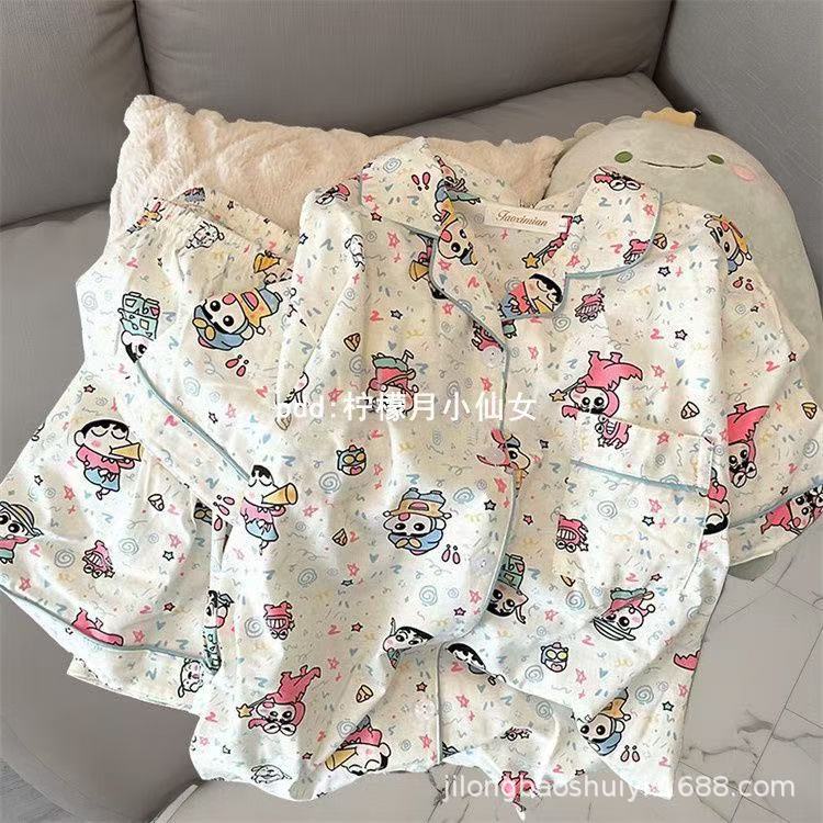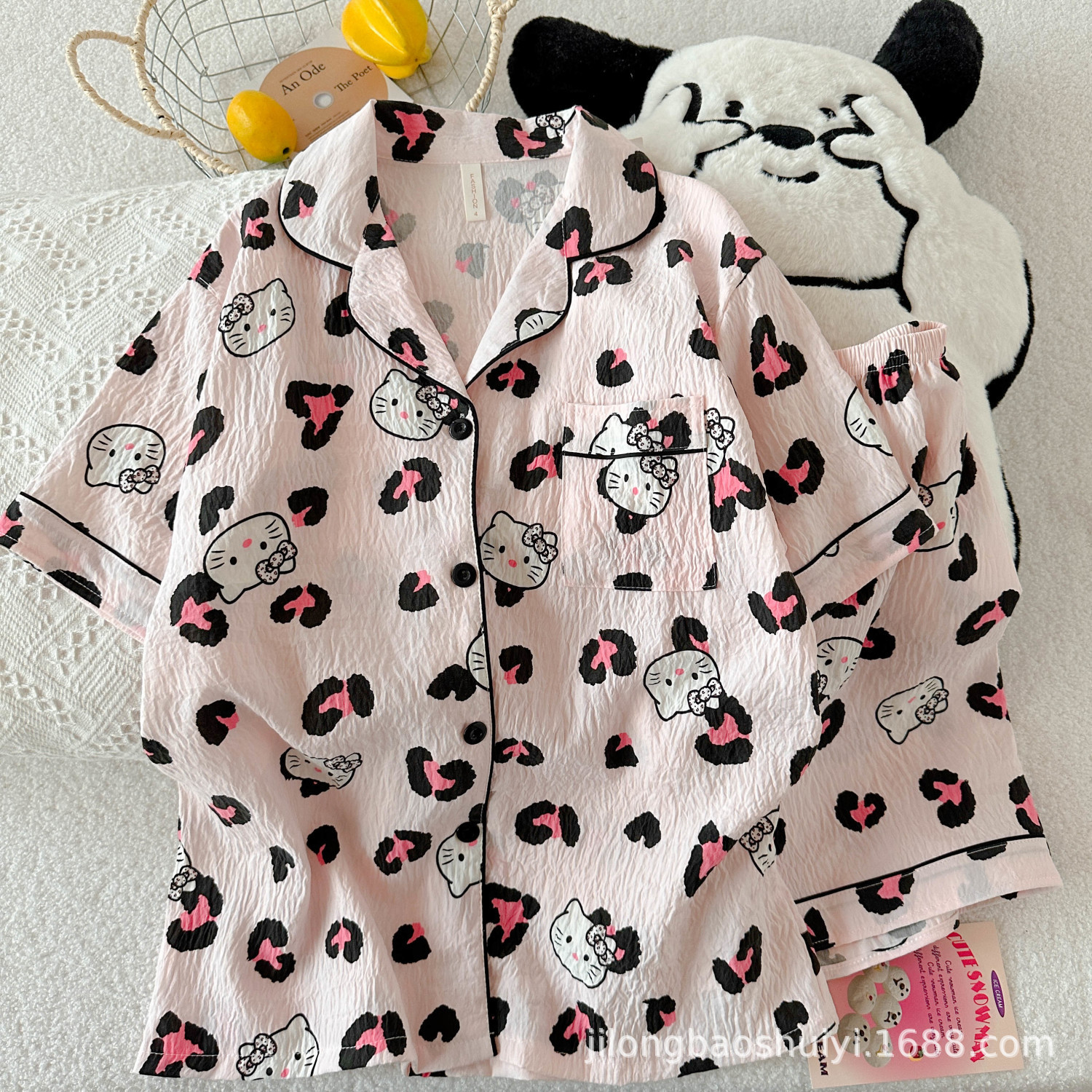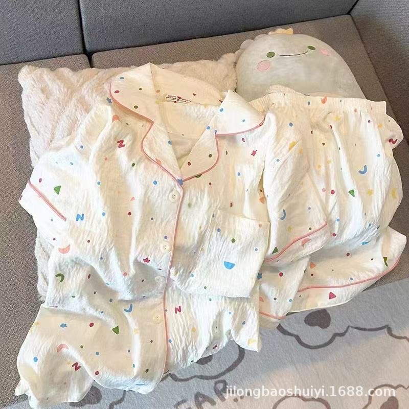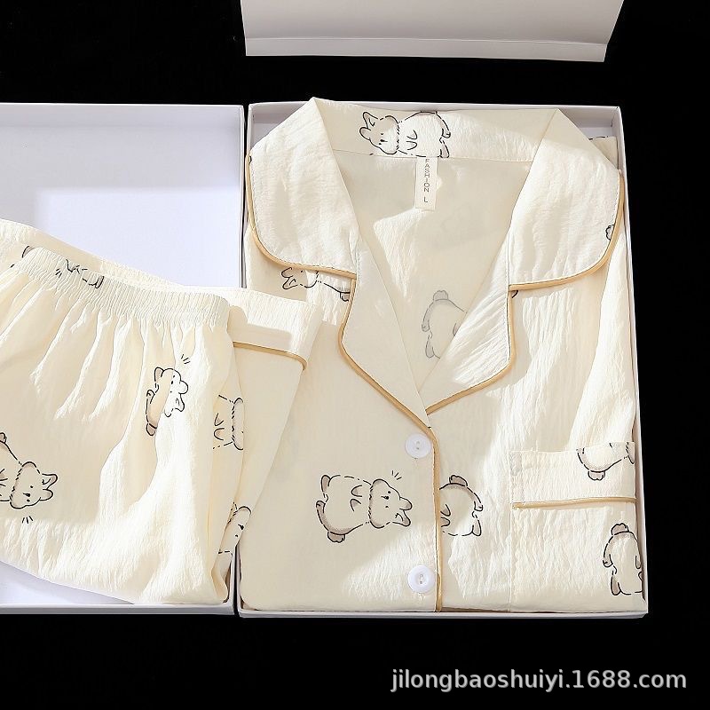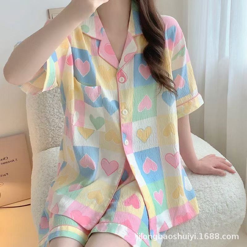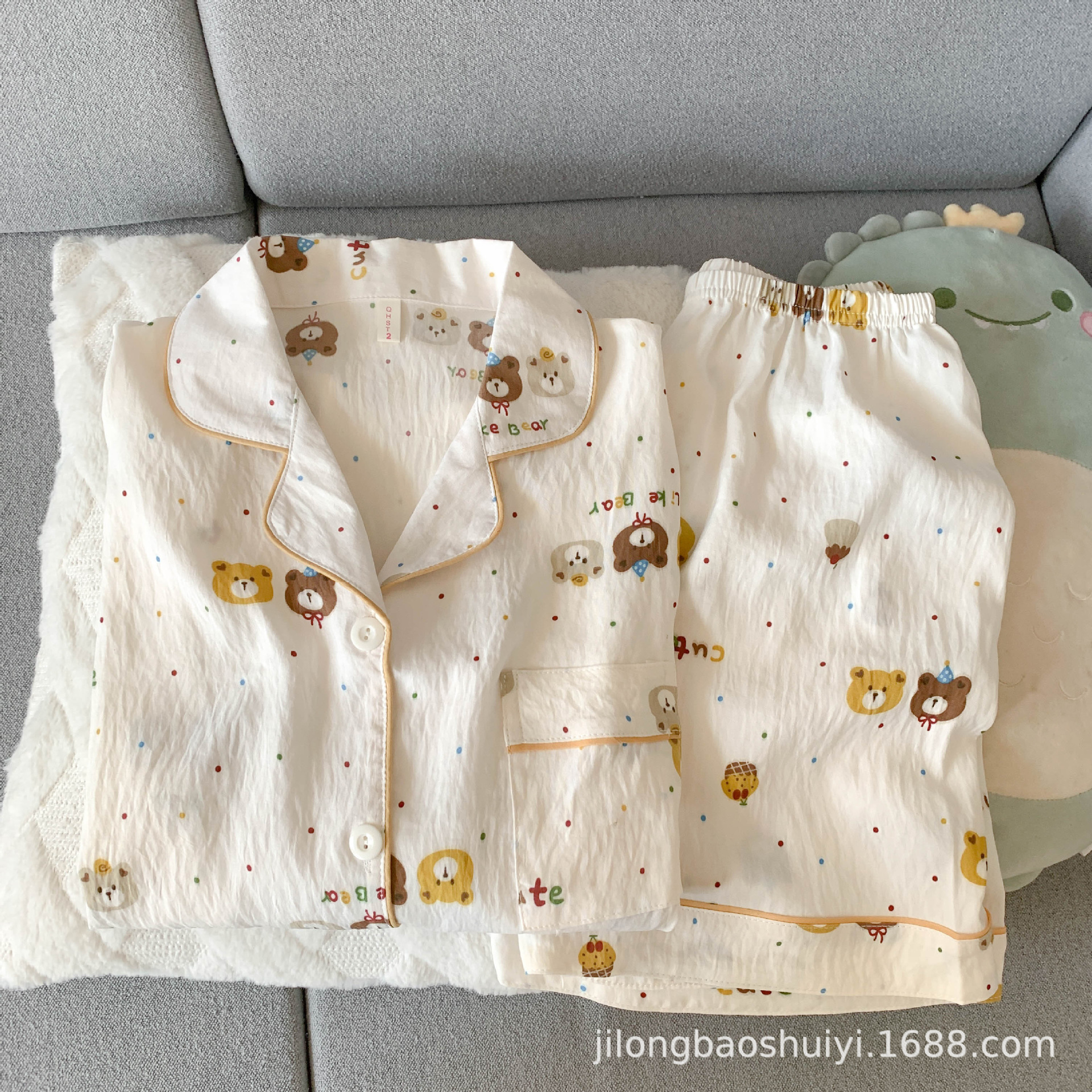 아마존 공장 AliExpress 국경 간 Taobao 얇은 구름 면 봄과 여름 잠옷 여성 반팔 반바지 홈 옷스토어 가기