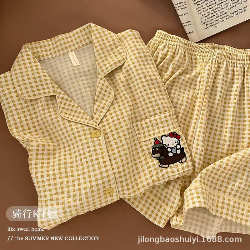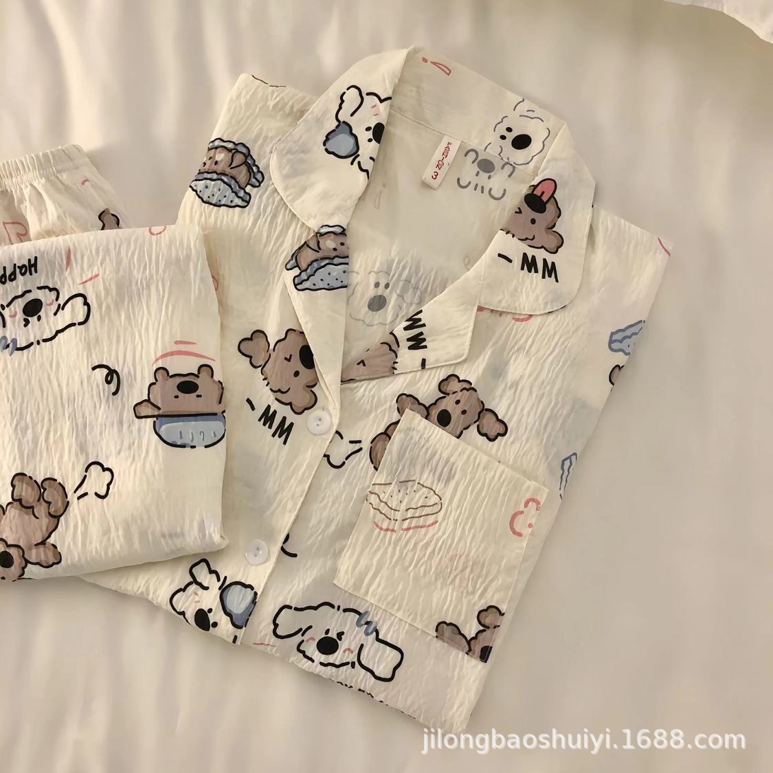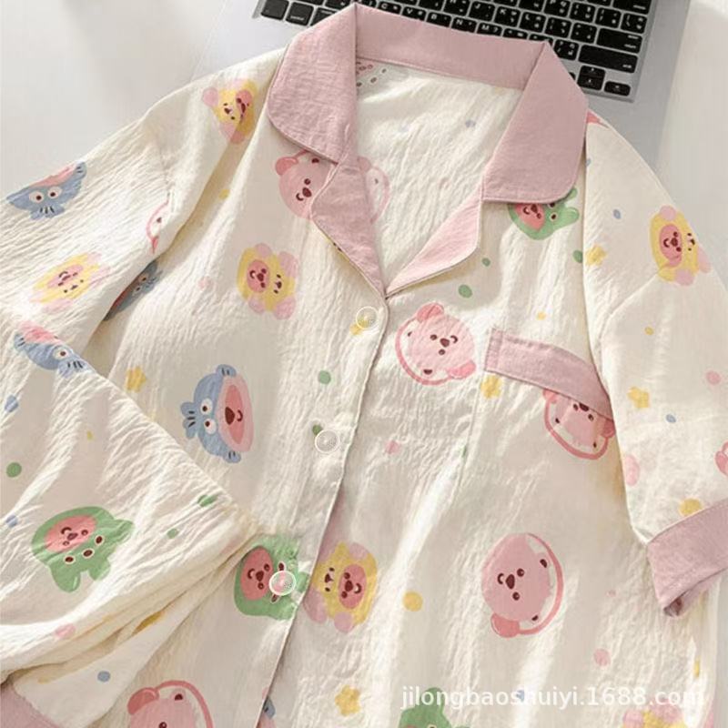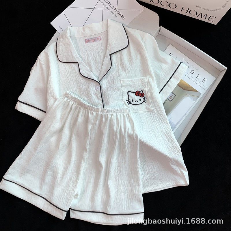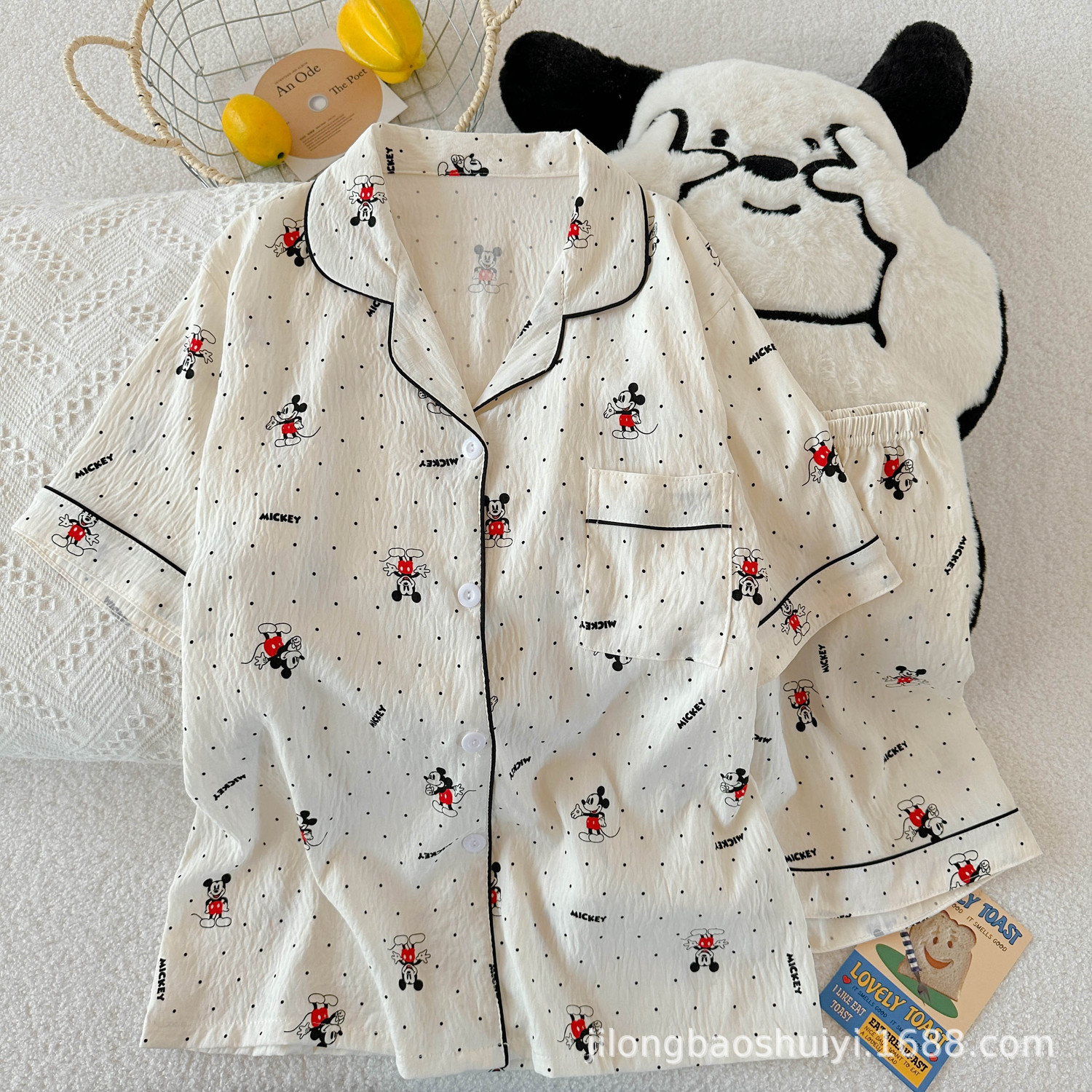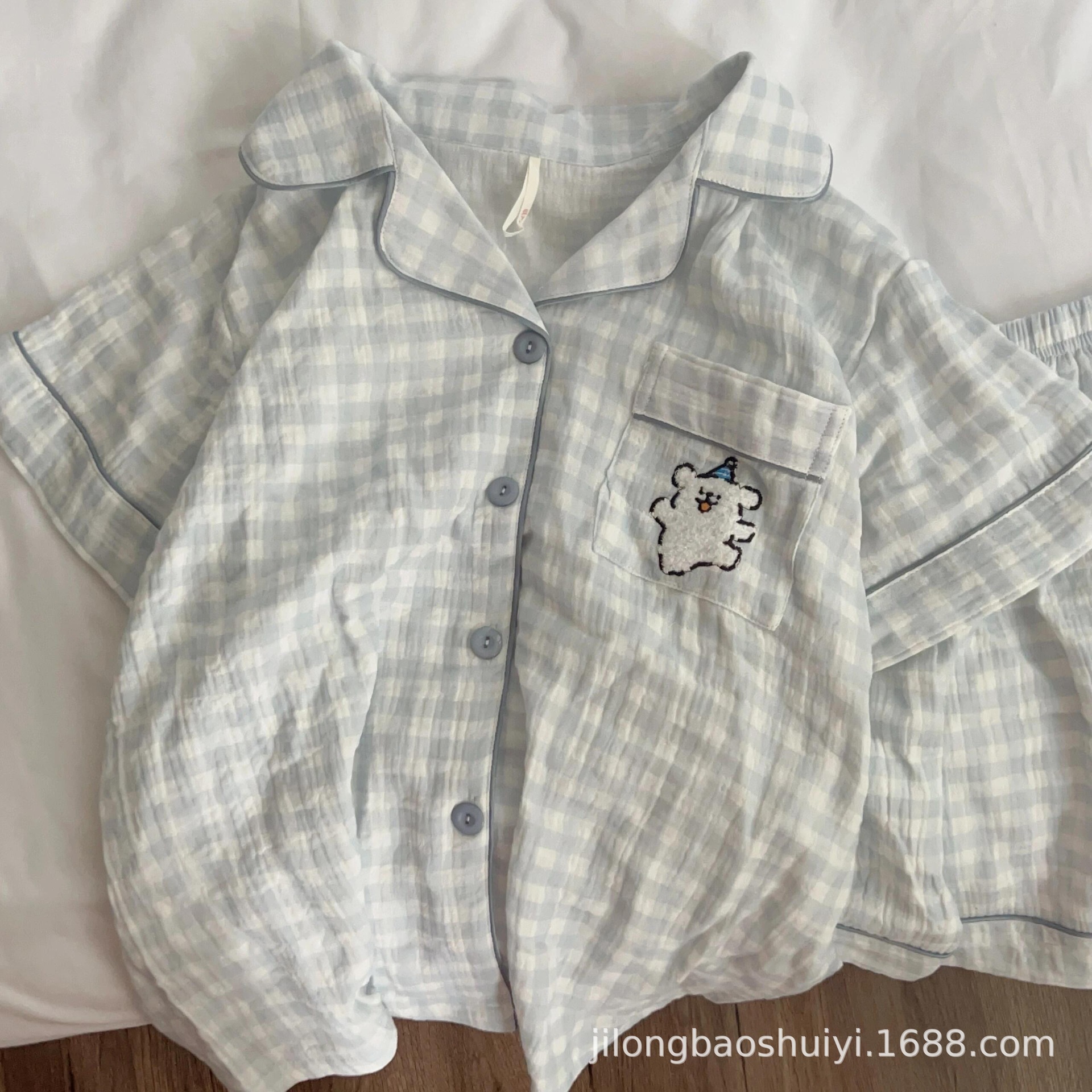 아마존 공장 AliExpress 국경 간 Taobao 얇은 구름 면 봄과 여름 잠옷 여성 반팔 반바지 홈 옷스토어 가기