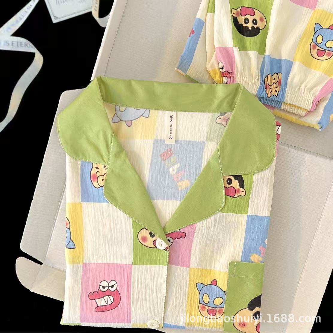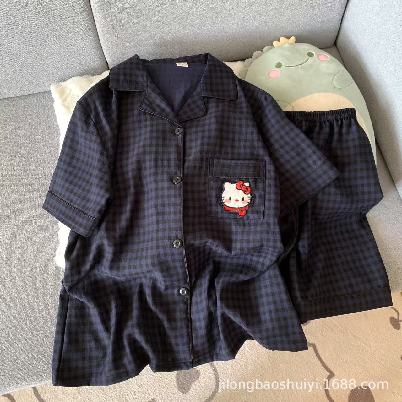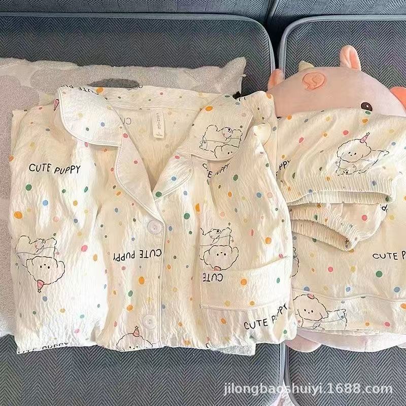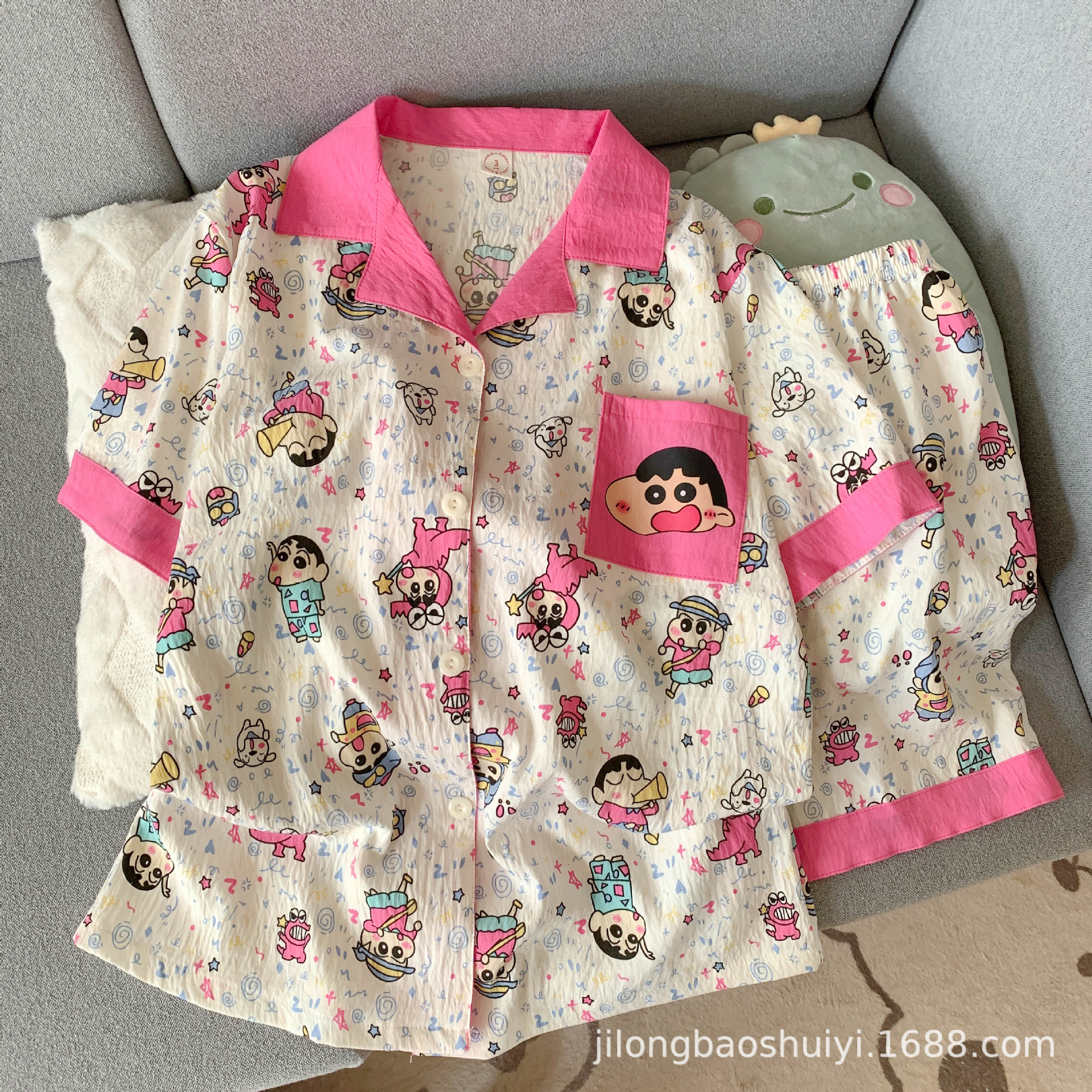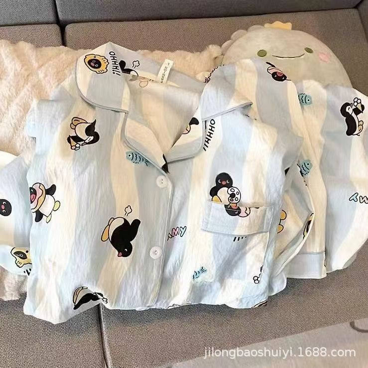 아마존 공장 AliExpress 국경 간 Taobao 얇은 구름 면 봄과 여름 잠옷 여성 반팔 반바지 홈 옷스토어 가기