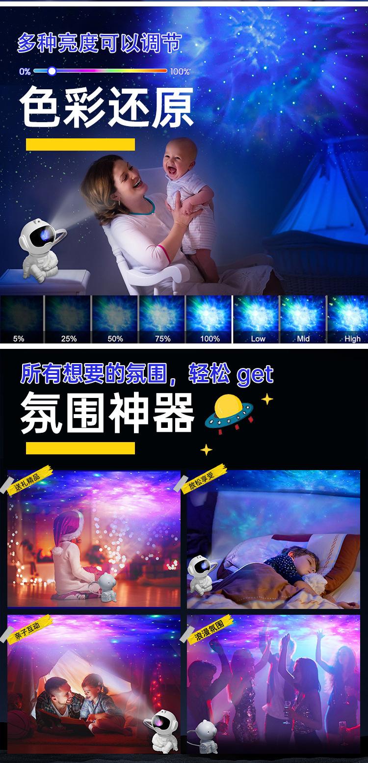 달을 안고 있는 우주비행사 별빛 램프, 가정용 거실 프로젝션 램프, 침실 분위기 조명 장식품, 작은 야간 조명, 장난감 선물스토어 가기