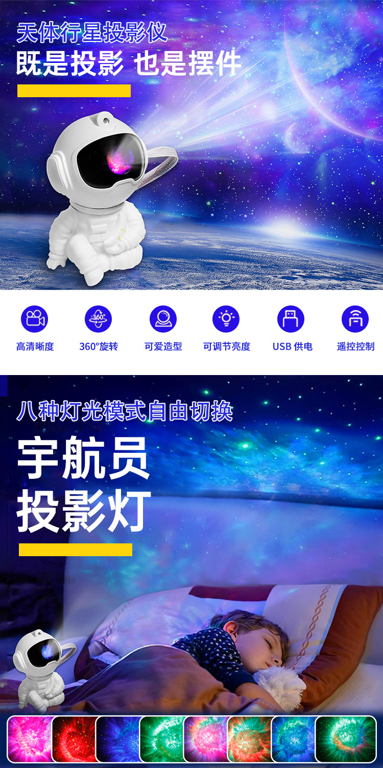 달을 안고 있는 우주비행사 별빛 램프, 가정용 거실 프로젝션 램프, 침실 분위기 조명 장식품, 작은 야간 조명, 장난감 선물