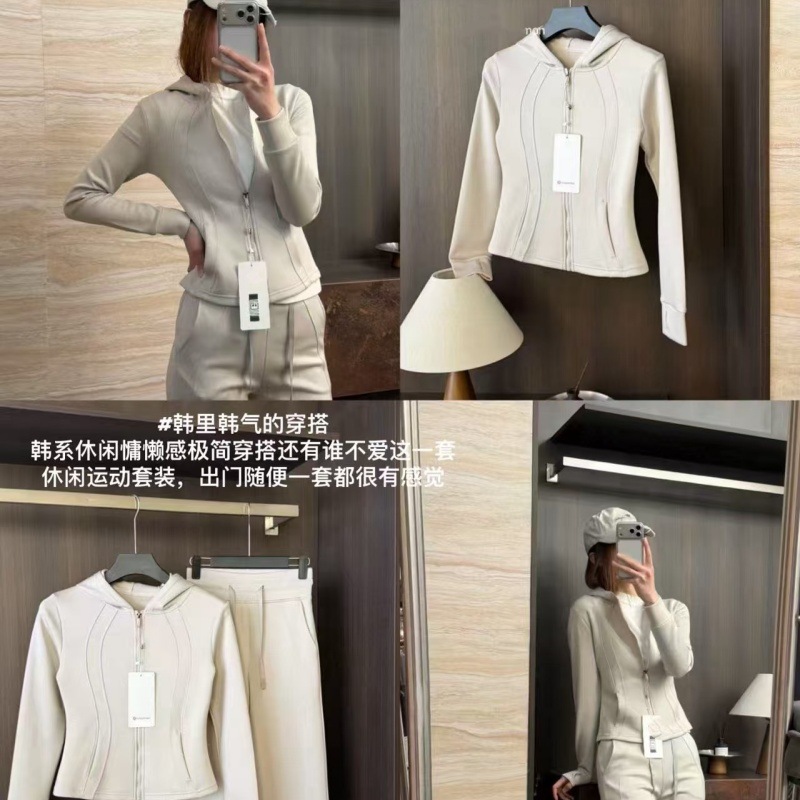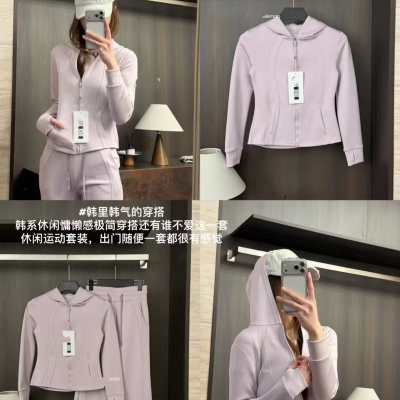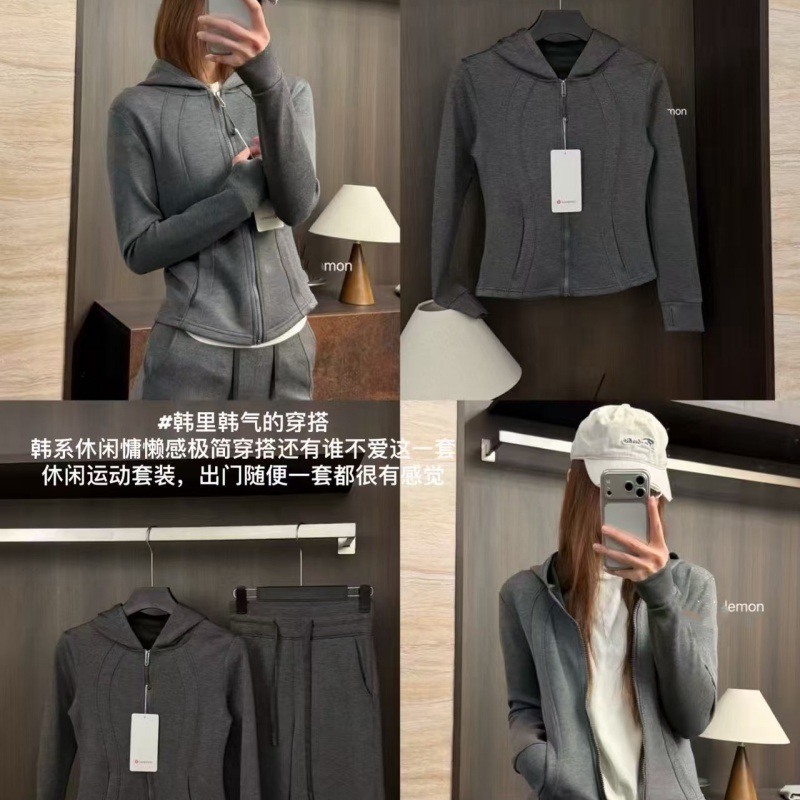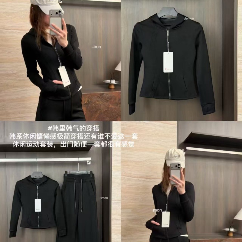 【상포 정품】루루 오리지널 라벨 3세대 방풍 요가복 여성용 플리스 안감 두꺼운 보온 후드 겨울용스토어 가기