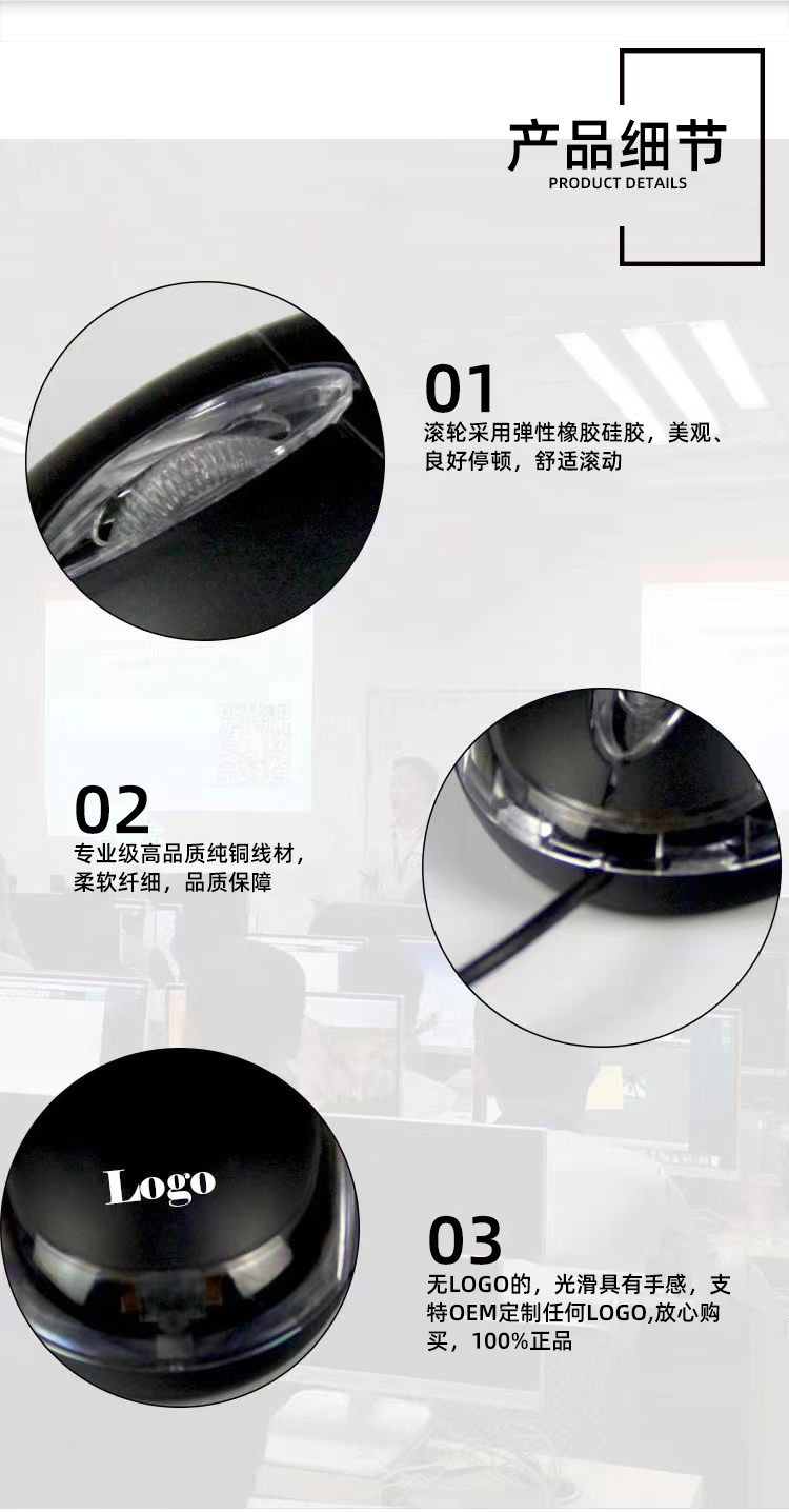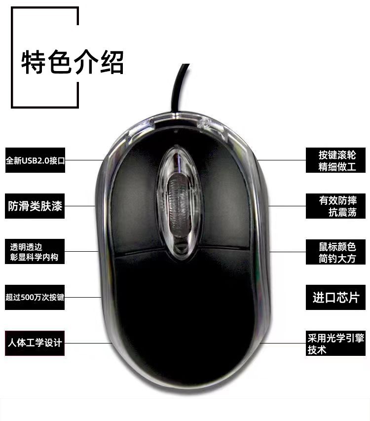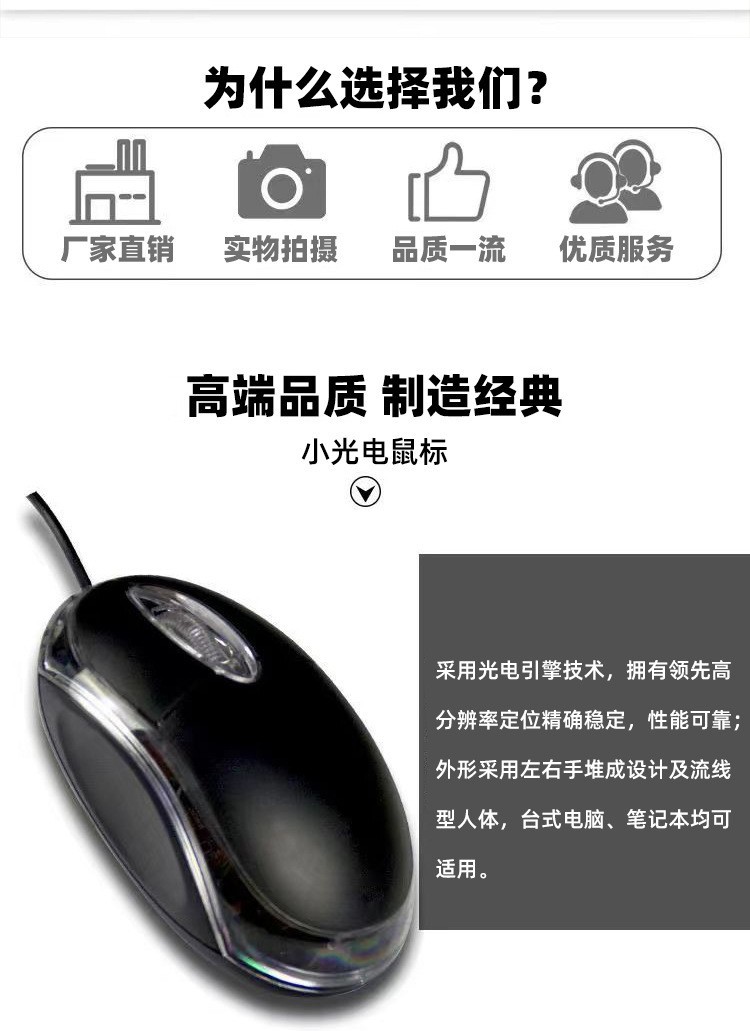 공장 도매 USB 유선 소형 광 마우스 범용 검정색 빛나는 미니 마우스 소형 마우스스토어 가기