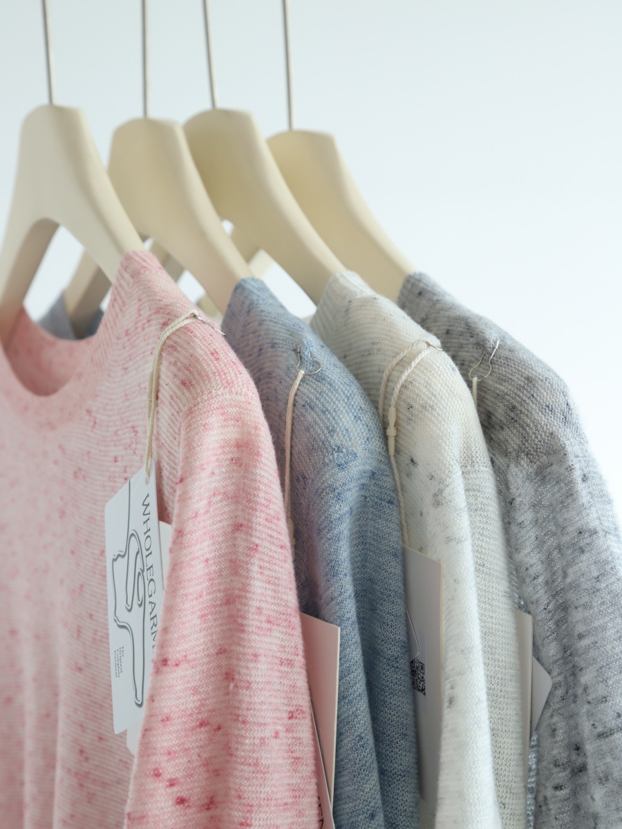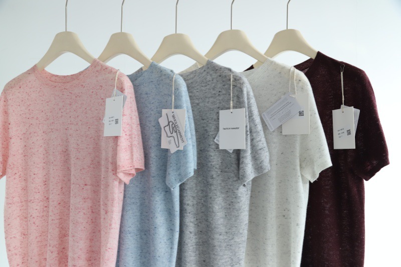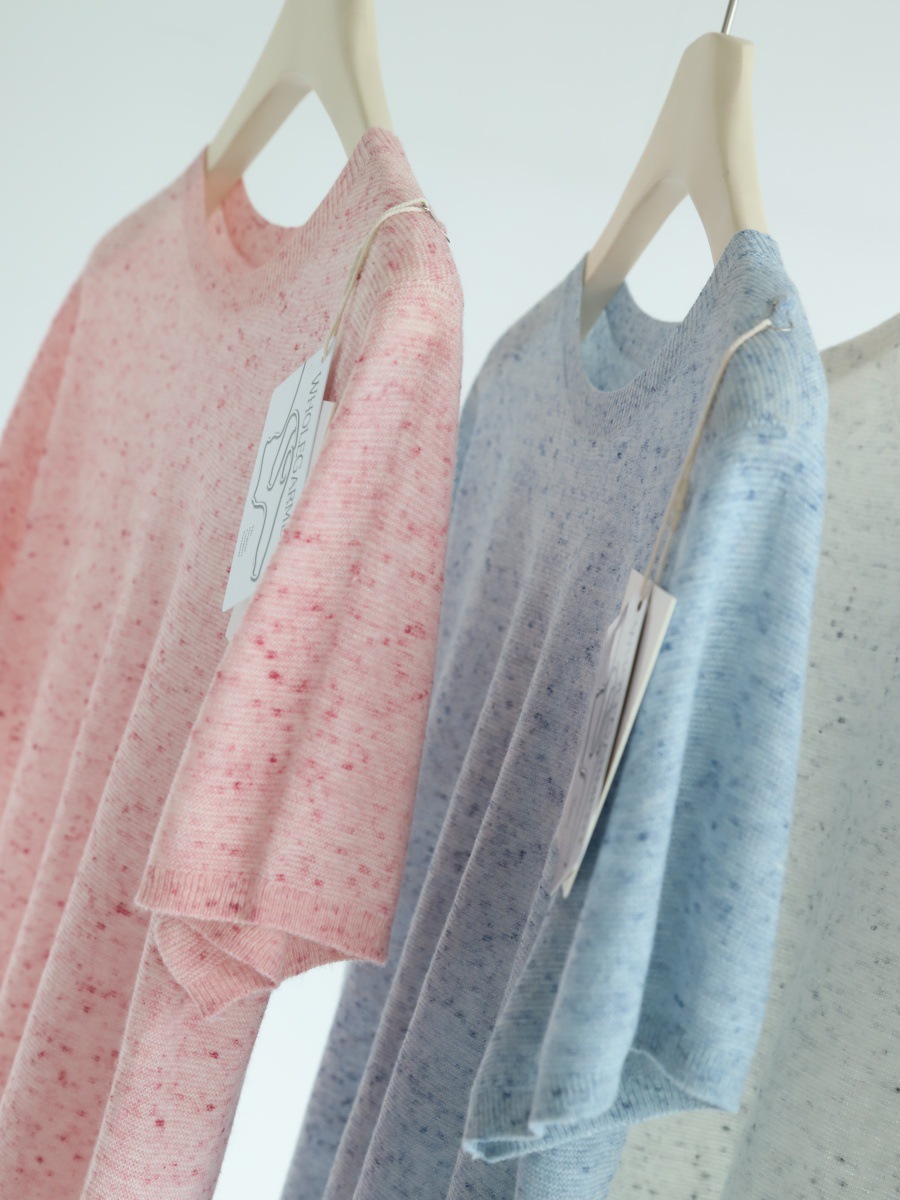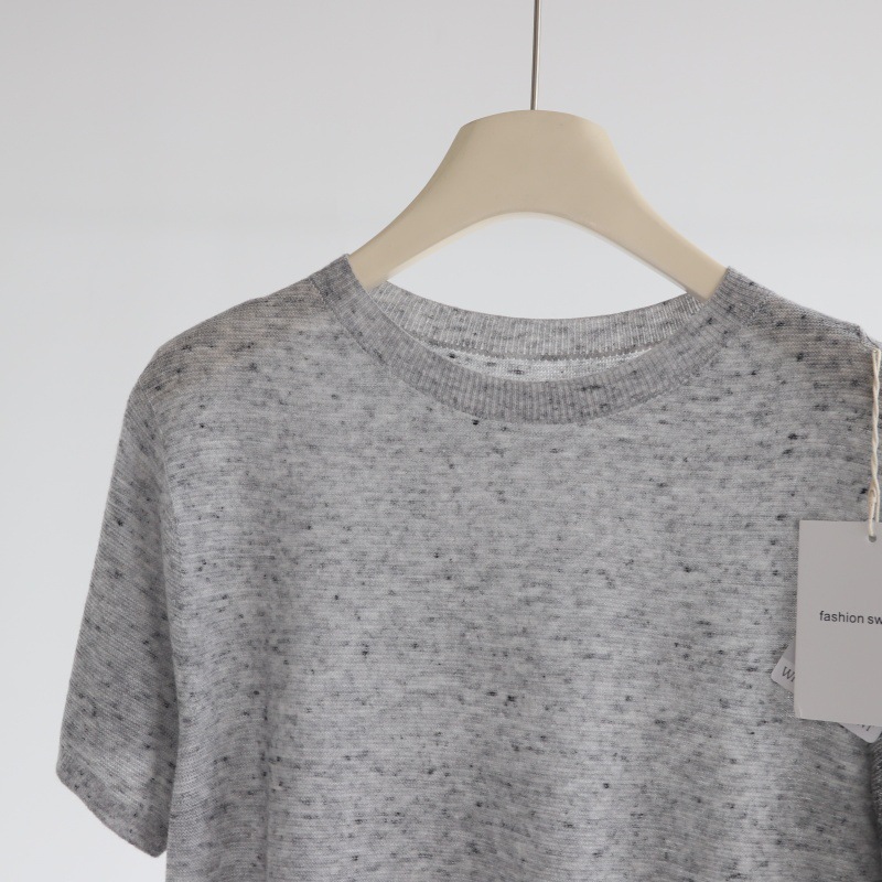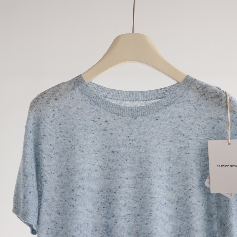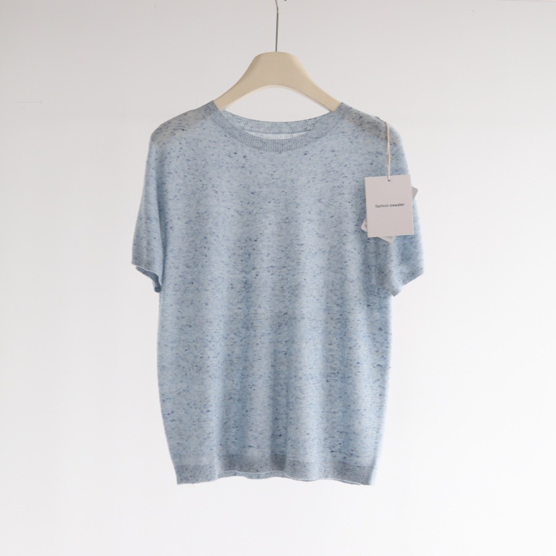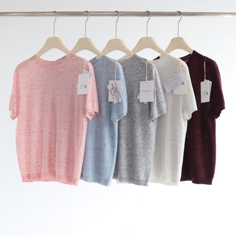 다채로운 원사 일선 의류 원활한 반팔 스웨터 여성용 양모 혼합 반팔 풀오버 소프트 왁스 피부 친화적 인 탑 T스토어 가기