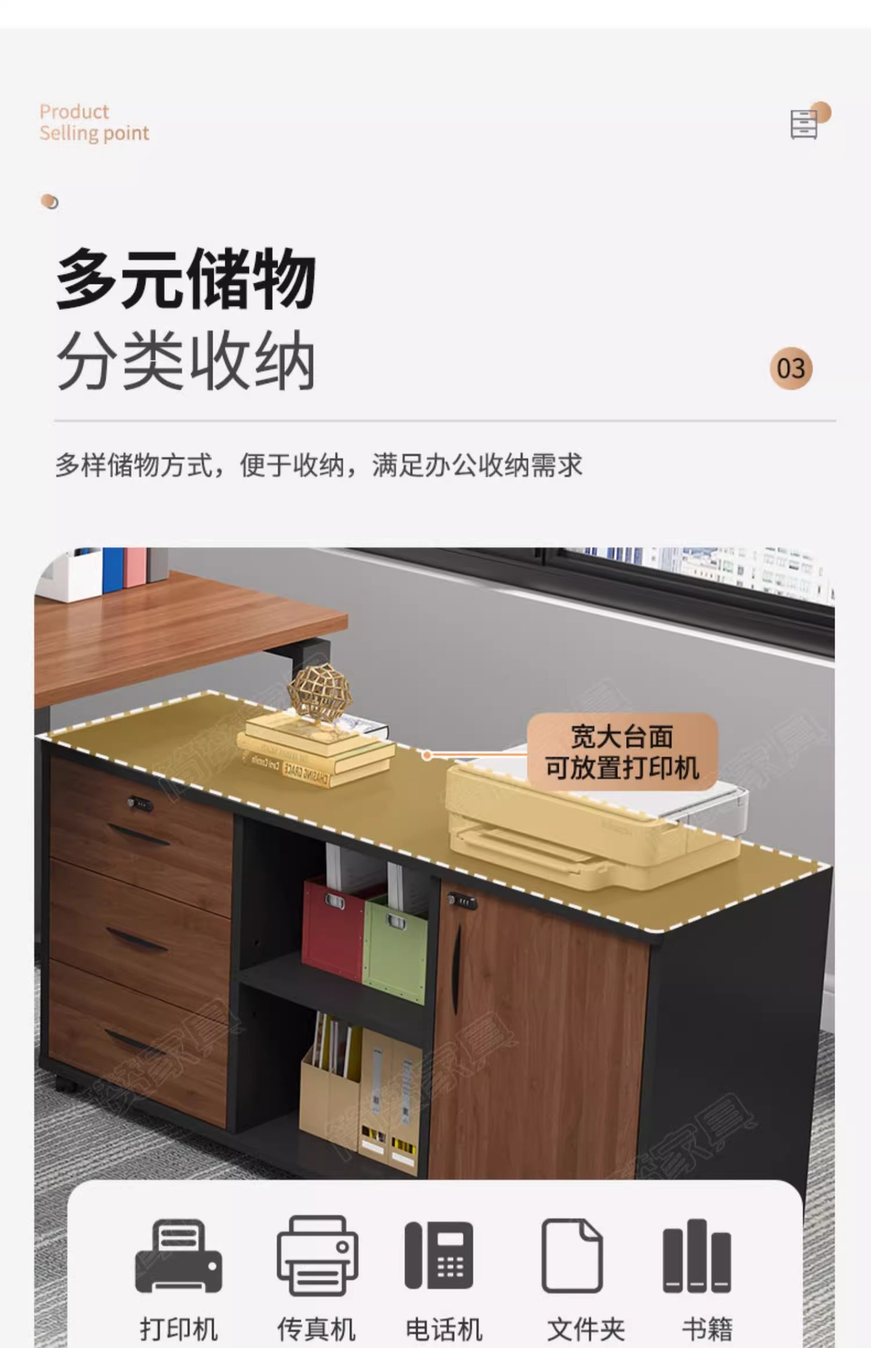 • 0.9m 도어 3개 서랍 - 나뭇결 색상