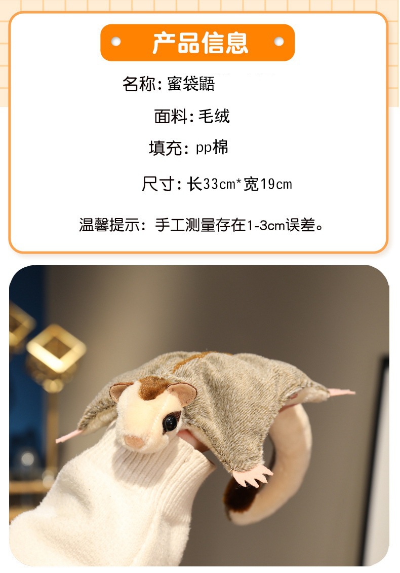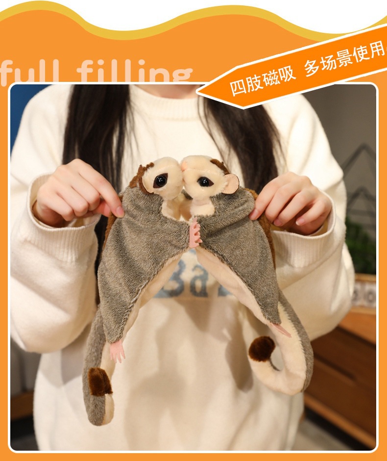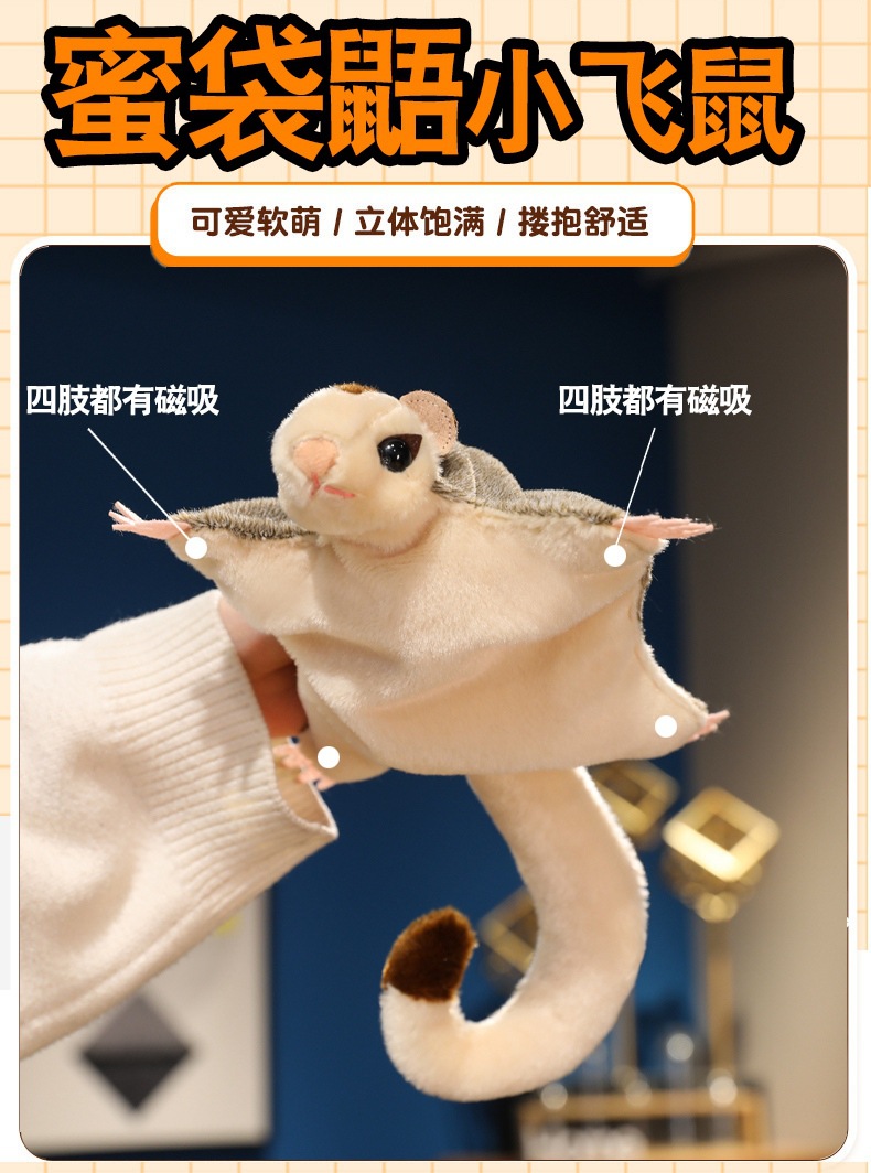 국경 간 시뮬레이션 작은 비행 쥐 플러시 장난감 인형 꿀주머니 인형 자석이 있는 사지 진정 동반자 헝겊 인형스토어 가기