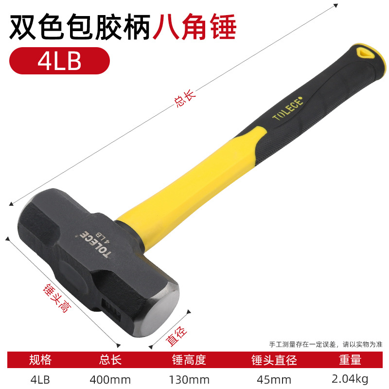팔각형 망치 섬유 연속 손잡이 강철 석공 철 둥근 머리 뿔 망치 목공 작은 망치 망치 도구 망치 헤드