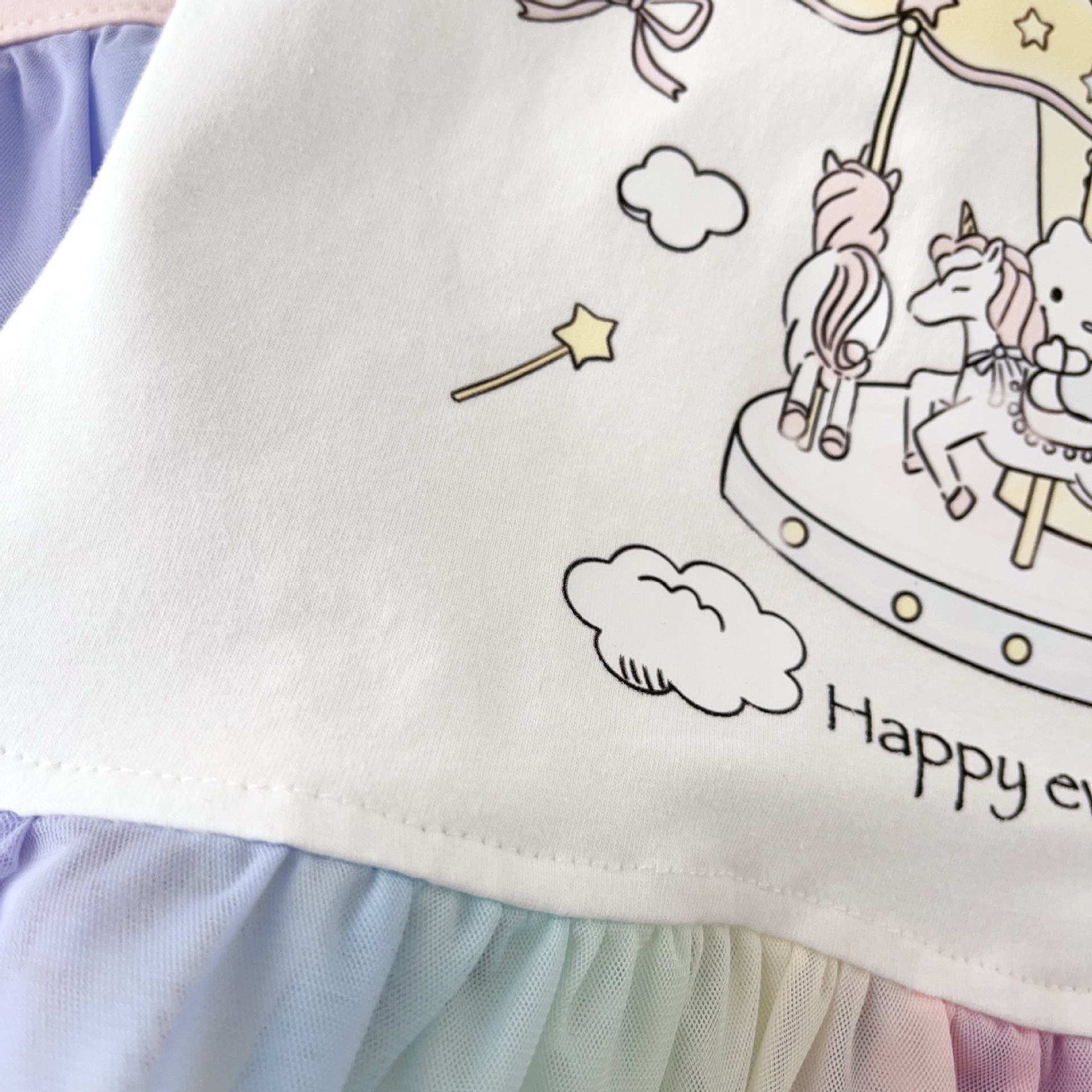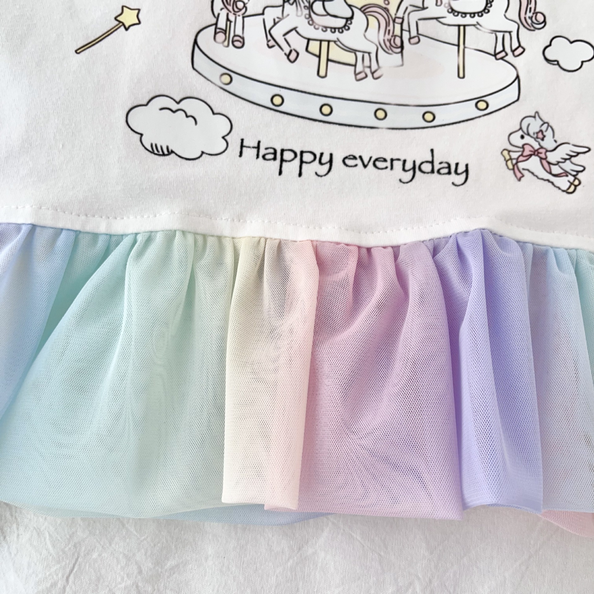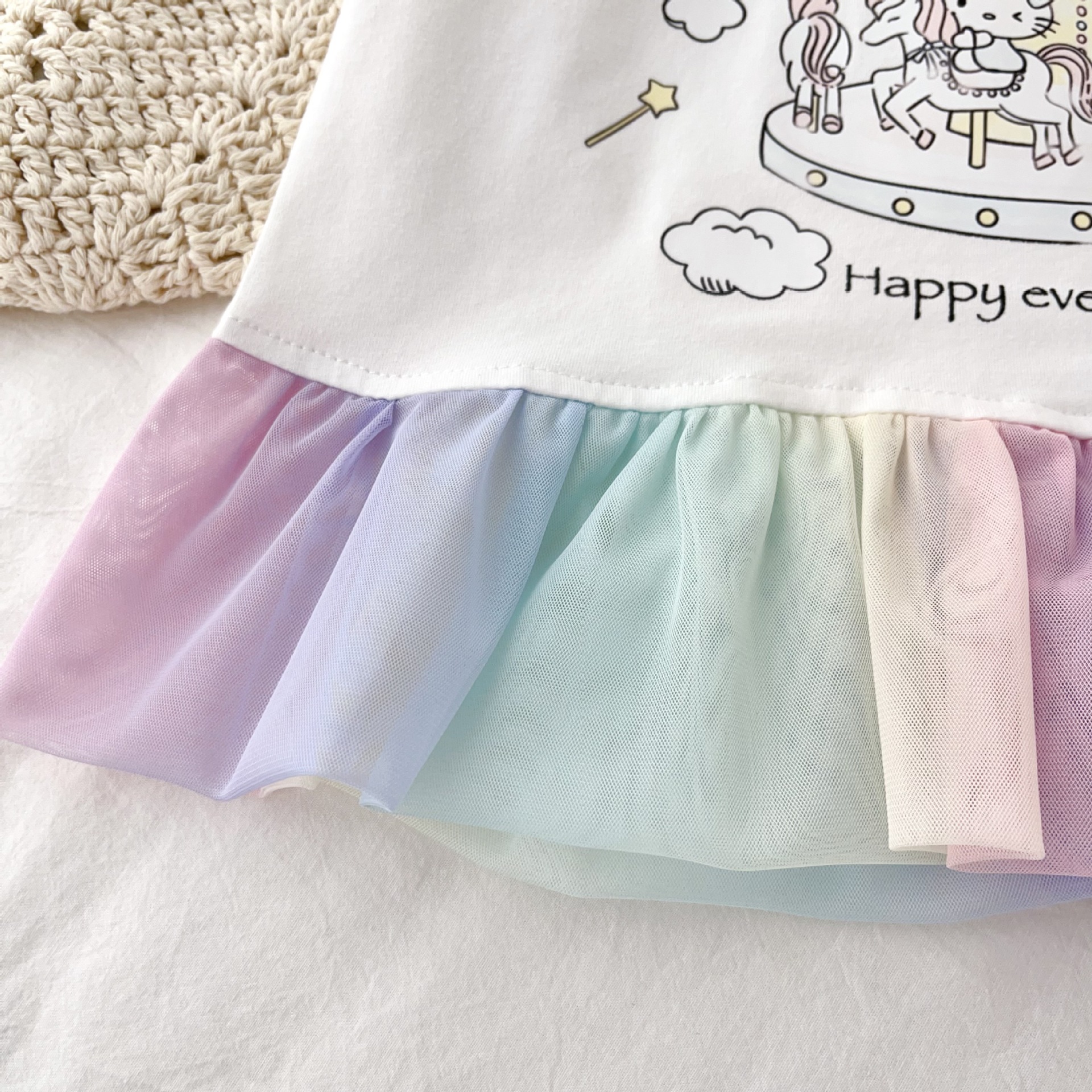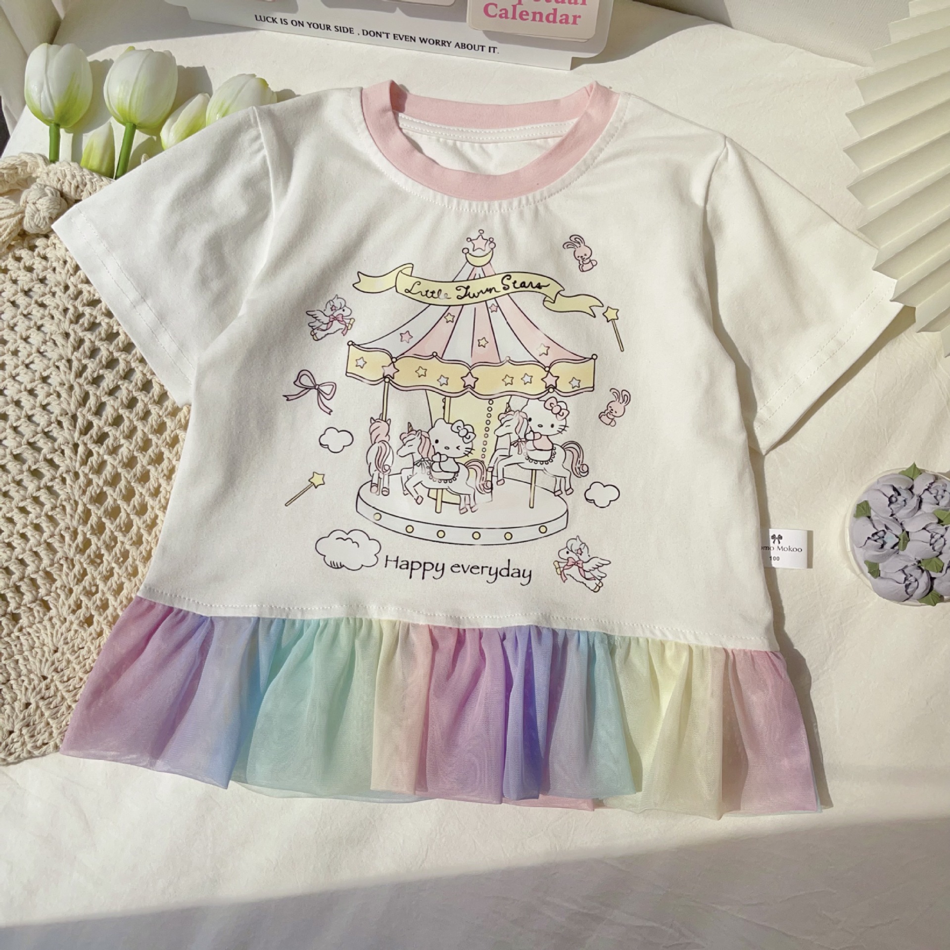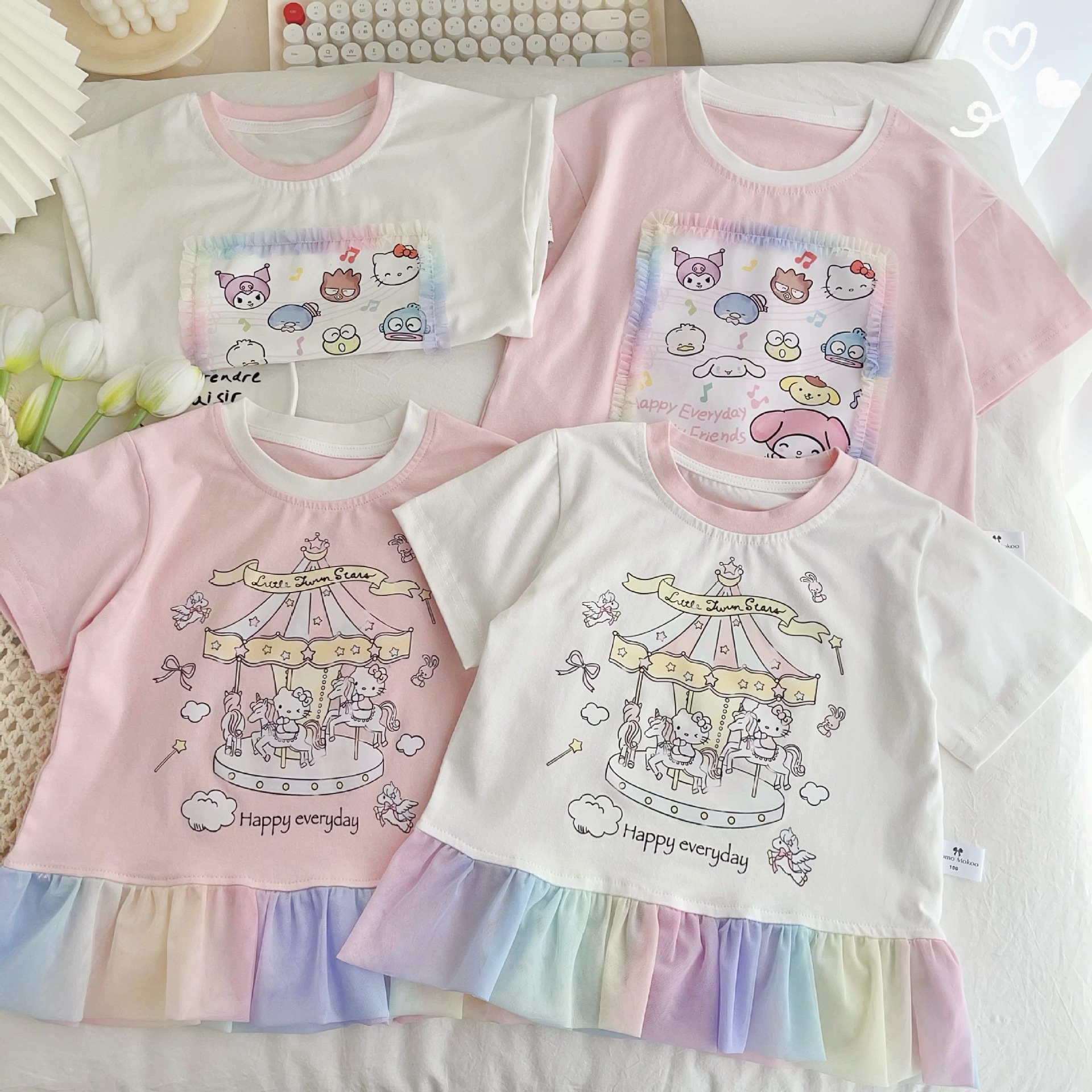 [95 면 라이크라] 여자 티셔츠 2025 여름 새 어린이 탑 귀여운 인쇄 무지개 치마 짧은 소매스토어 가기